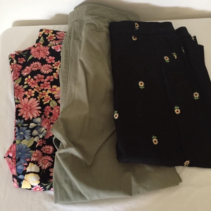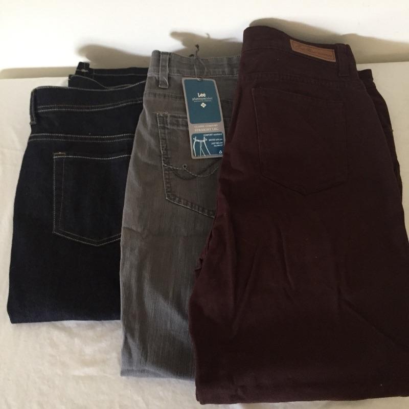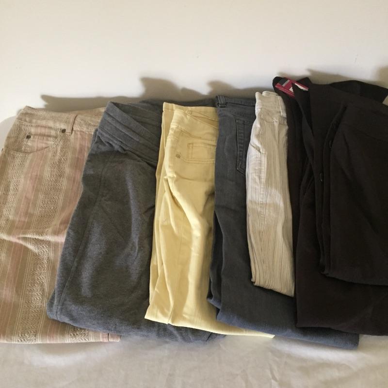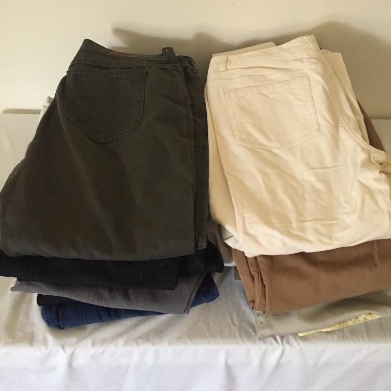 Large assortment of ladies pants that are mostly Lee and Liz Claiborne brands. All are like new but most still have tags and have never been worn. Most are size Large or 14. Some are petite and some are 16. Update your wardrobe with these ladies trousers.