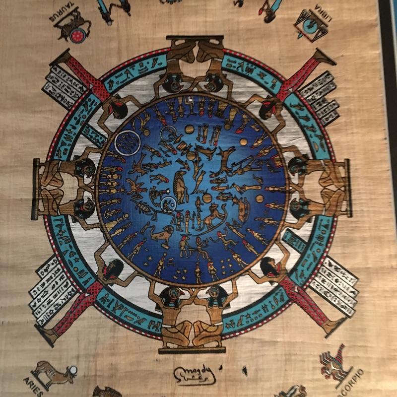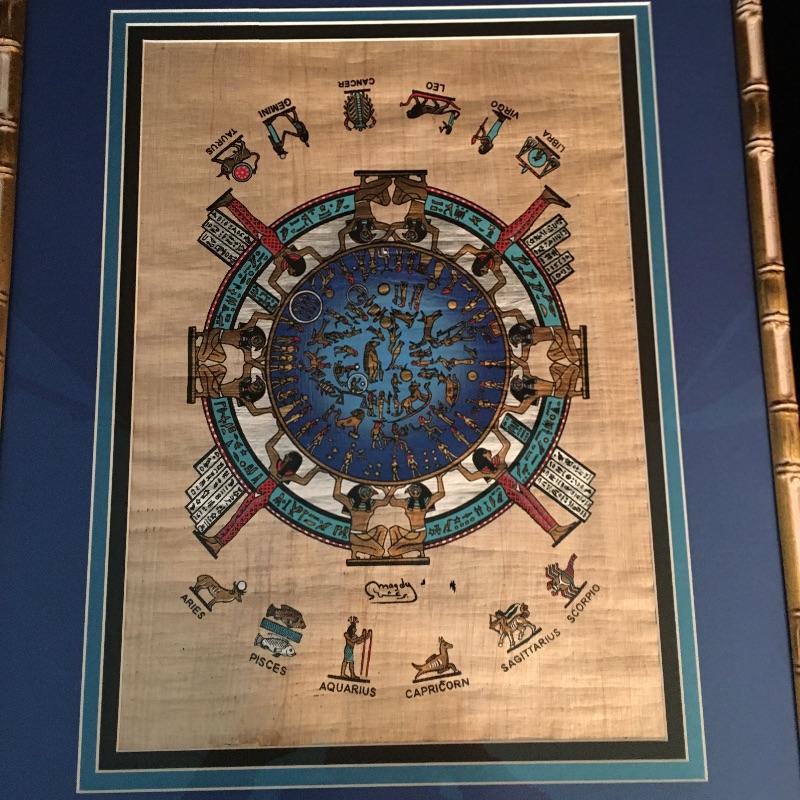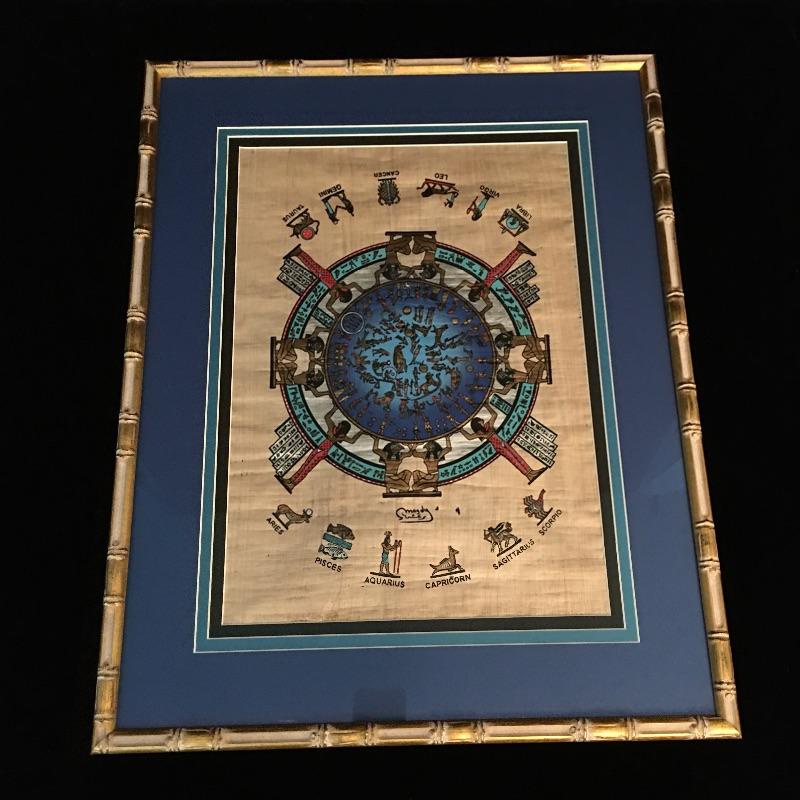 Framed and matted Zodiac artwork. Beautiful piece of art with vibrant coloring and the twelve signs of the Zodiac.