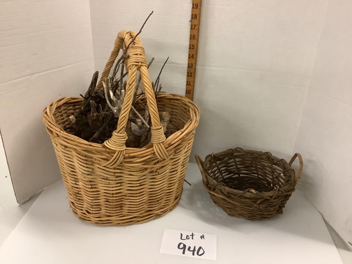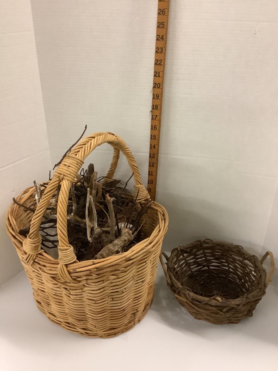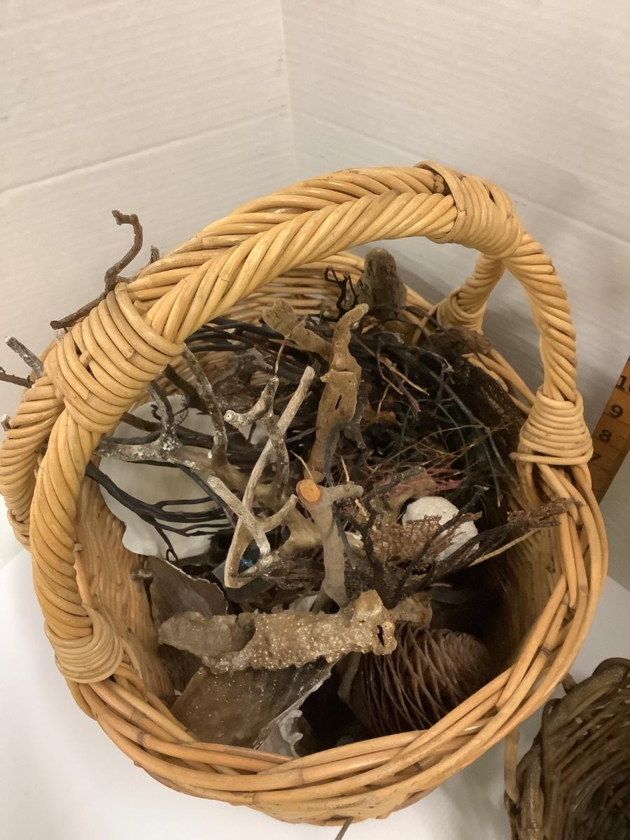 Lot 940. Basket filled with Sea Items & Natural Stick/Wood Basket