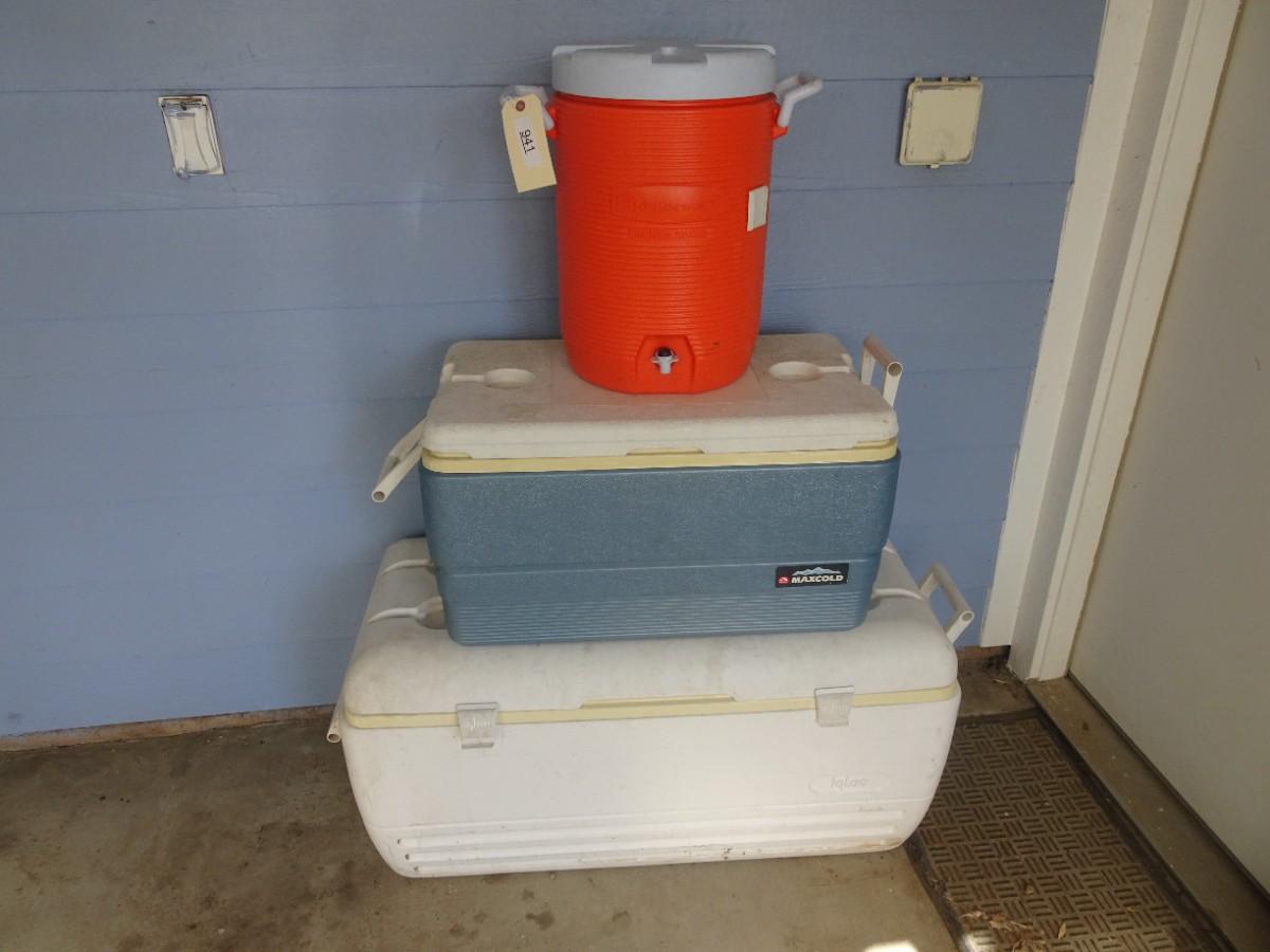 LOT 941. IGLOO DRINK DISPENSER AND TWO ICE CHEST