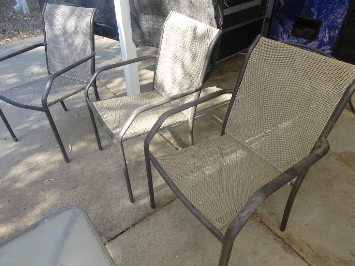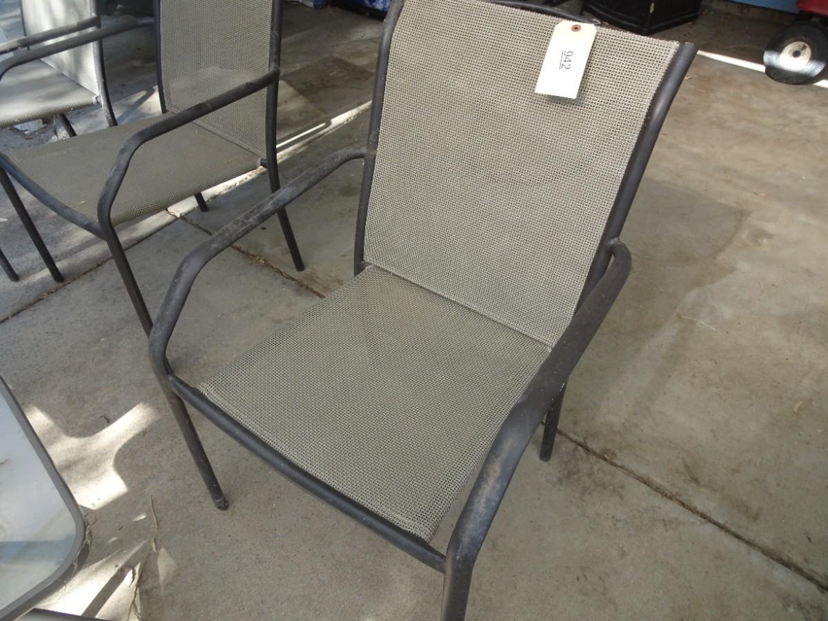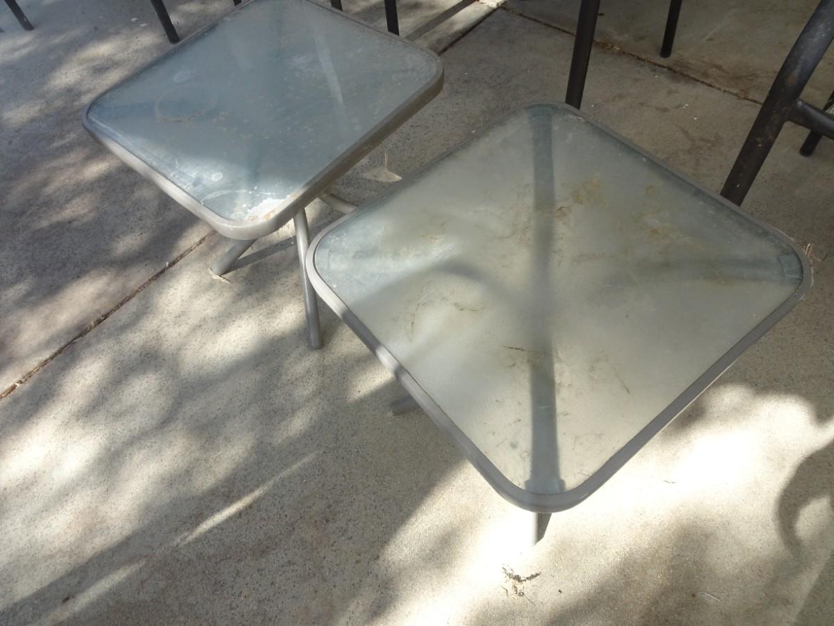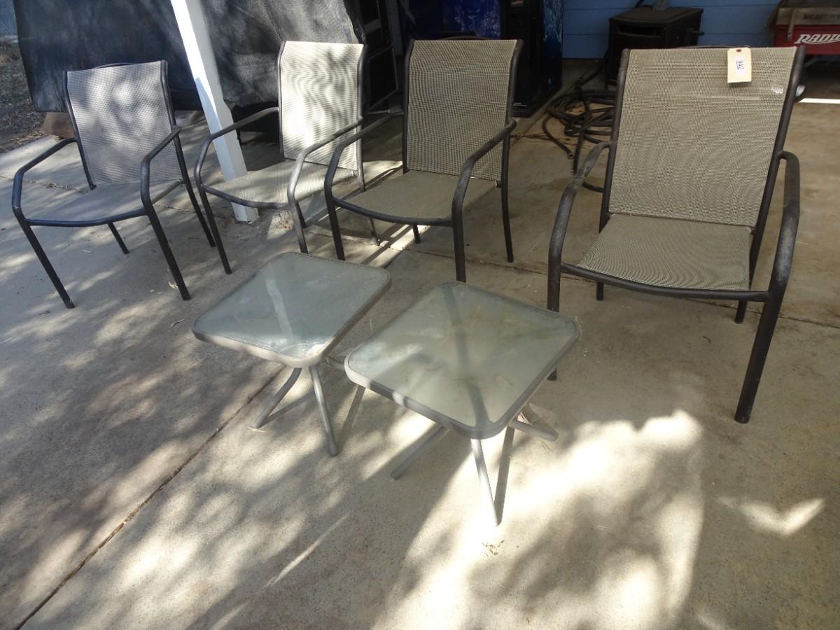 LOT 942. FOUR PATIO CHAIRS AND TWO SIDE TABLES