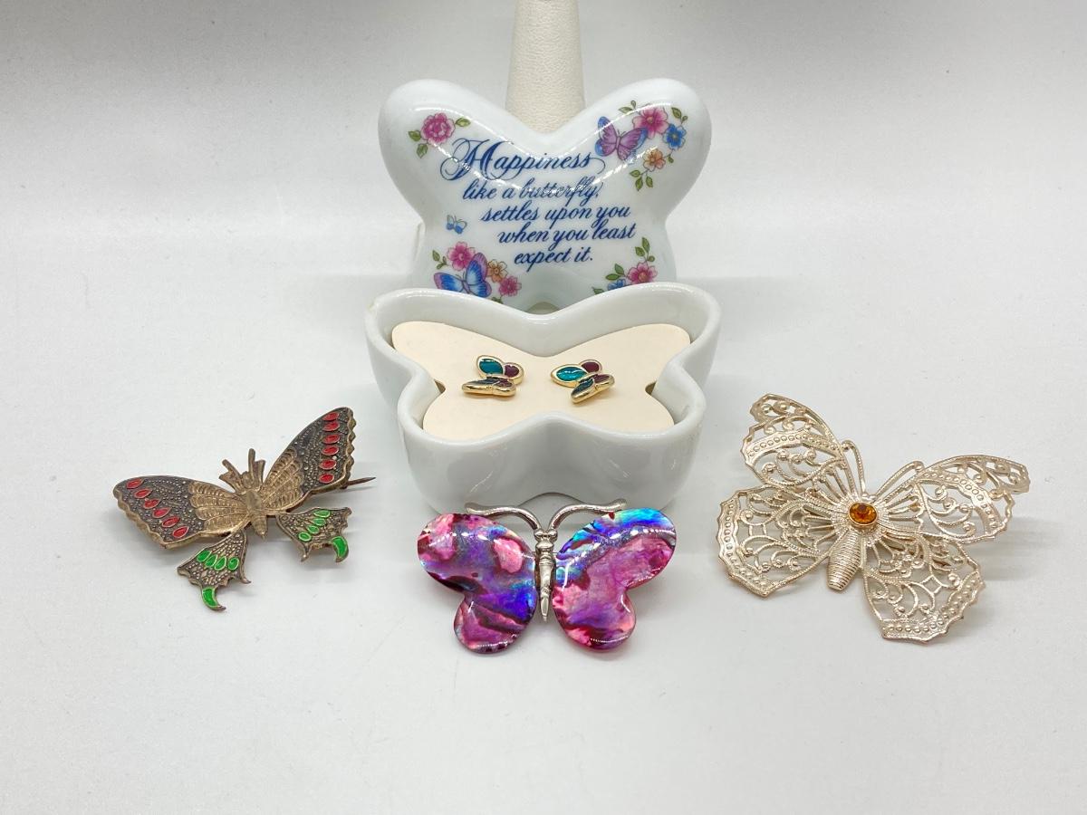 LOT 9J: Butterfly Lot - Enamel, Abalone, Avon Earrings and More