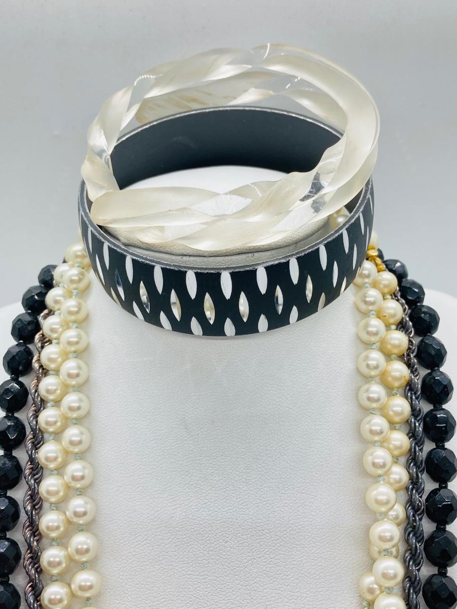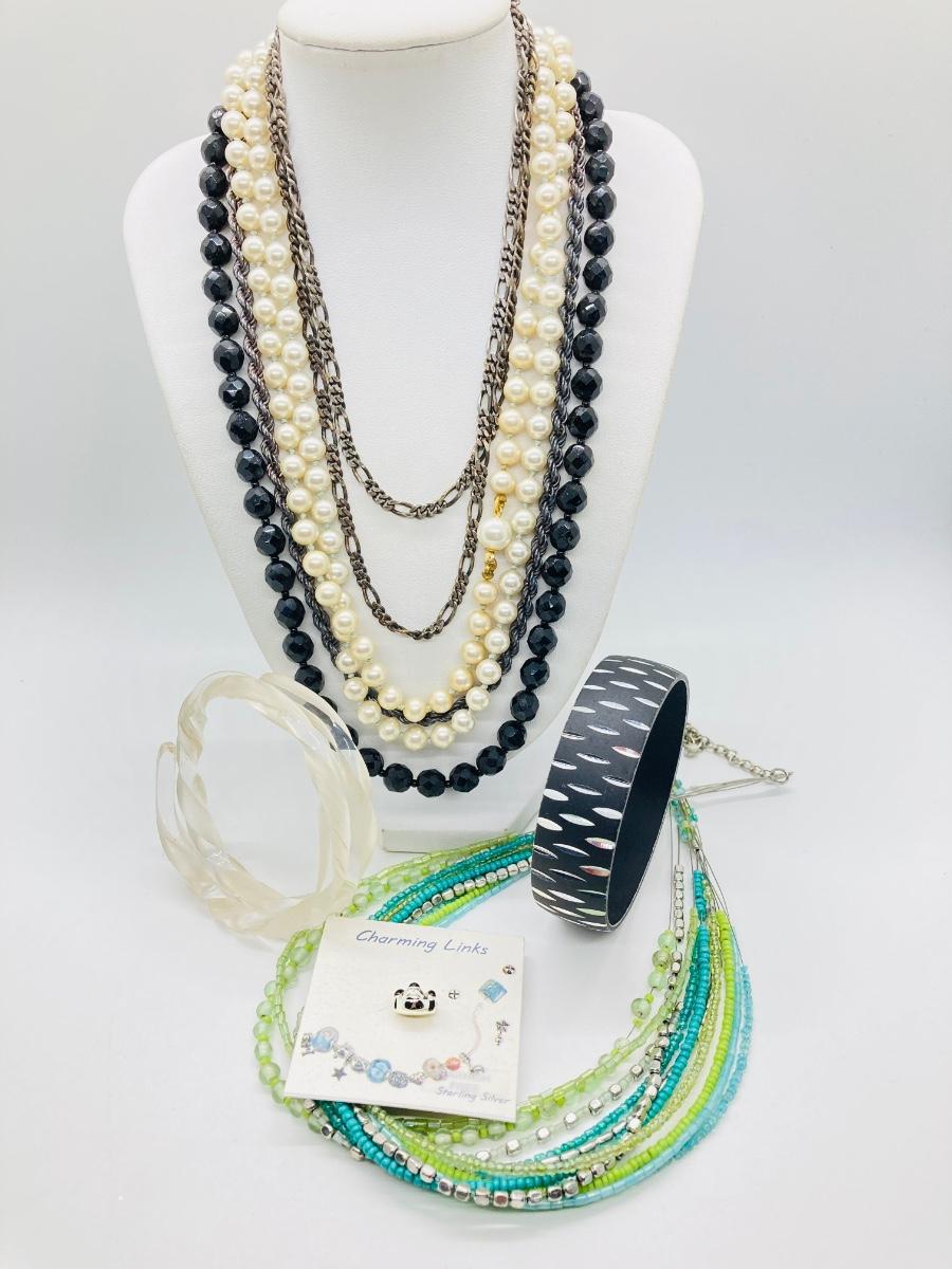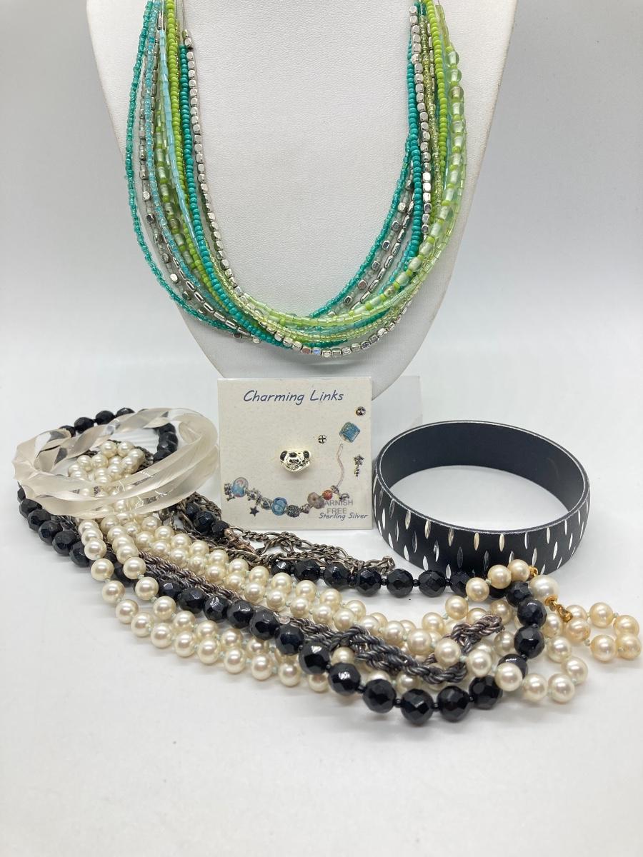 LOT 12J: Faceted Glass Beads, Sterling Chains, Lucite Bracelet and More