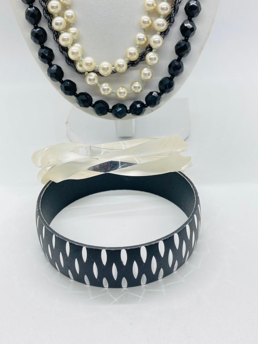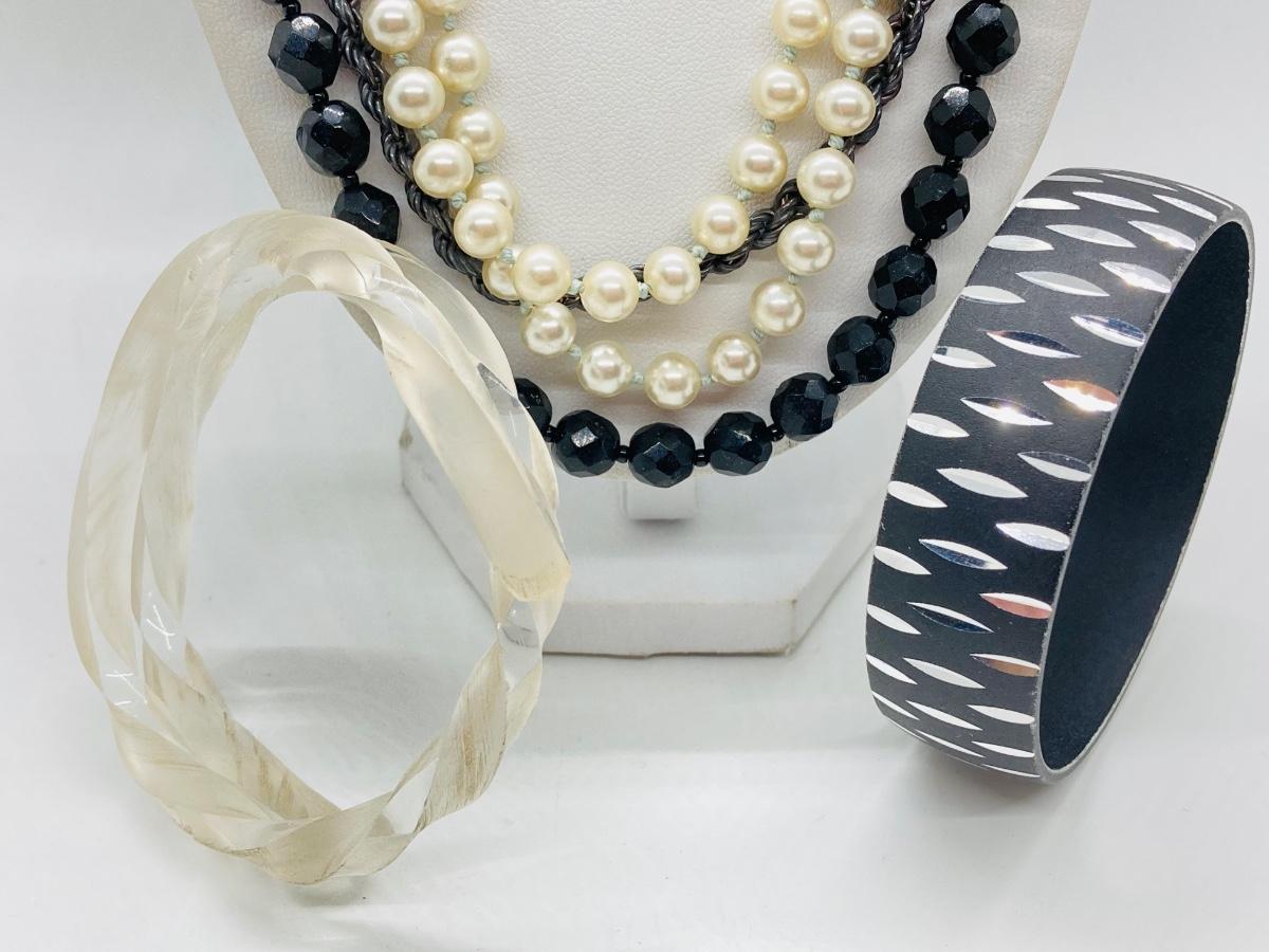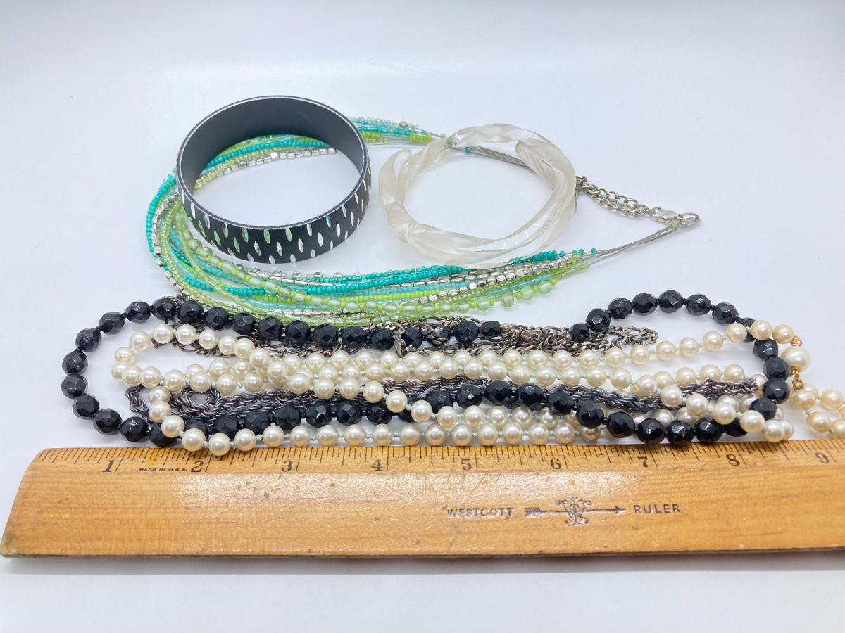 LOT 12J: Faceted Glass Beads, Sterling Chains, Lucite Bracelet and More