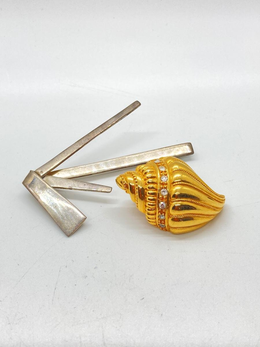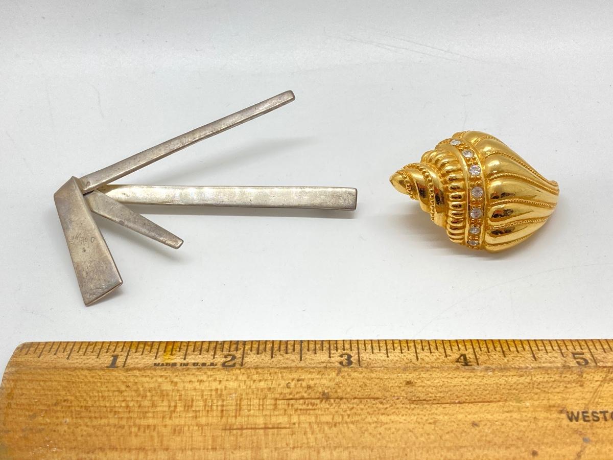 LOT 13J: Avon Seashell Scarf Holder and Sterling Silver Pin