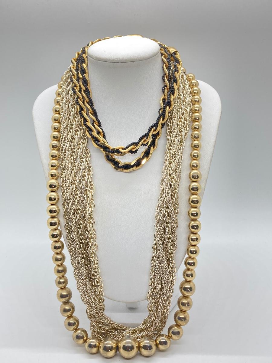 LOT 15J: Necklaces - Vintage Trifari, Korea Metal Beads and 8 Strand with Rose Clasp