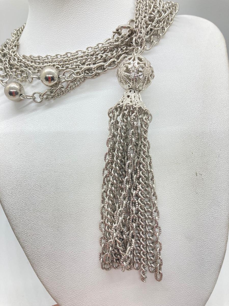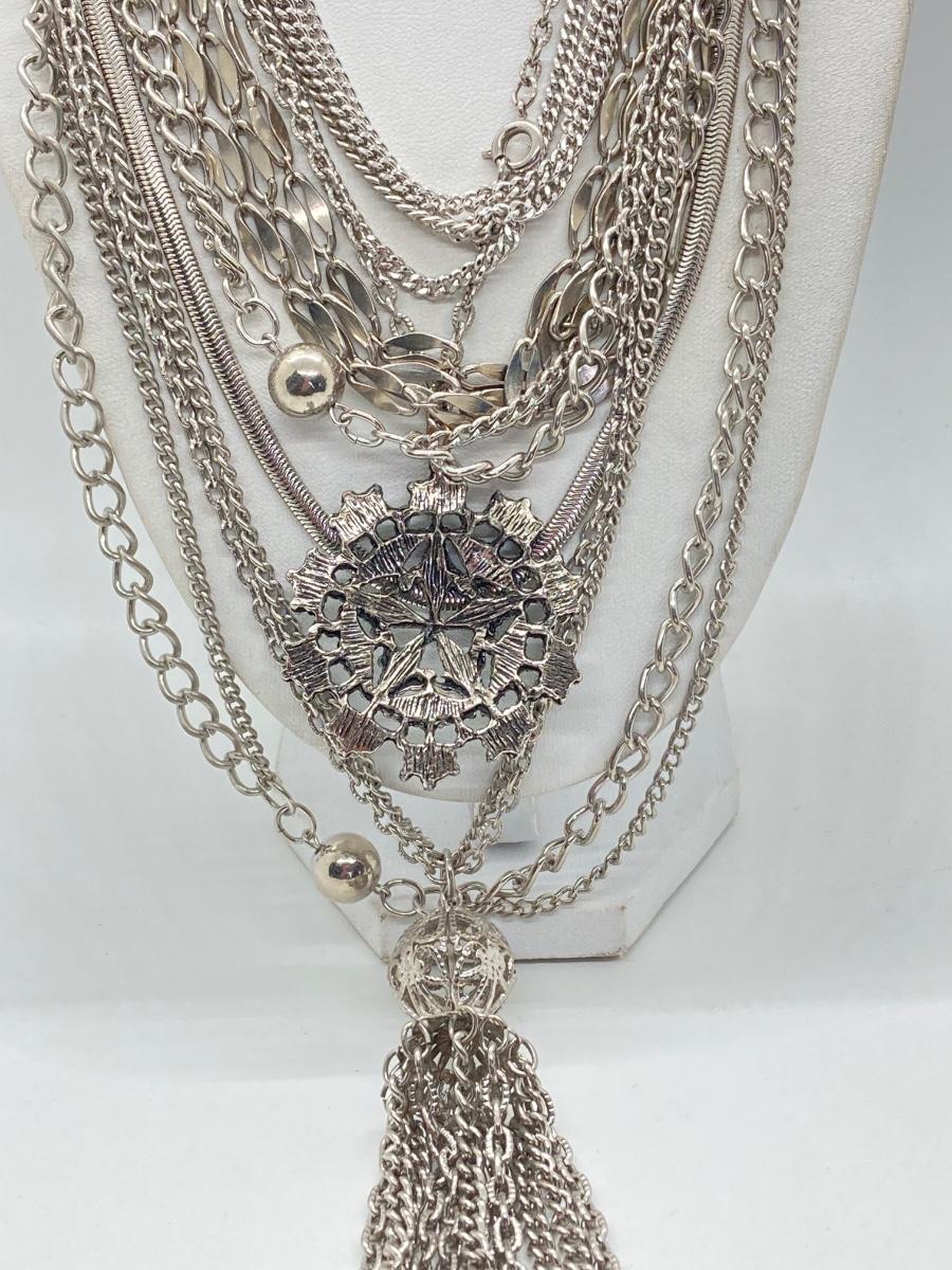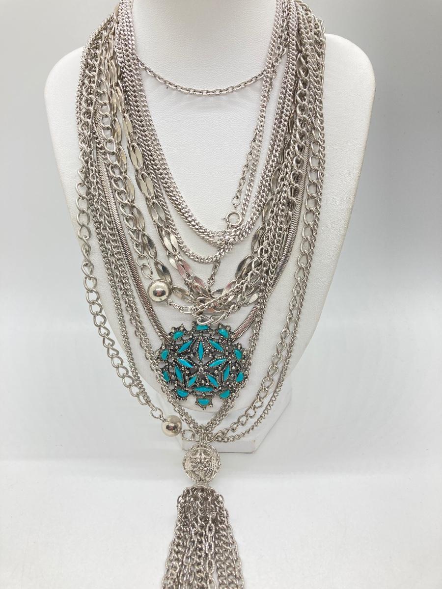 LOT 20J: Silvertone Chain Collection - Multi Strand, Tassle, Avon Choker and More