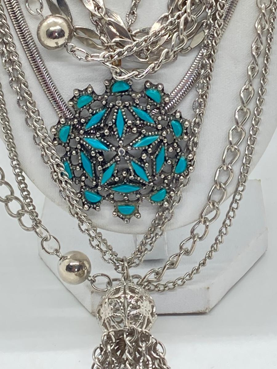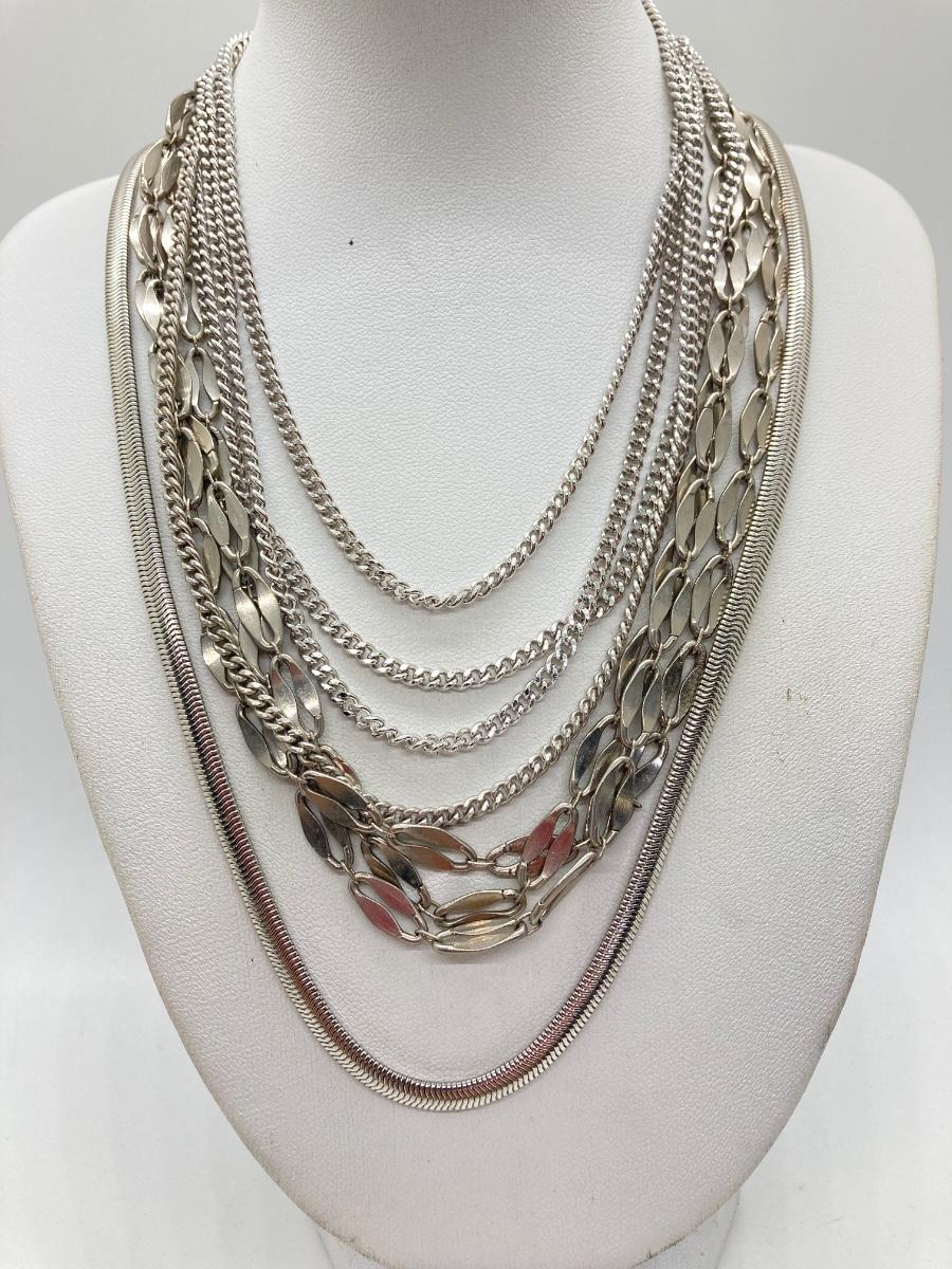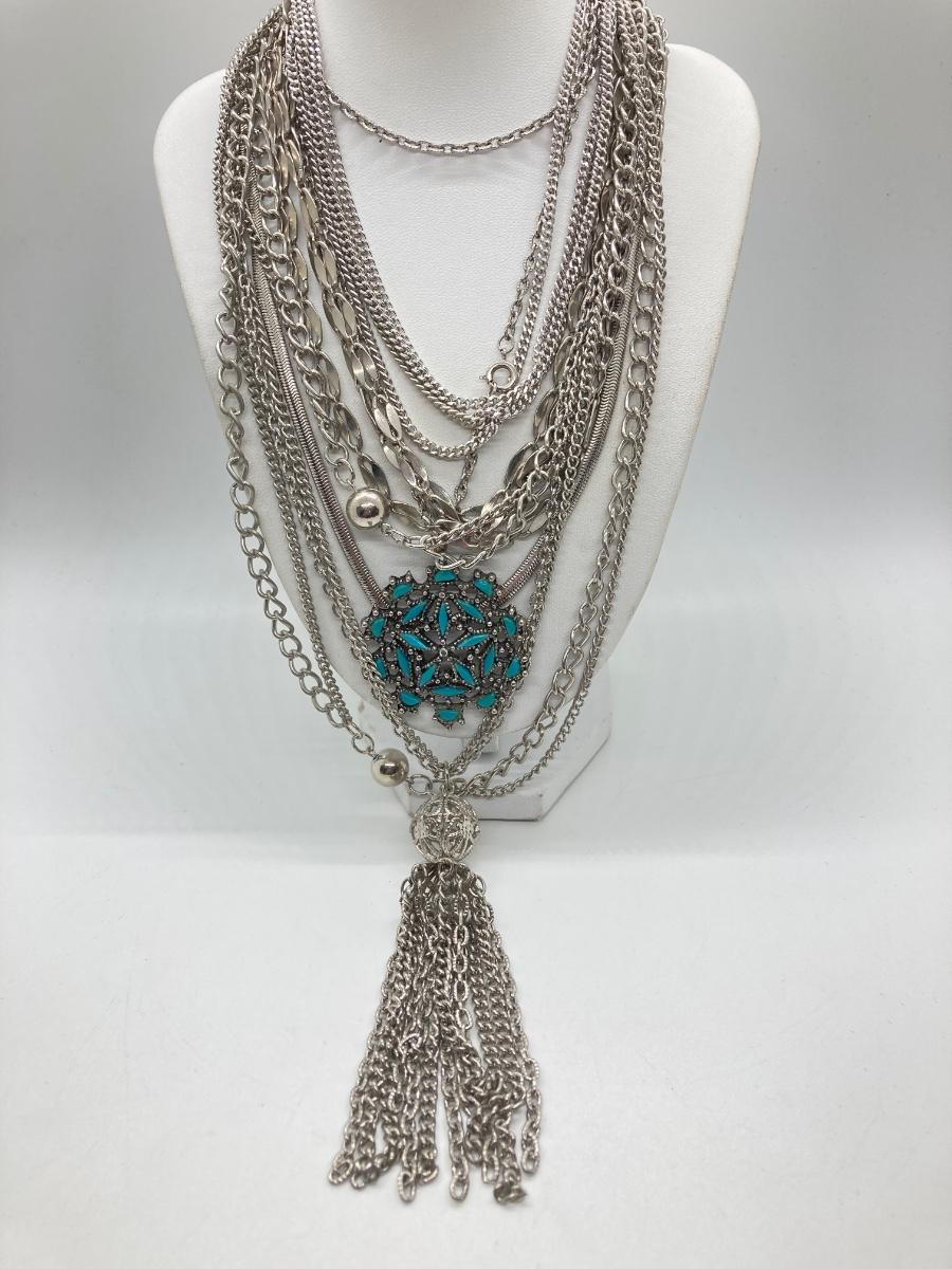 LOT 20J: Silvertone Chain Collection - Multi Strand, Tassle, Avon Choker and More
