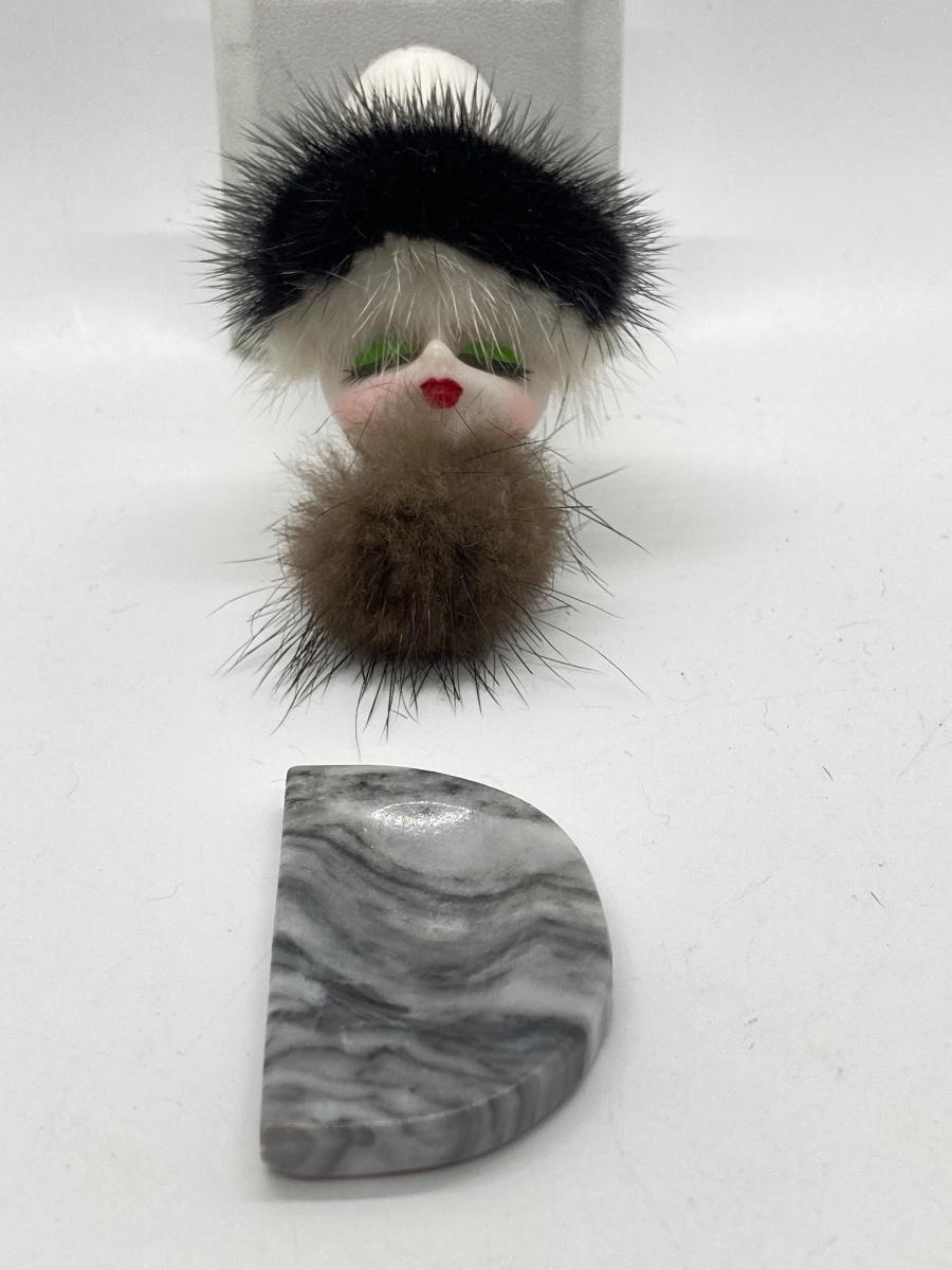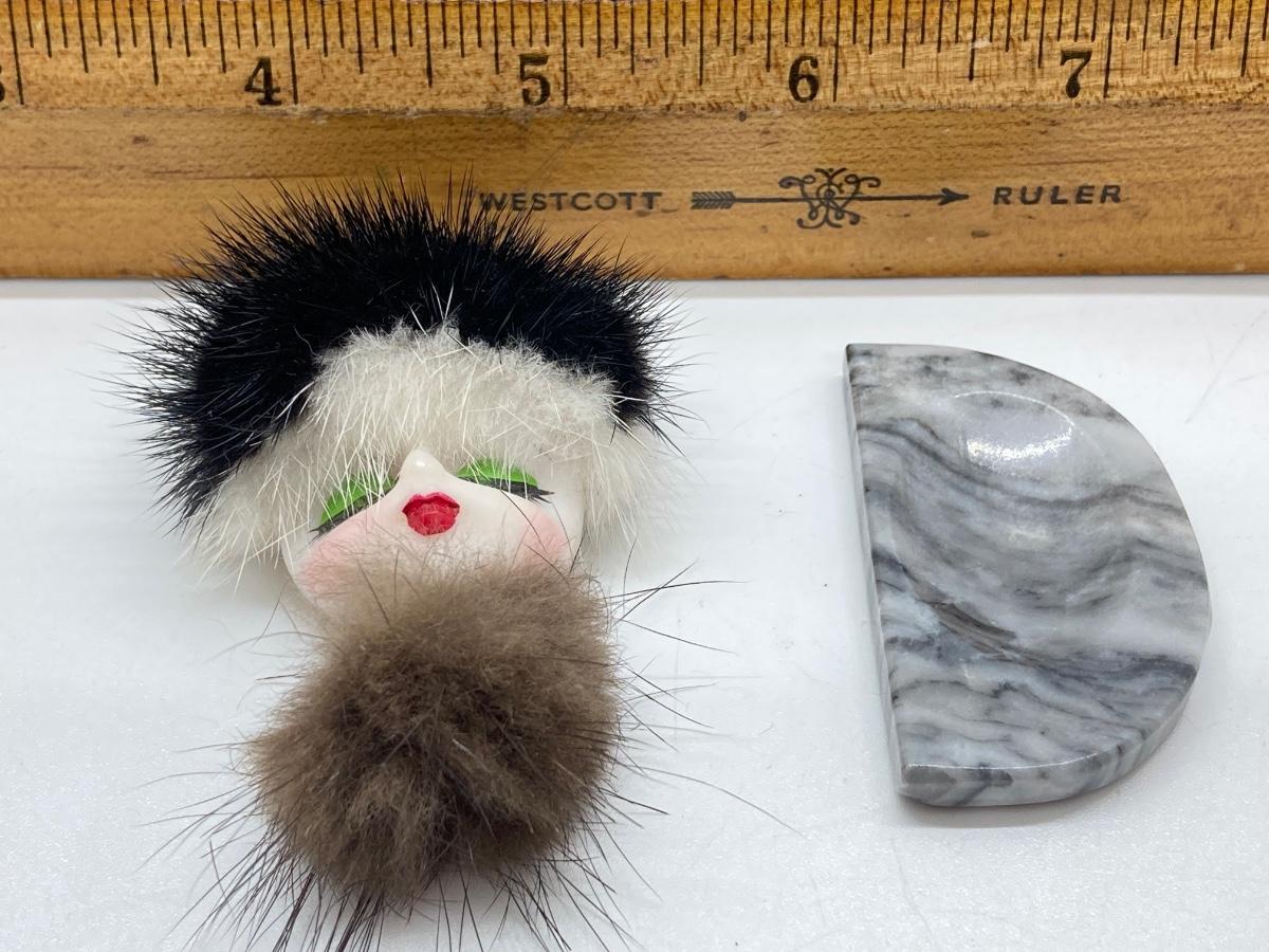 LOT 21J: Vintage Mink Fashionista Brooch and Mexican Worry Stone