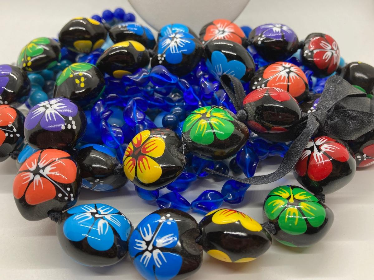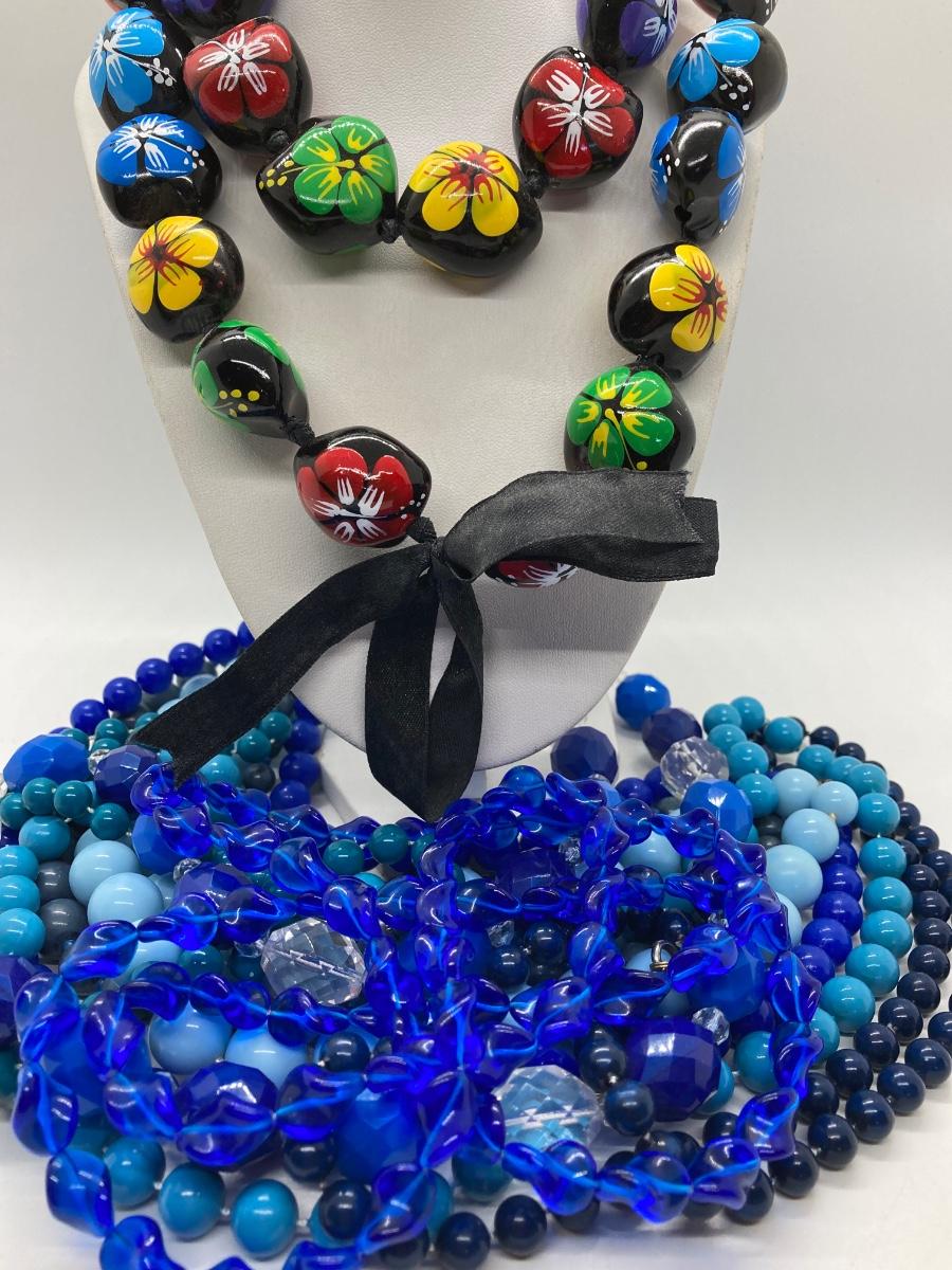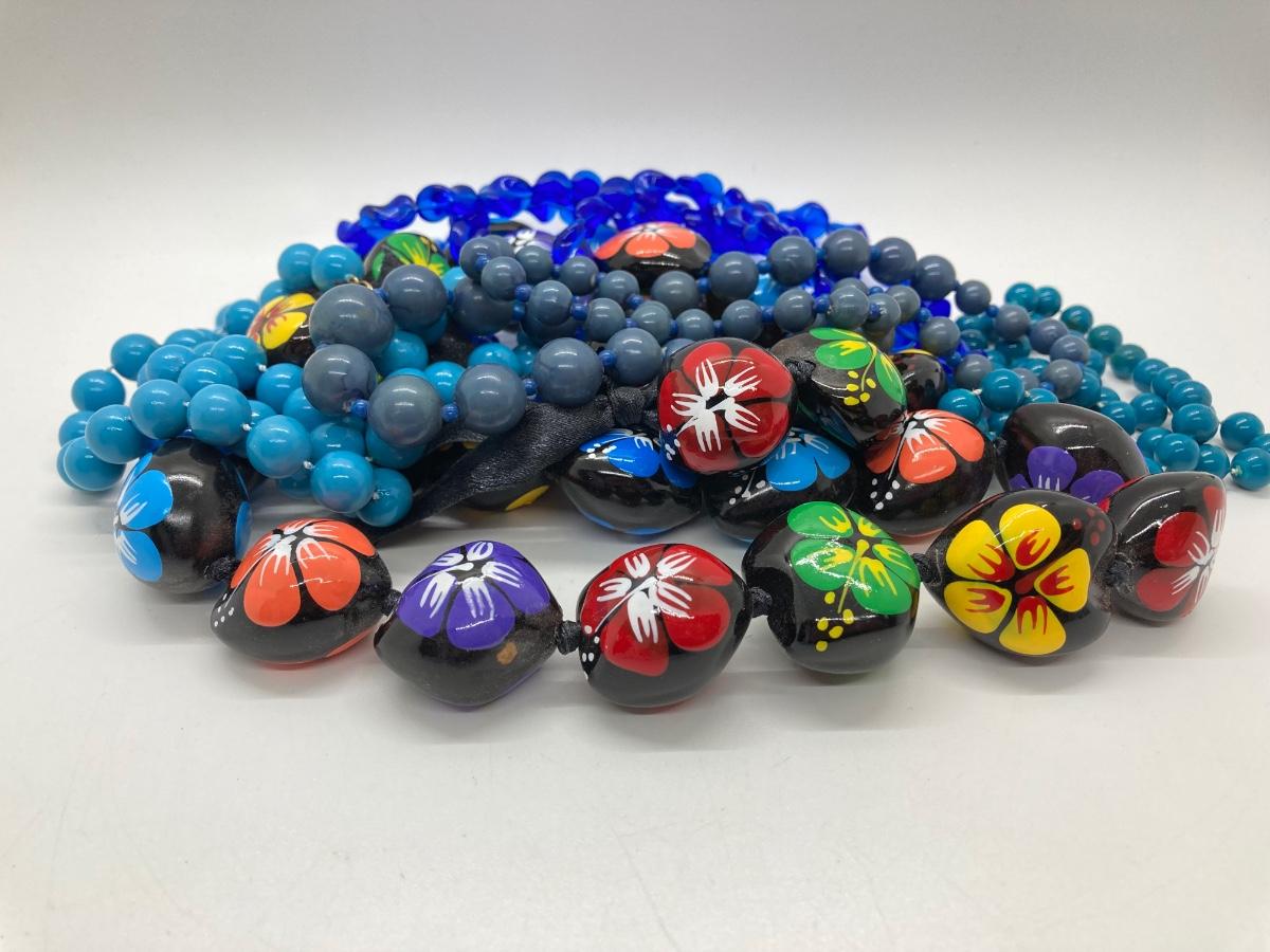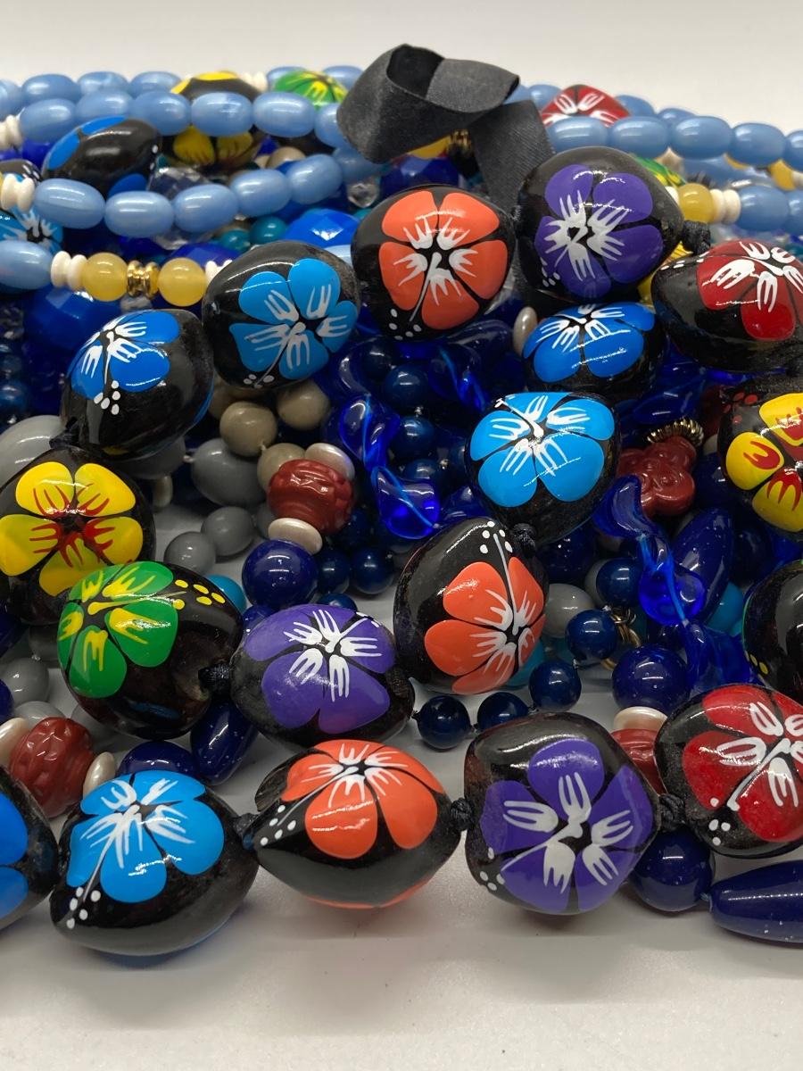 LOT 27J: Hand Painted Hawaiian Lei and Blue Bead Collection