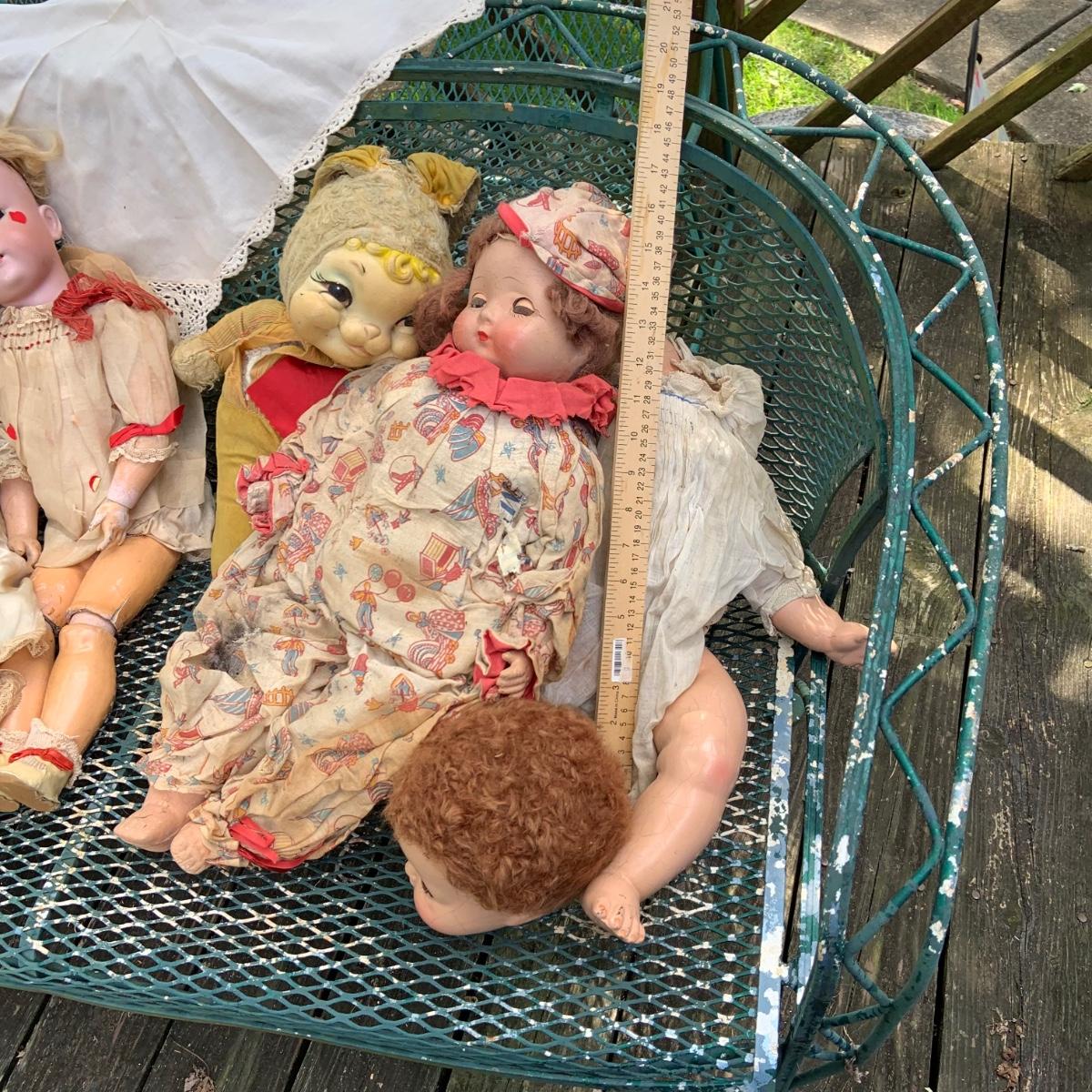 These Dolls are very old and have condition issues most of which have been pictured. Please see all pictures as they are the best representation of the items. The pictures show condition, measurements if taken, and what is included in the lot. Due to the large amount that we photograph and the time frame, we are not always able to take measurements. All items unless noted, are pre-owned and have been used. If you purchased furniture, you must bring help. We do not allow one person to carry large furniture out on their own. Bring help, tools and a truck for the safety of our client’s homes, and your personal safety. Any damages that result to the property including walls, and floors due to moving of the furniture will be charged to the buyer. Company policy. Thank you.
