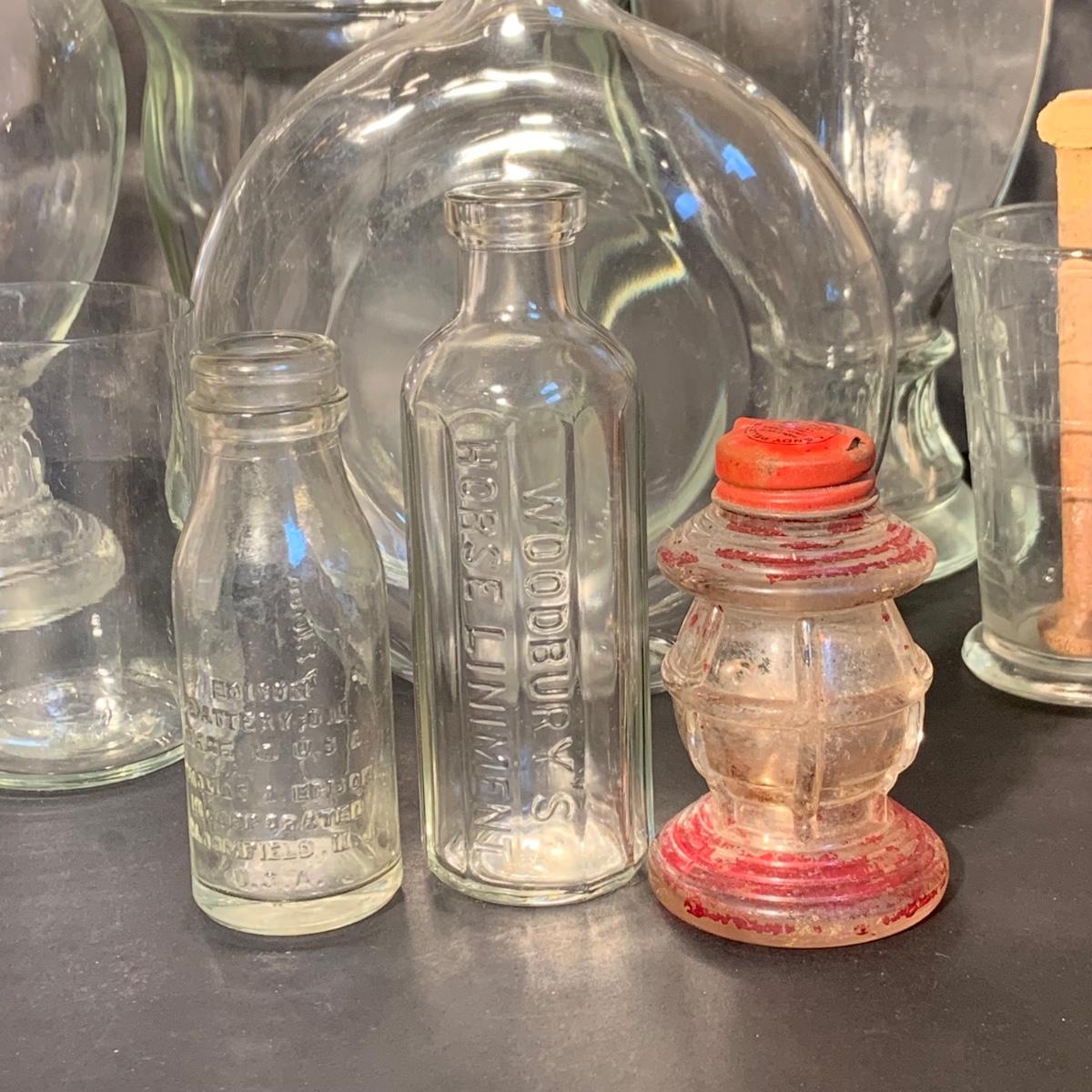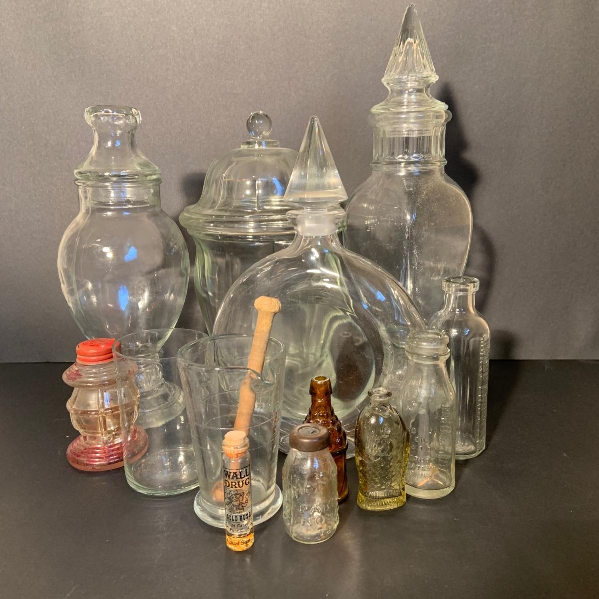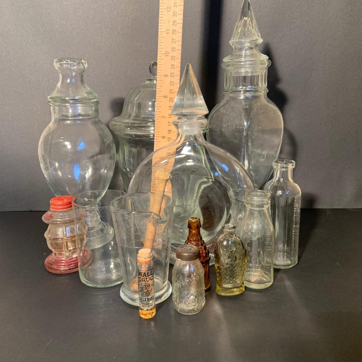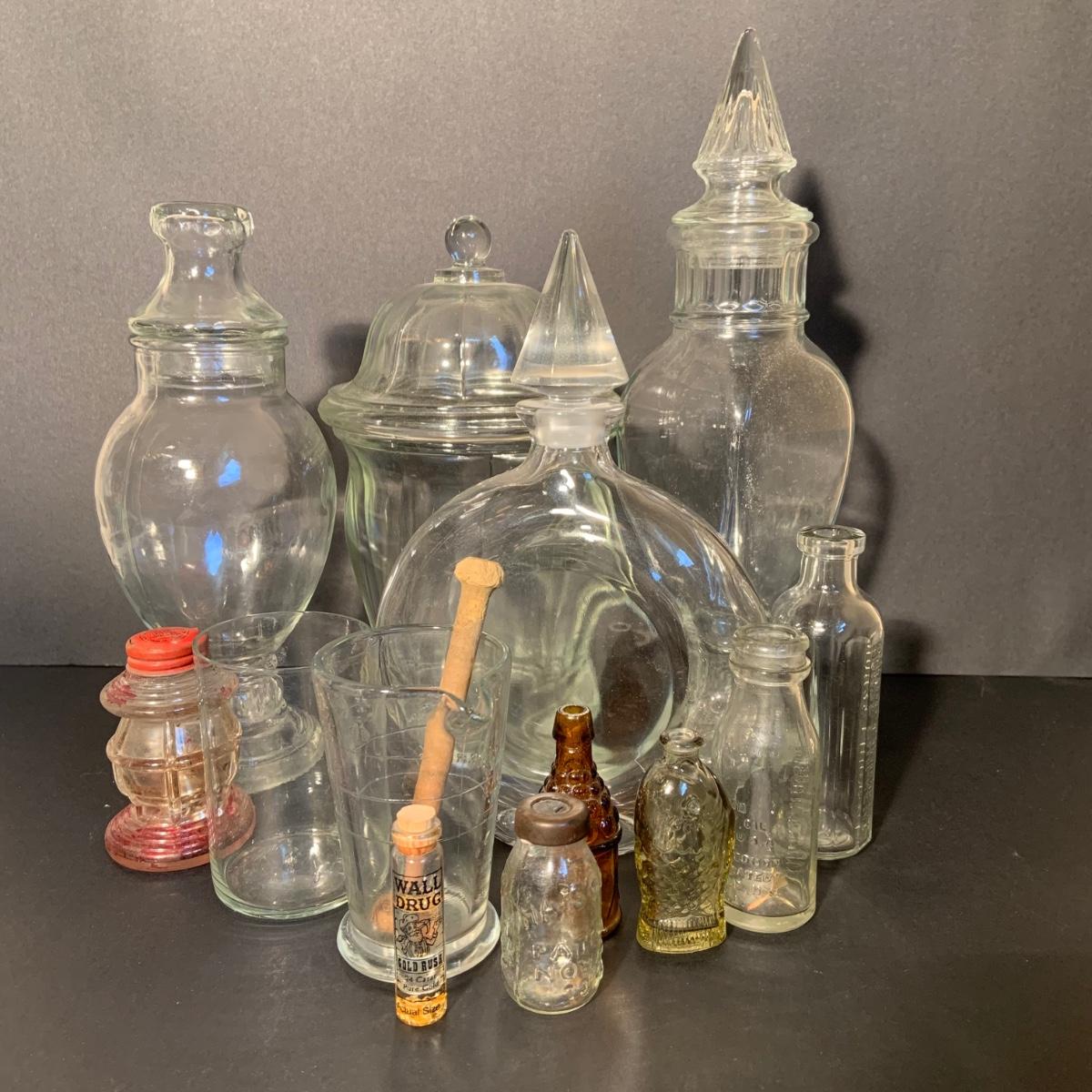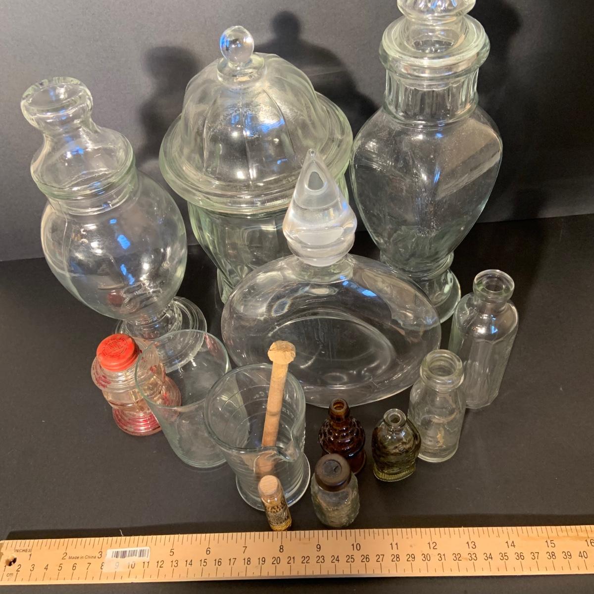 LOT:35G: Vintage Apothecary Style Jars, Bottles and Glassware