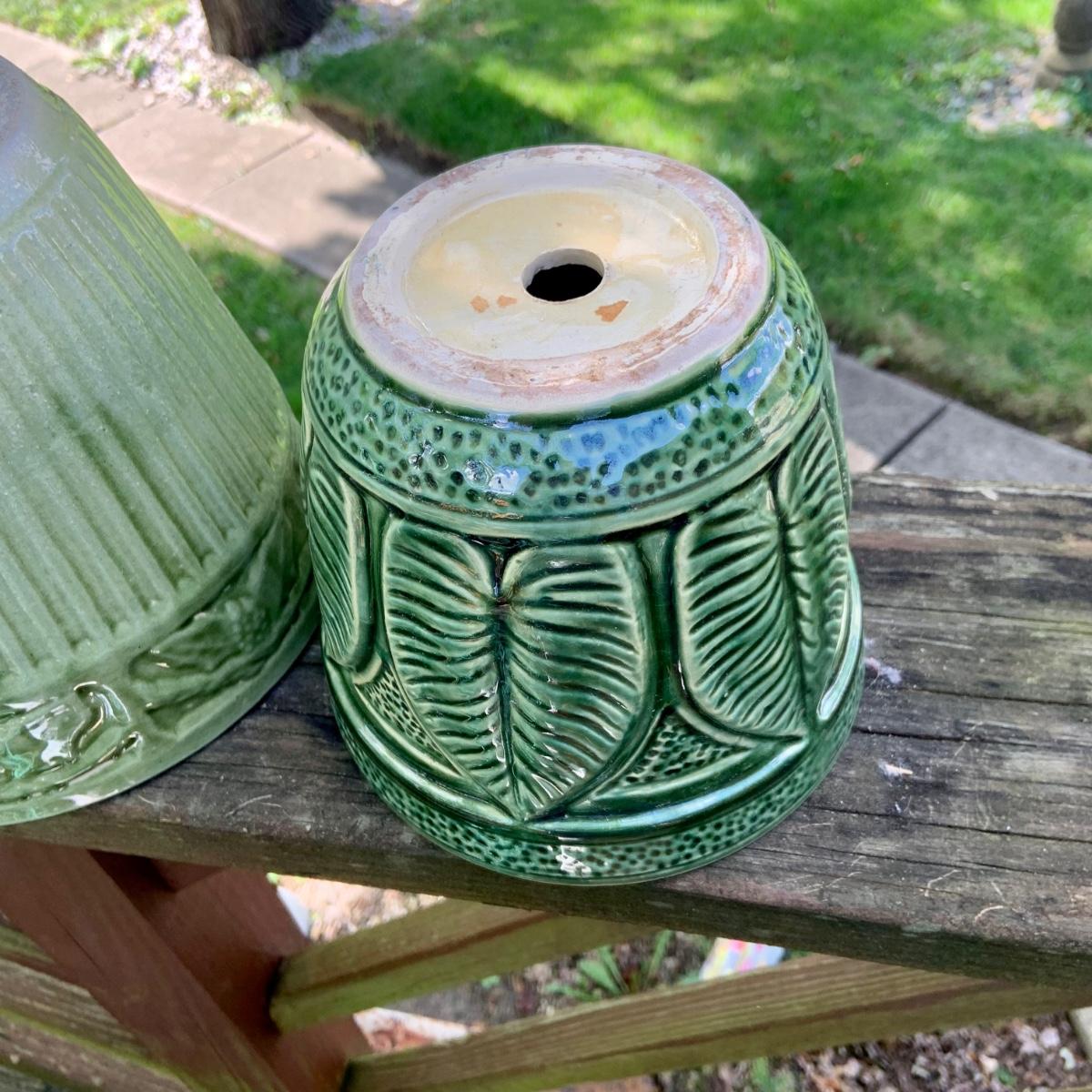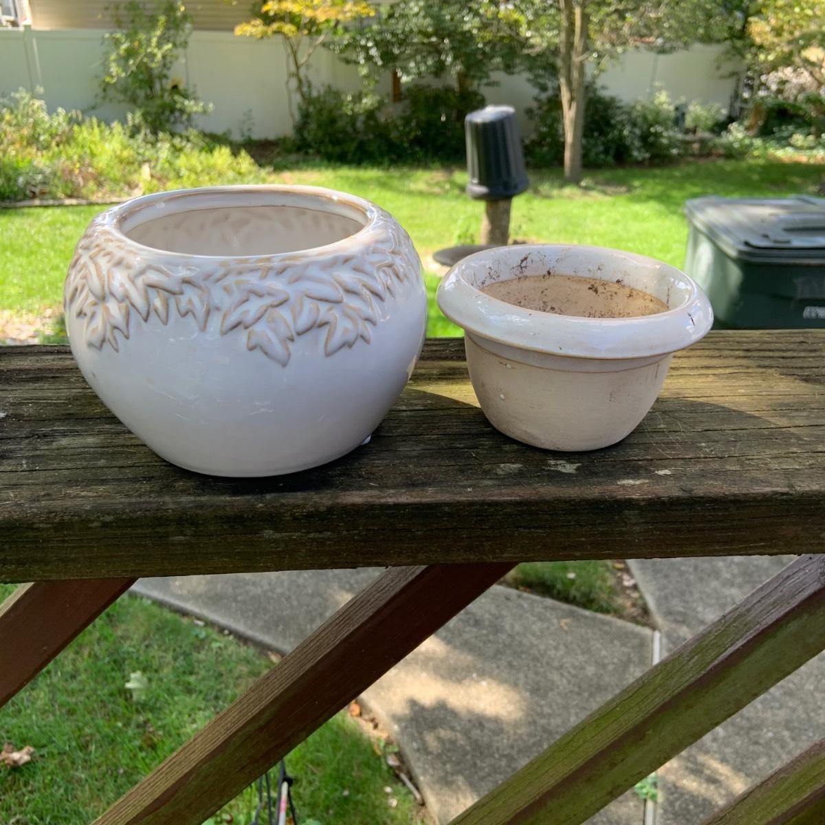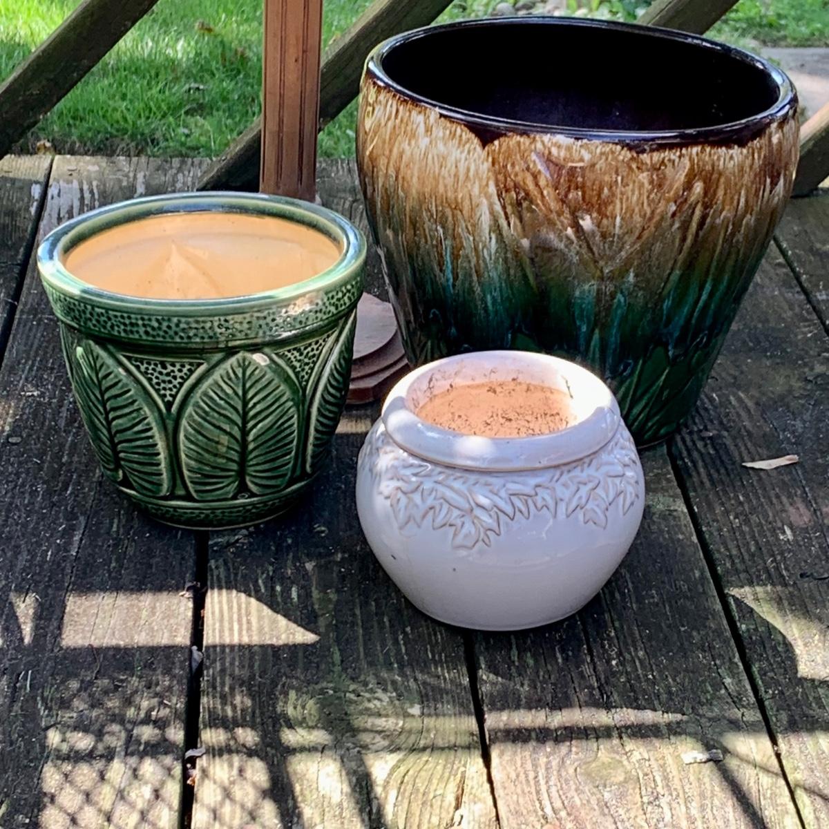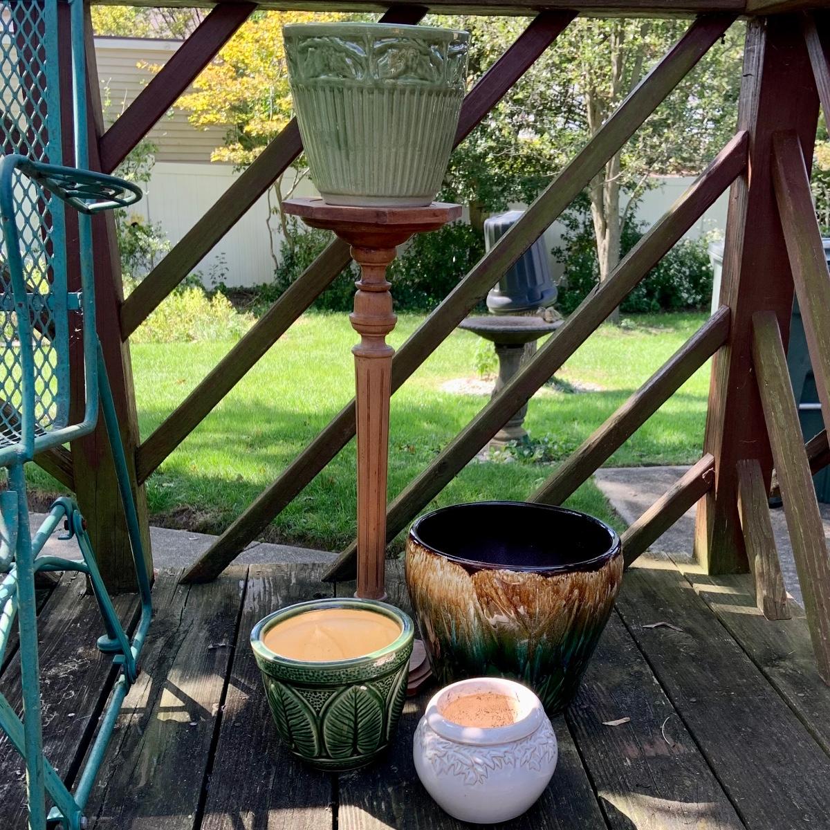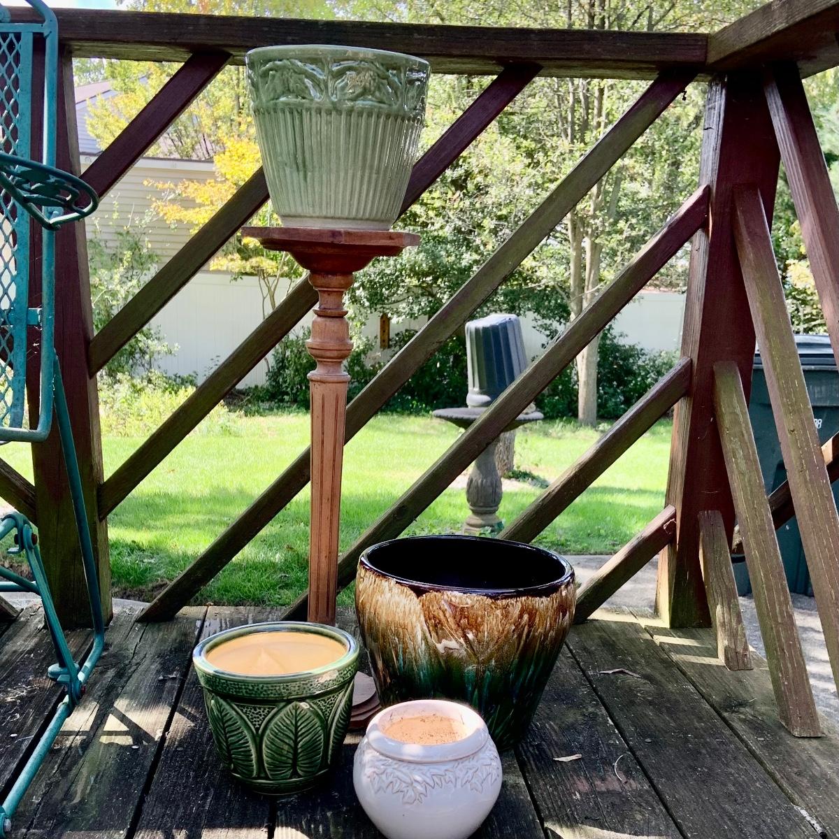 LOT:41G: Ceramic Planters and Wood Plant Stand