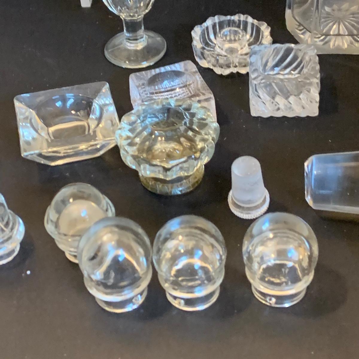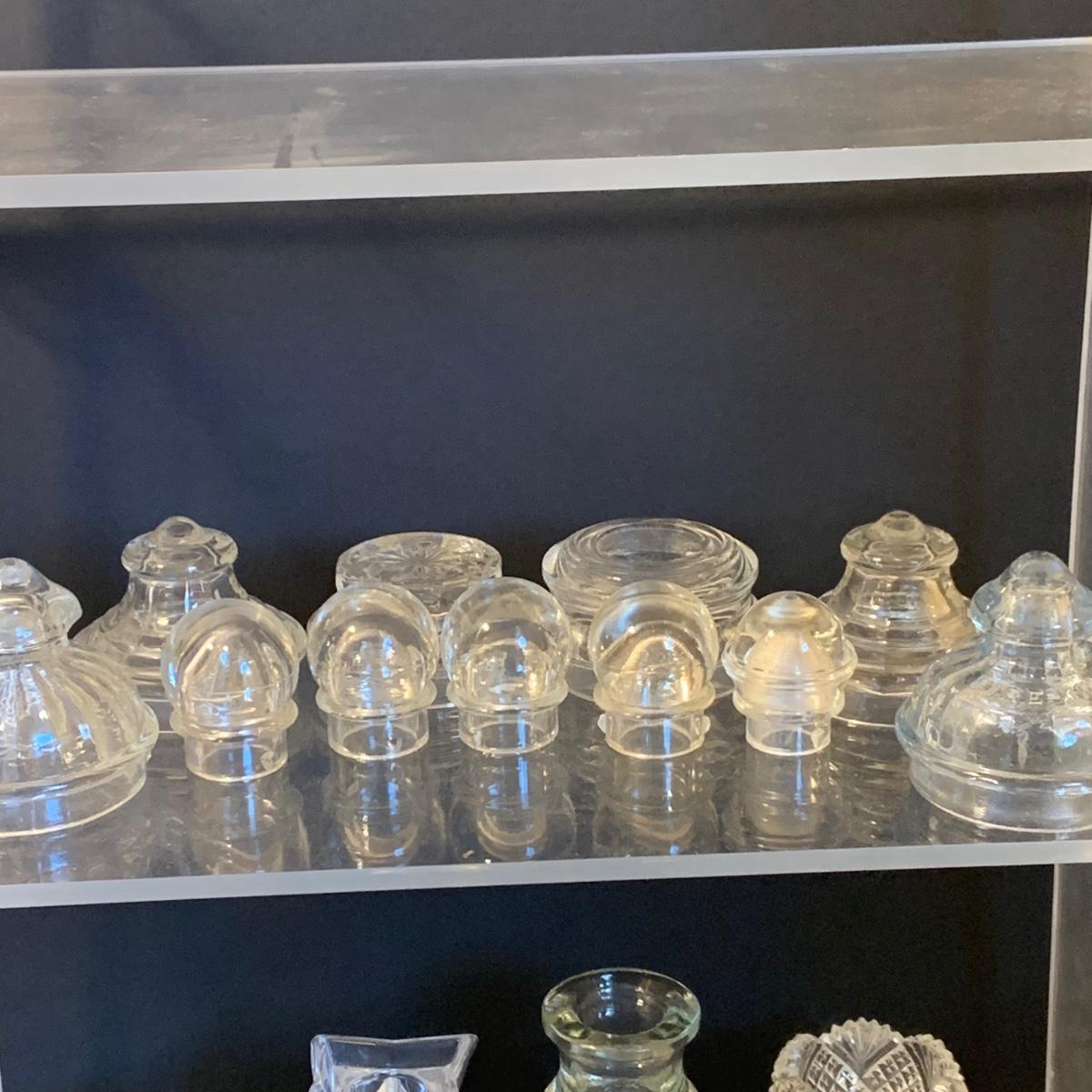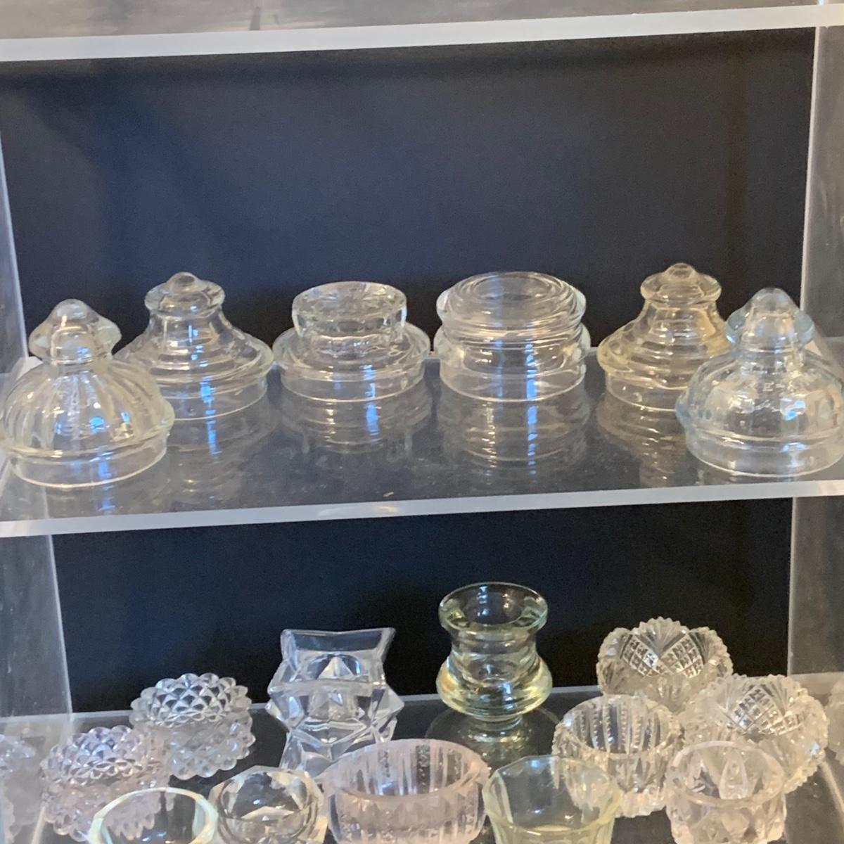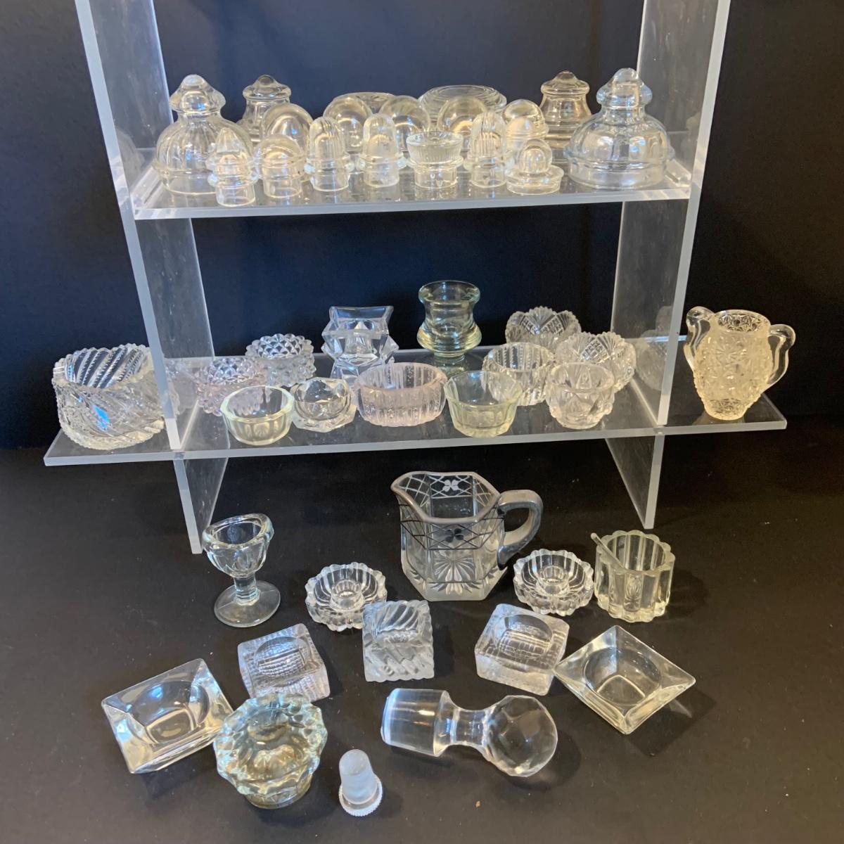 LOT:44G: Large Collection of Vintage Glass Including Butterdishes, Glass Coffee Percolator Tops, Eyewash, Stoppers and More