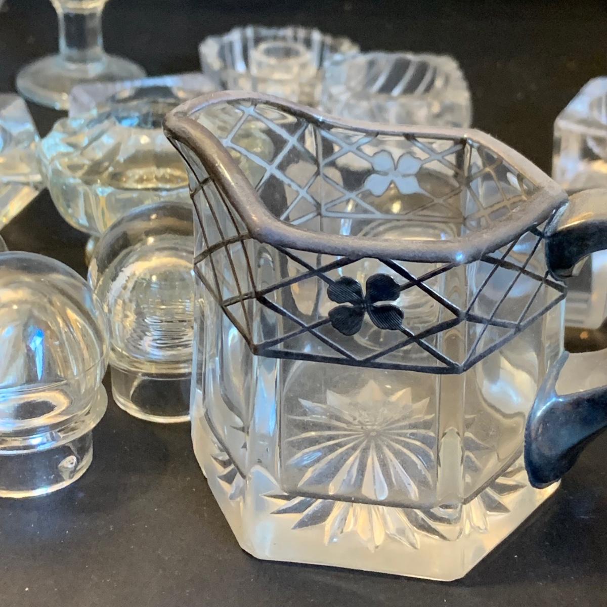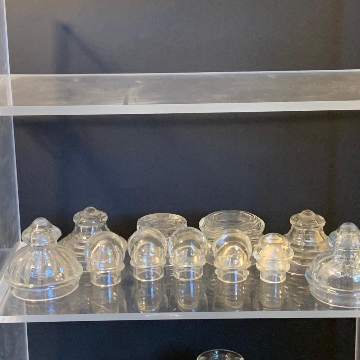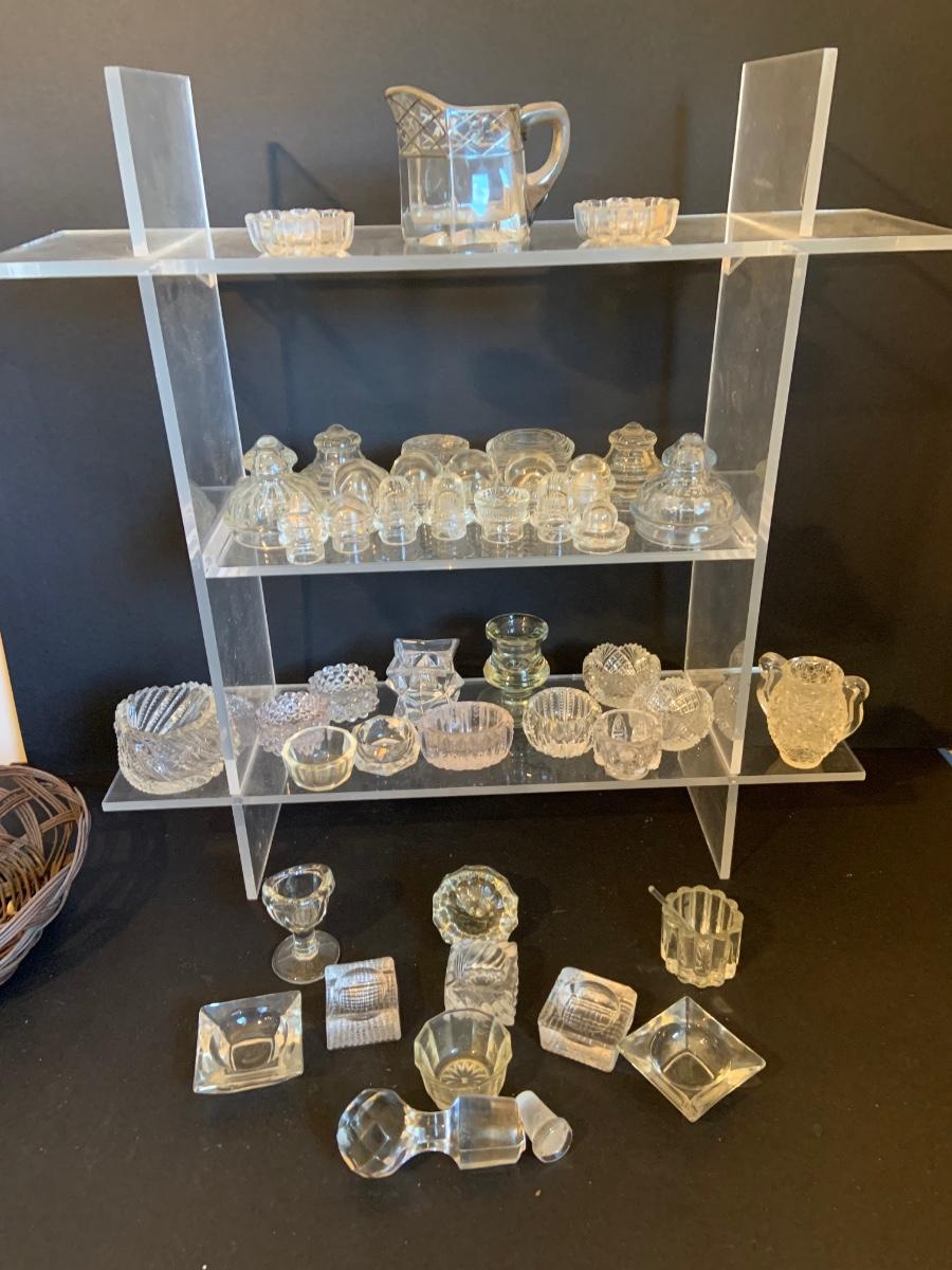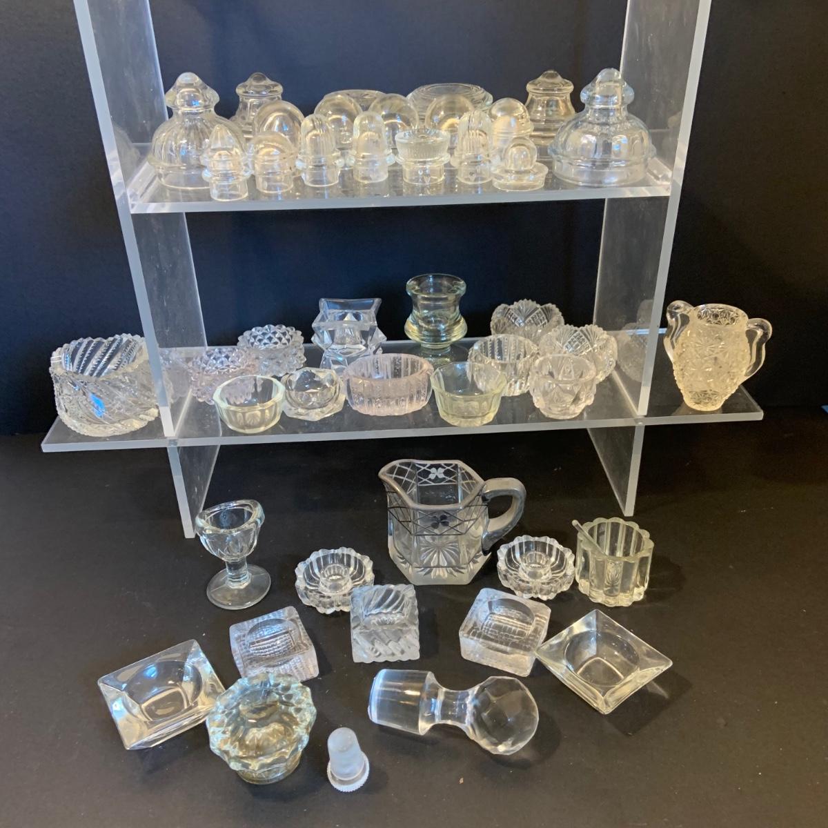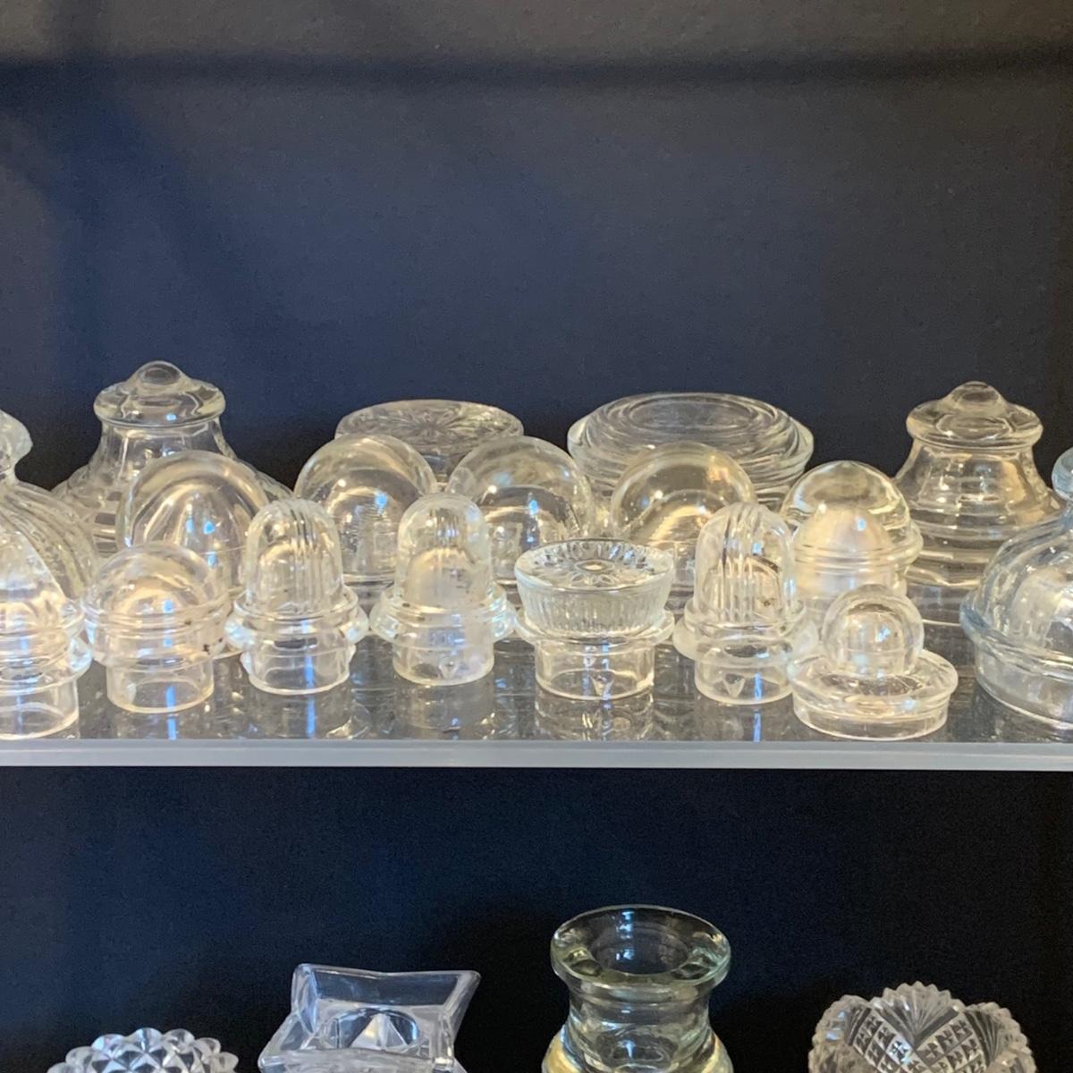 LOT:44G: Large Collection of Vintage Glass Including Butterdishes, Glass Coffee Percolator Tops, Eyewash, Stoppers and More