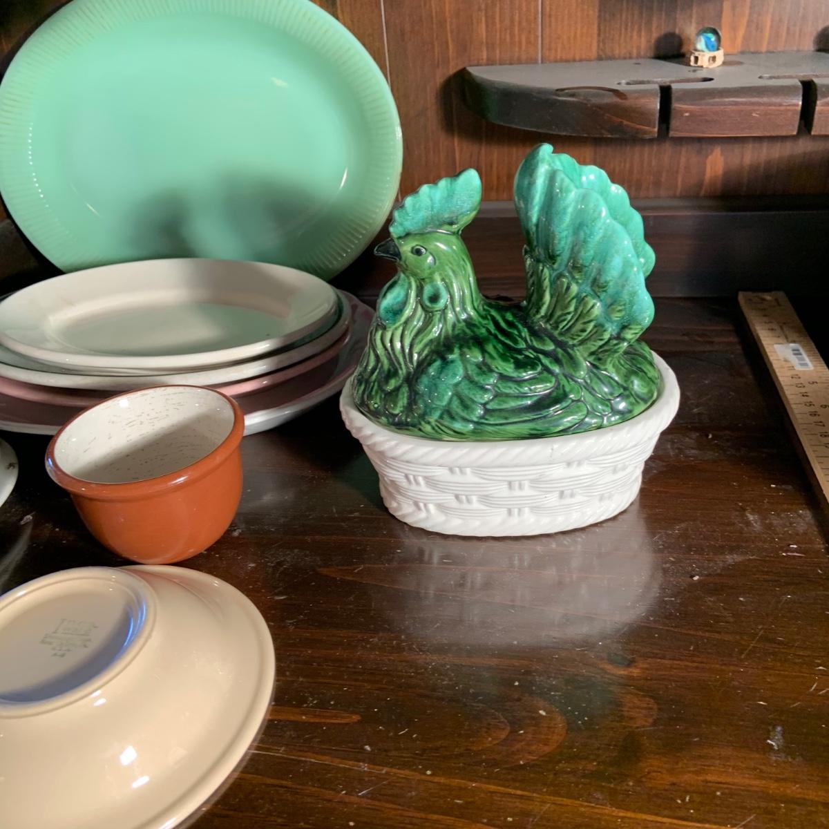 LOT:500G: Collection of MCM China, Green Hen on a Milkglass Nest and More