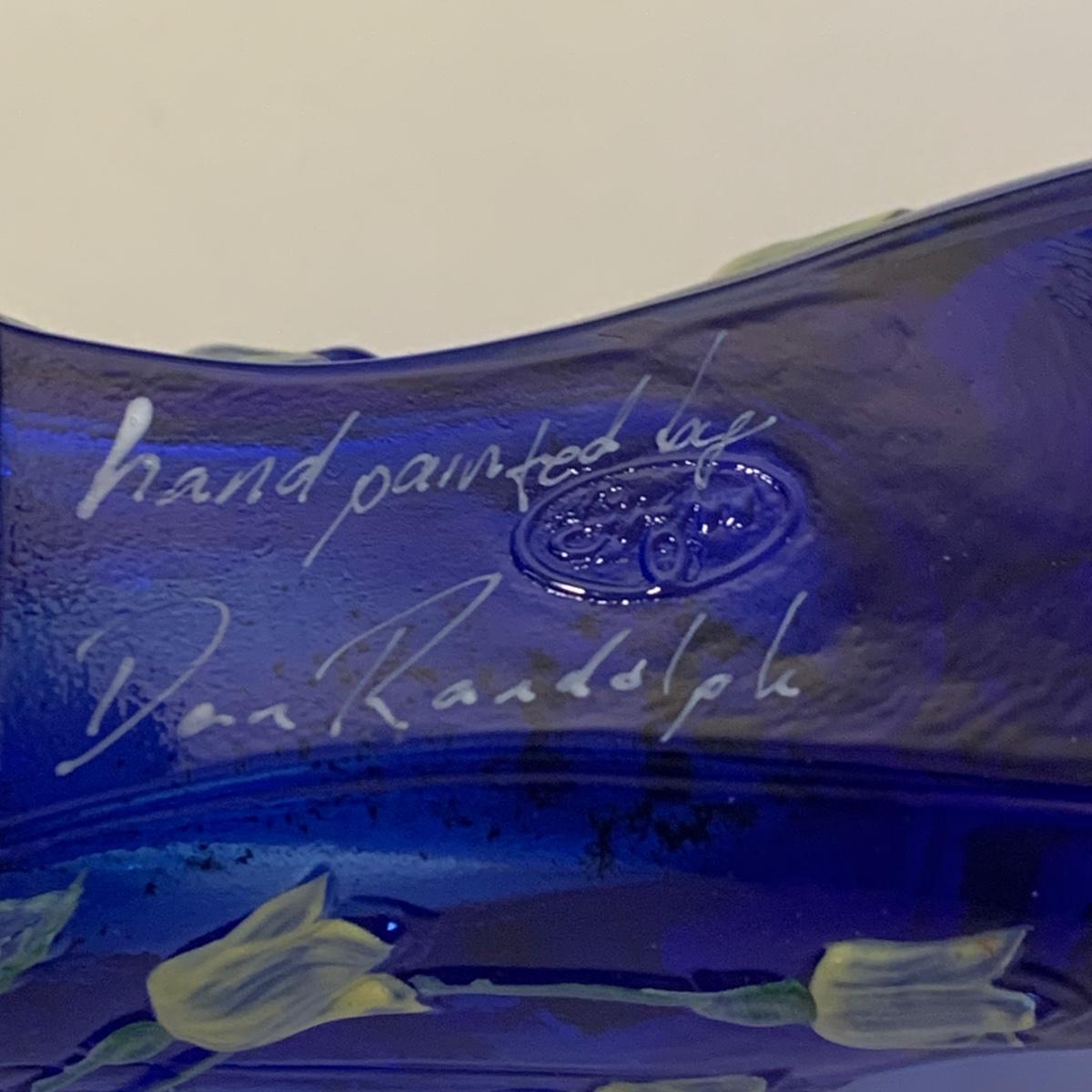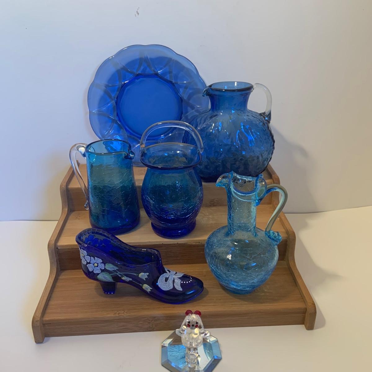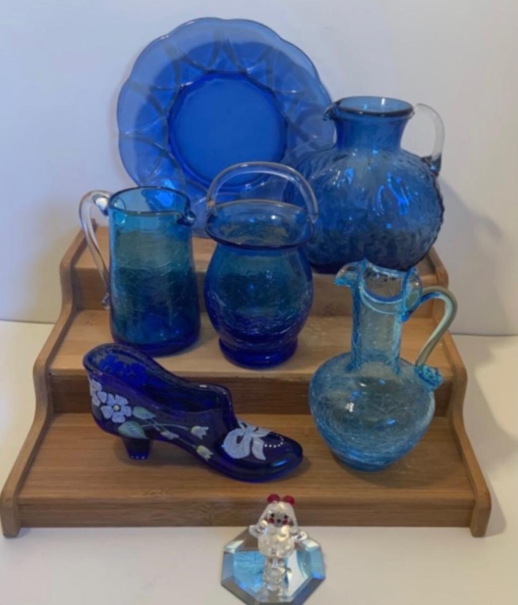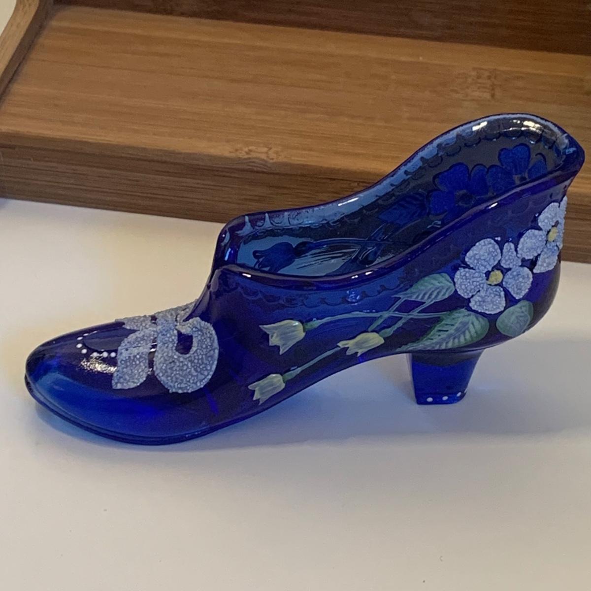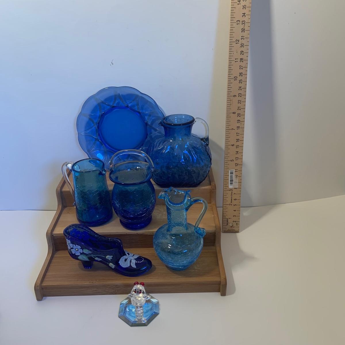 LOT:48G: Collection of Blue Glass Featuring a Signed Glass Shoe and a Crystal Doll