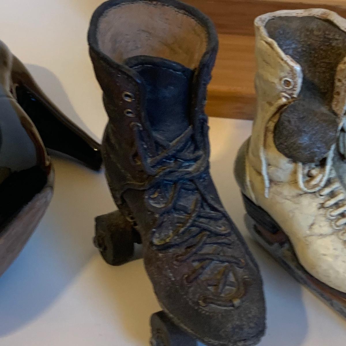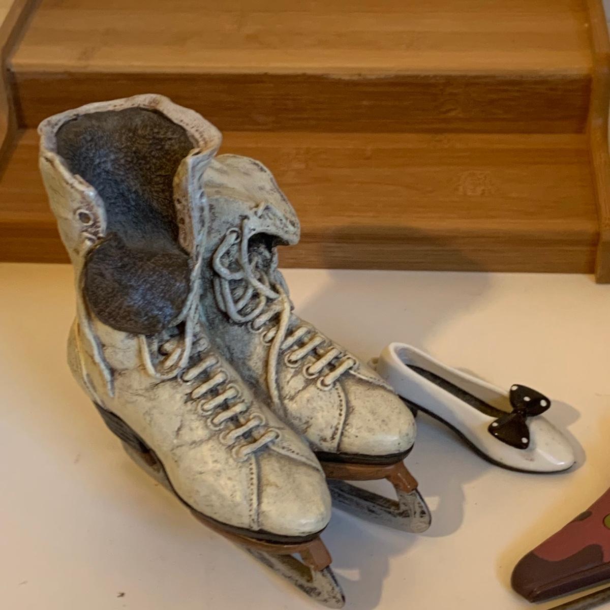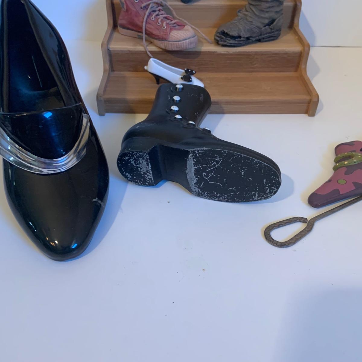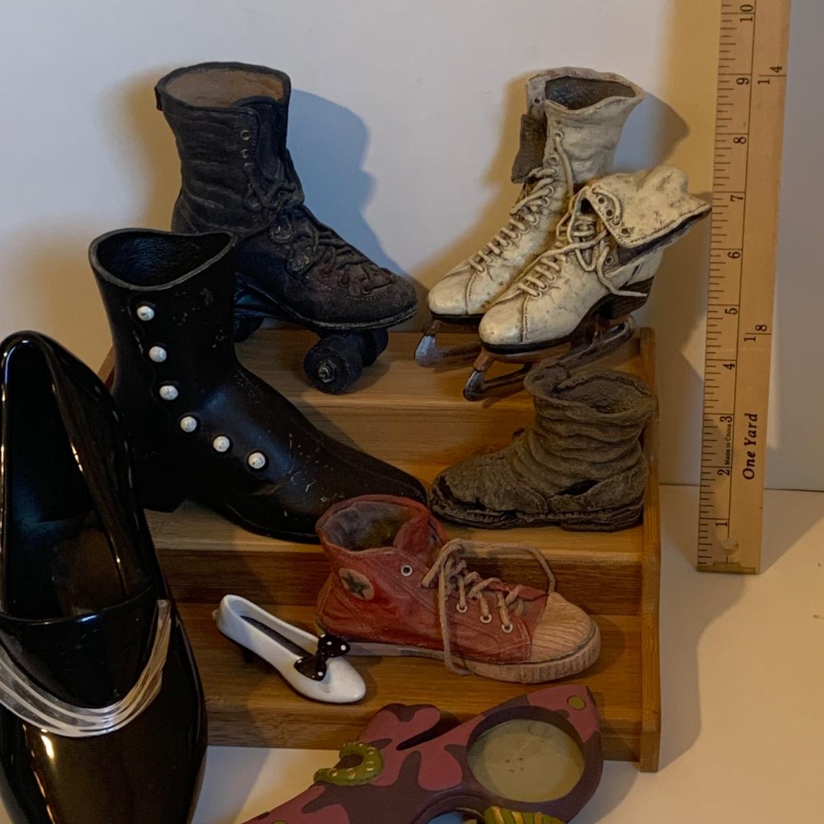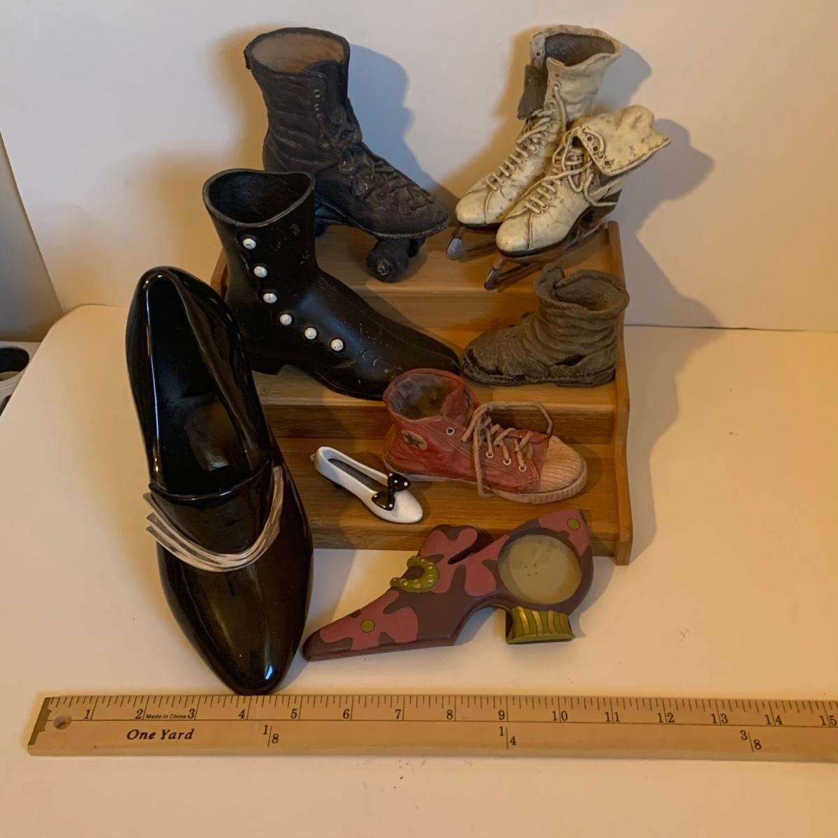 LOT:51G: Decorative Shoes Incluing Skates and Mann Black Cermanic Pumps, Buttonhook and a Pair of Vintage Snakeskin Pumps