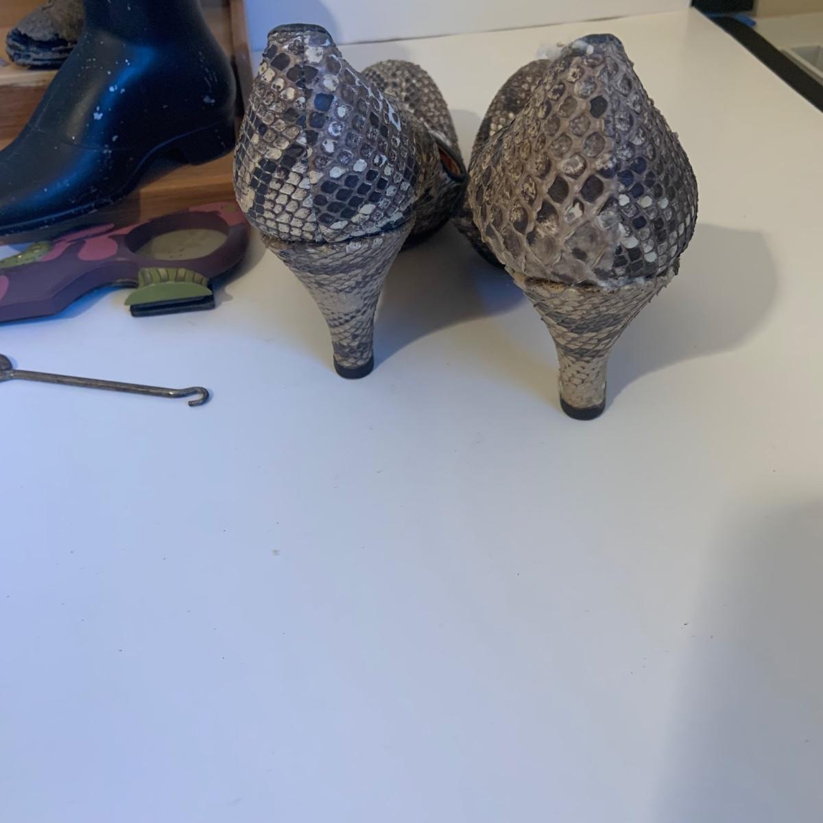 The snakeskin shoes are not sized. Please see all pictures as they are the best representation of the items. The pictures show condition, measurements if taken, and what is included in the lot. Due to the large amount that we photograph and the time frame, we are not always able to take measurements. All items unless noted, are pre-owned and have been used. If you purchased furniture, you must bring help. We do not allow one person to carry large furniture out on their own. Bring help, tools and a truck for the safety of our client’s homes, and your personal safety. Any damages that result to the property including walls, and floors due to moving of the furniture will be charged to the buyer. Company policy. Thank you.