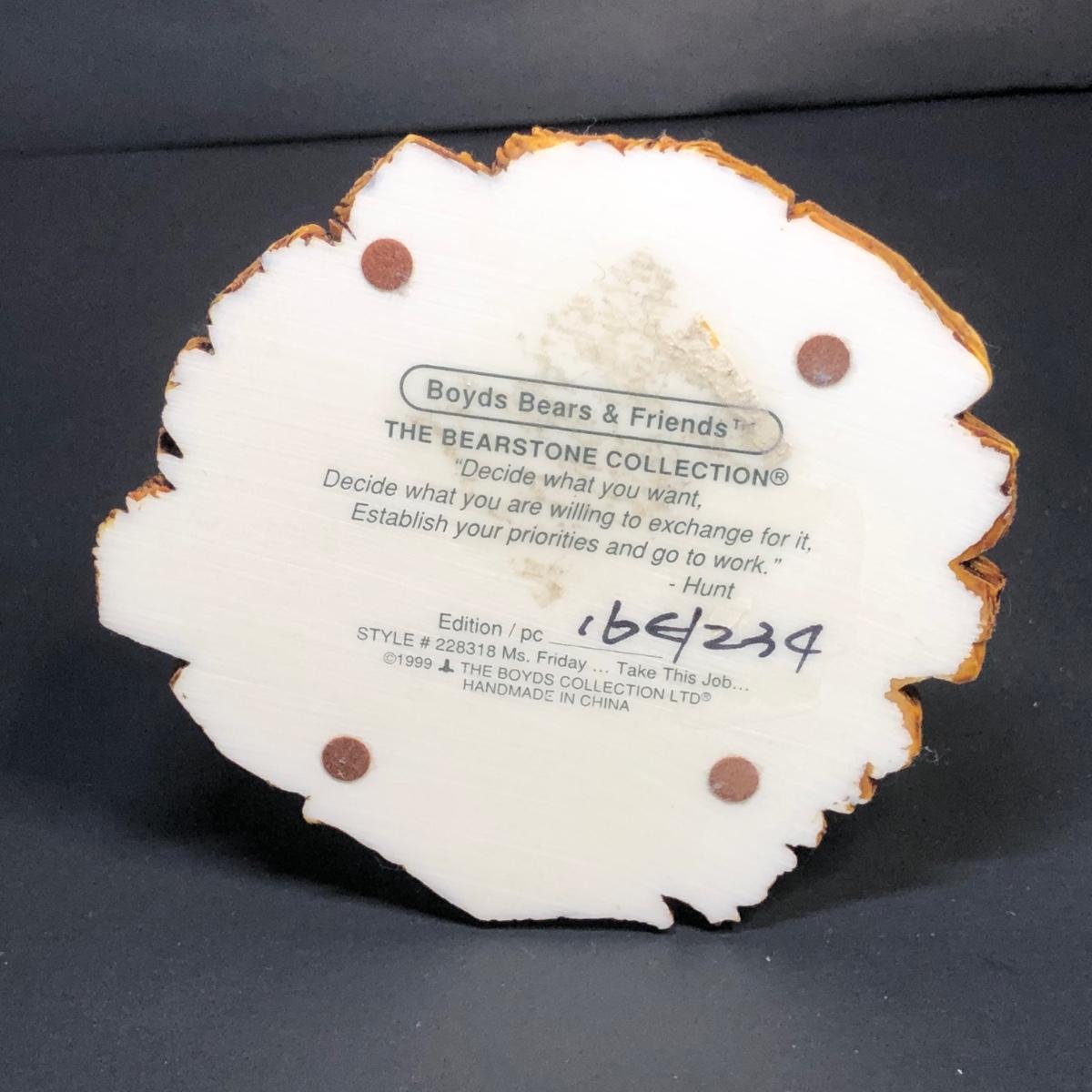 LOT 58M: Boyd’s Bears & Friends-1998 #27301 The Collector (7E/3423), 1999 #228318 Ms Friday.. Take this Job (16E/234), 1993 #2020-09 (5E/3265), 2003 #2277937AV Amy Bearybloom“🦆Forever Friends & Mor