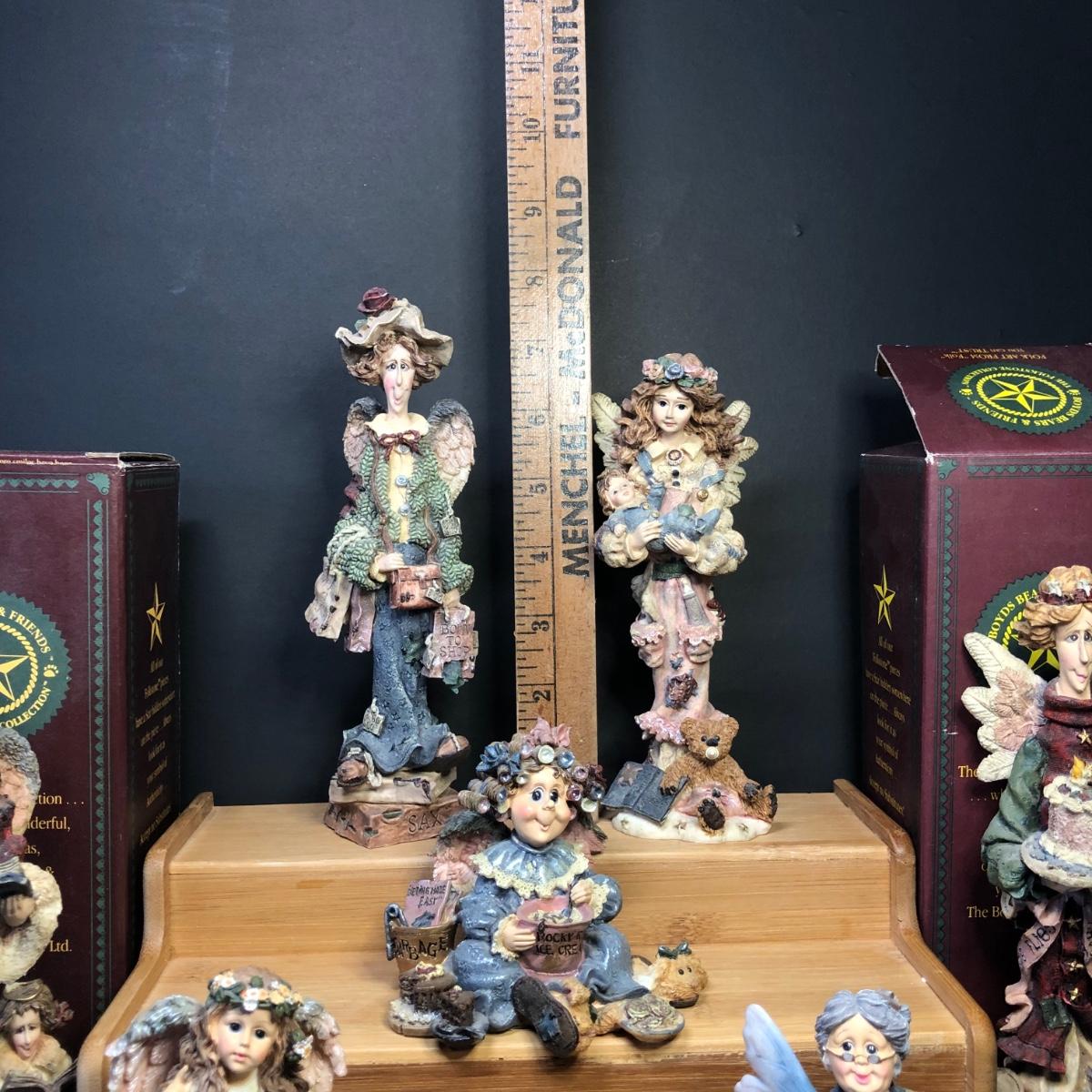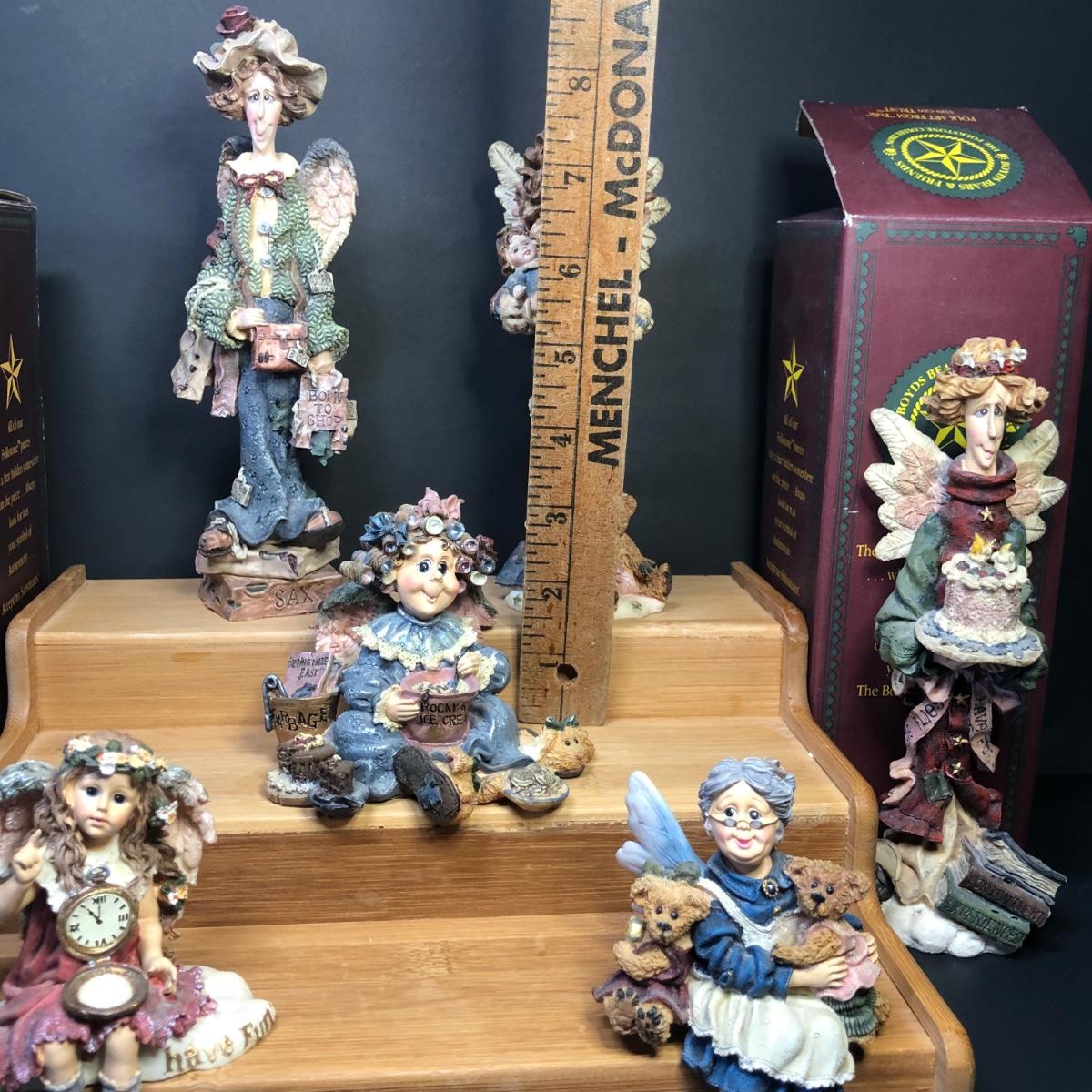 Also includes 1995 #2828 Seraphine w/ Jacob & Rachael...the Choir Angels w/ Box (2E/2569), 1996 #28204 Serenity...the Mother's Angel (5E/1375), 1994 #2827 Lizzie...the Shopping Angel (2E/2254), 1998 #363o5 Indulgenia Q. Blult...Angel of Denial (4E/8630).