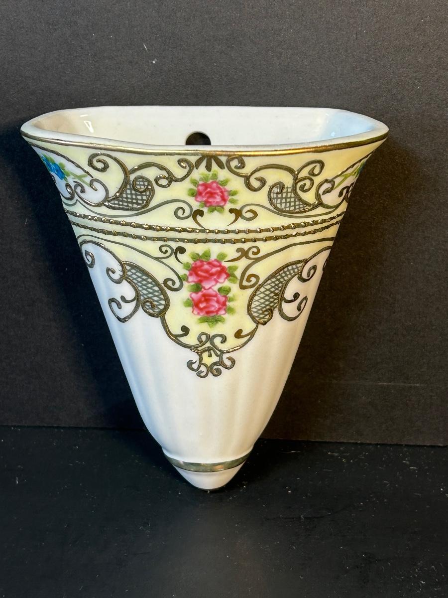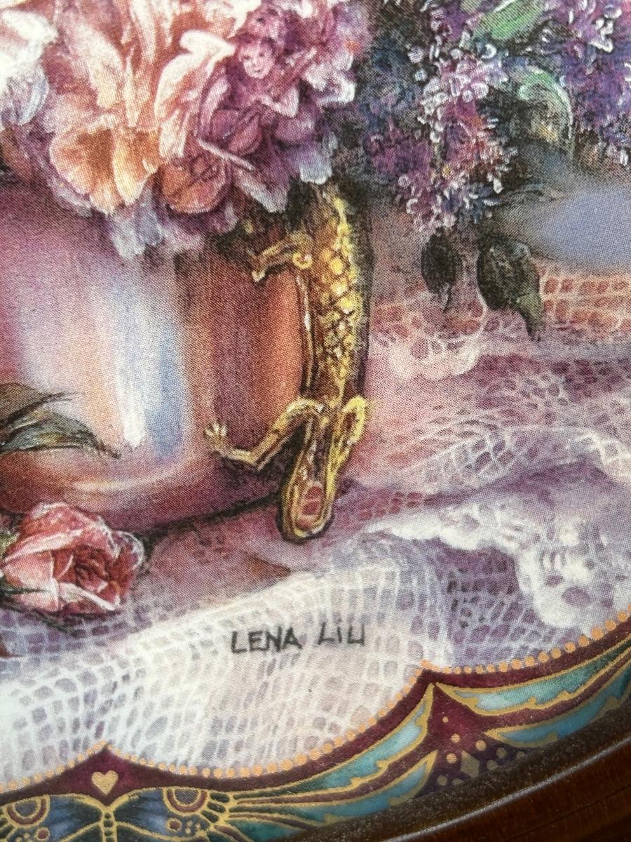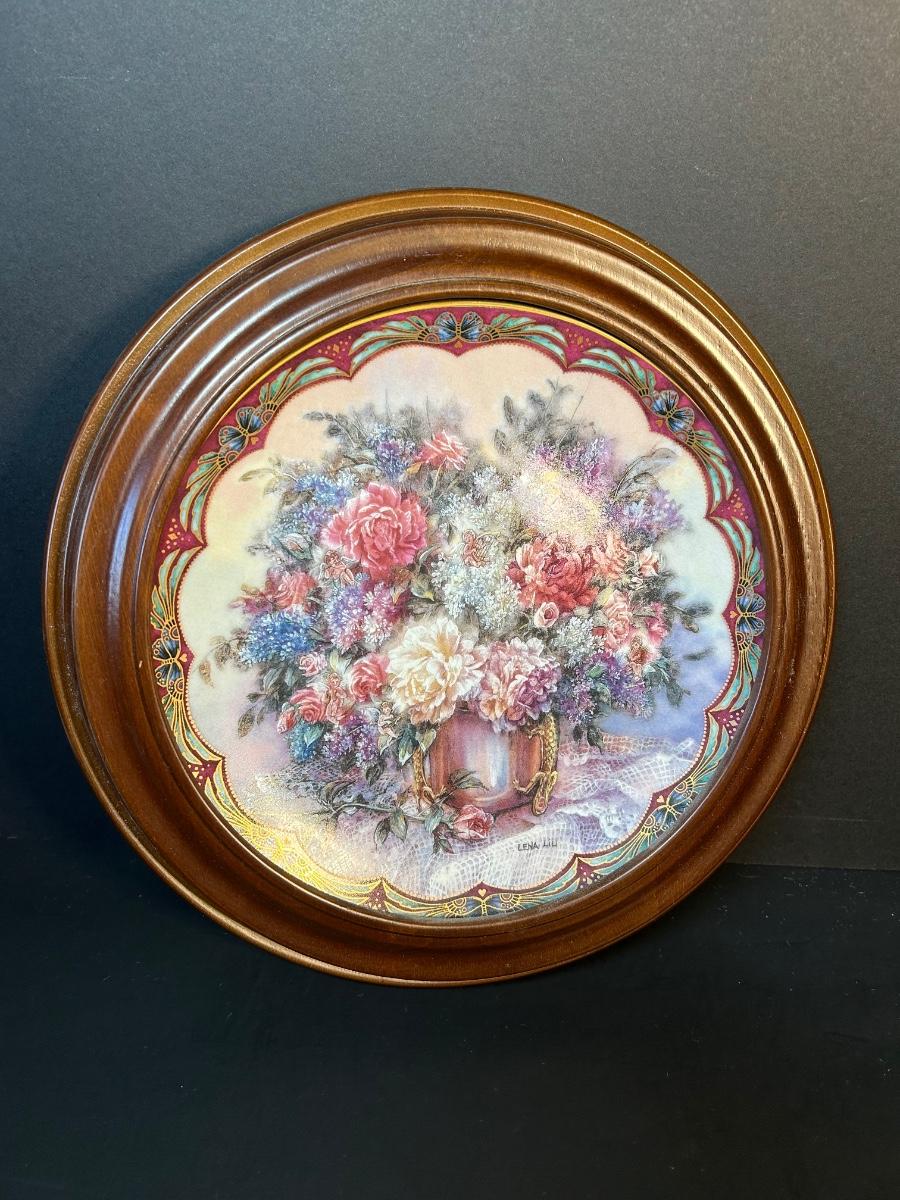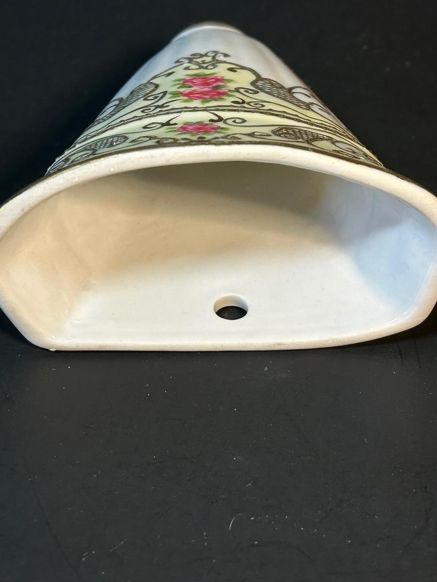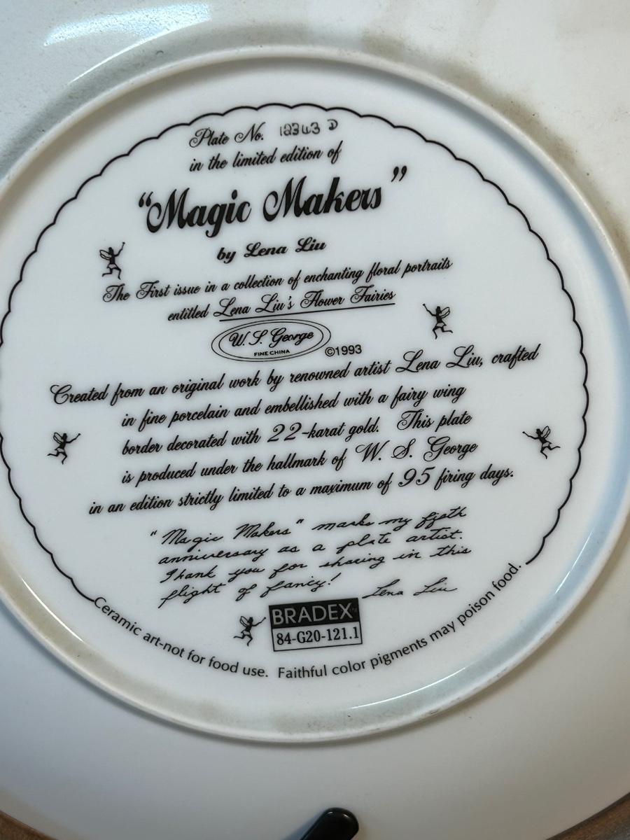 "Magic Makers" by Lena Liu Collectors Plate, Gold trimmed wall planter, colored glass pieces.