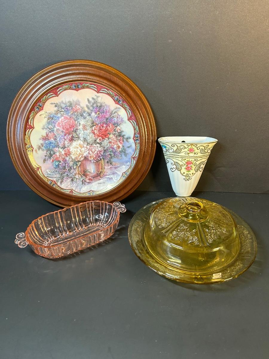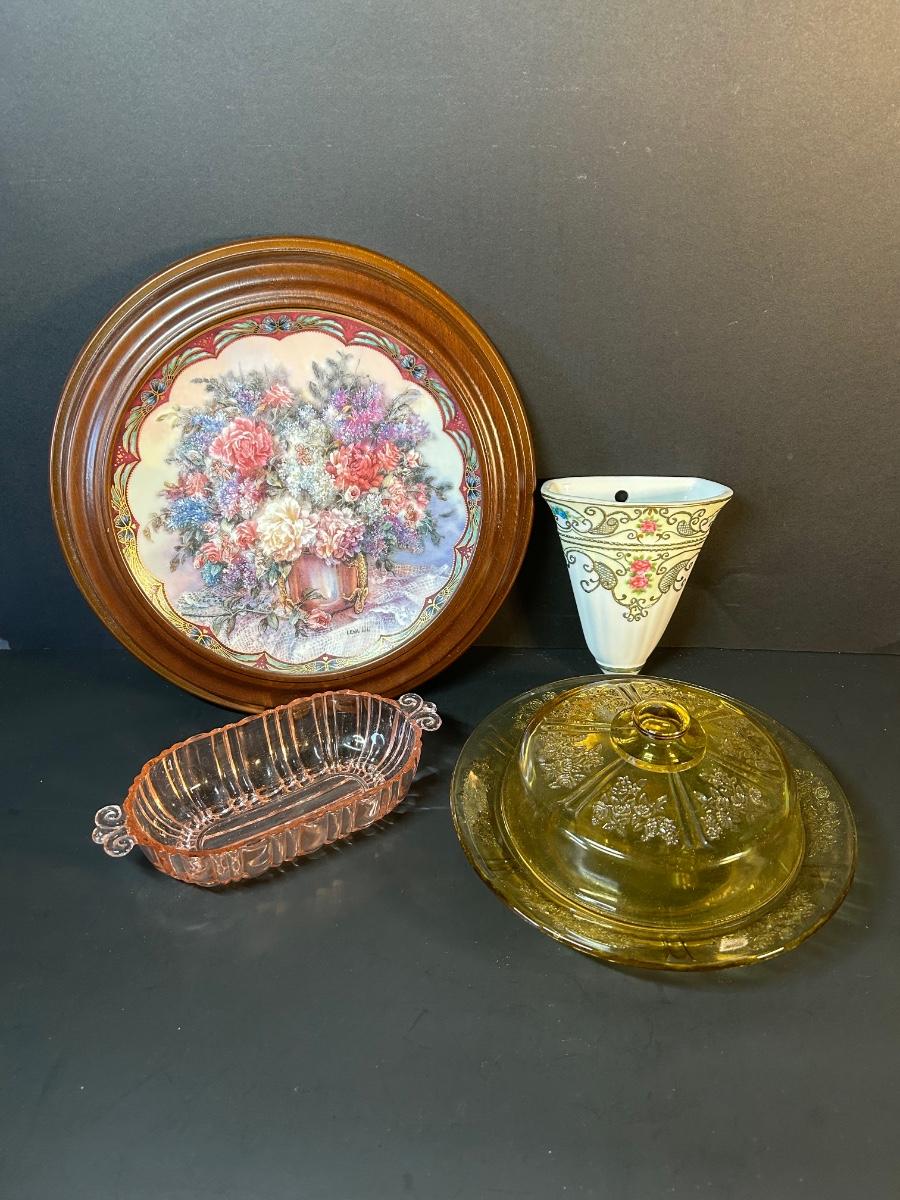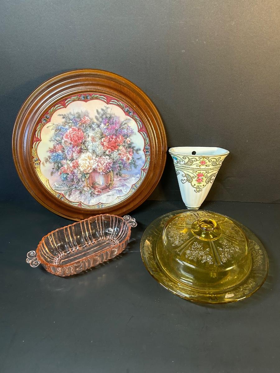 LOT 77C: Bradex Collectors Plate, Wall Planter And Colored Glass