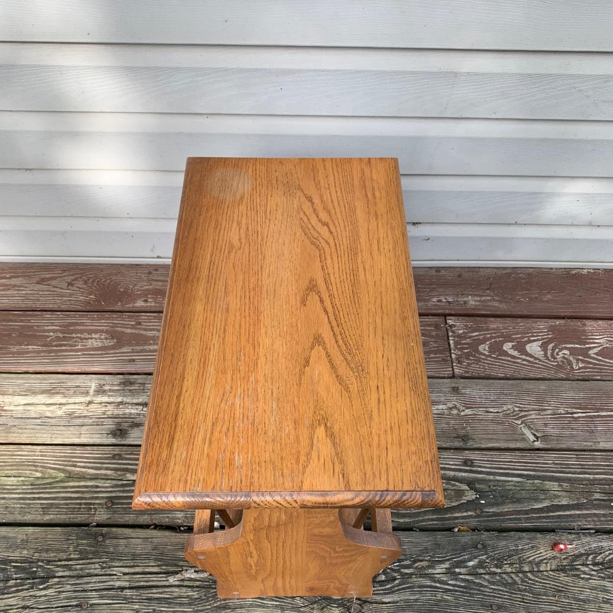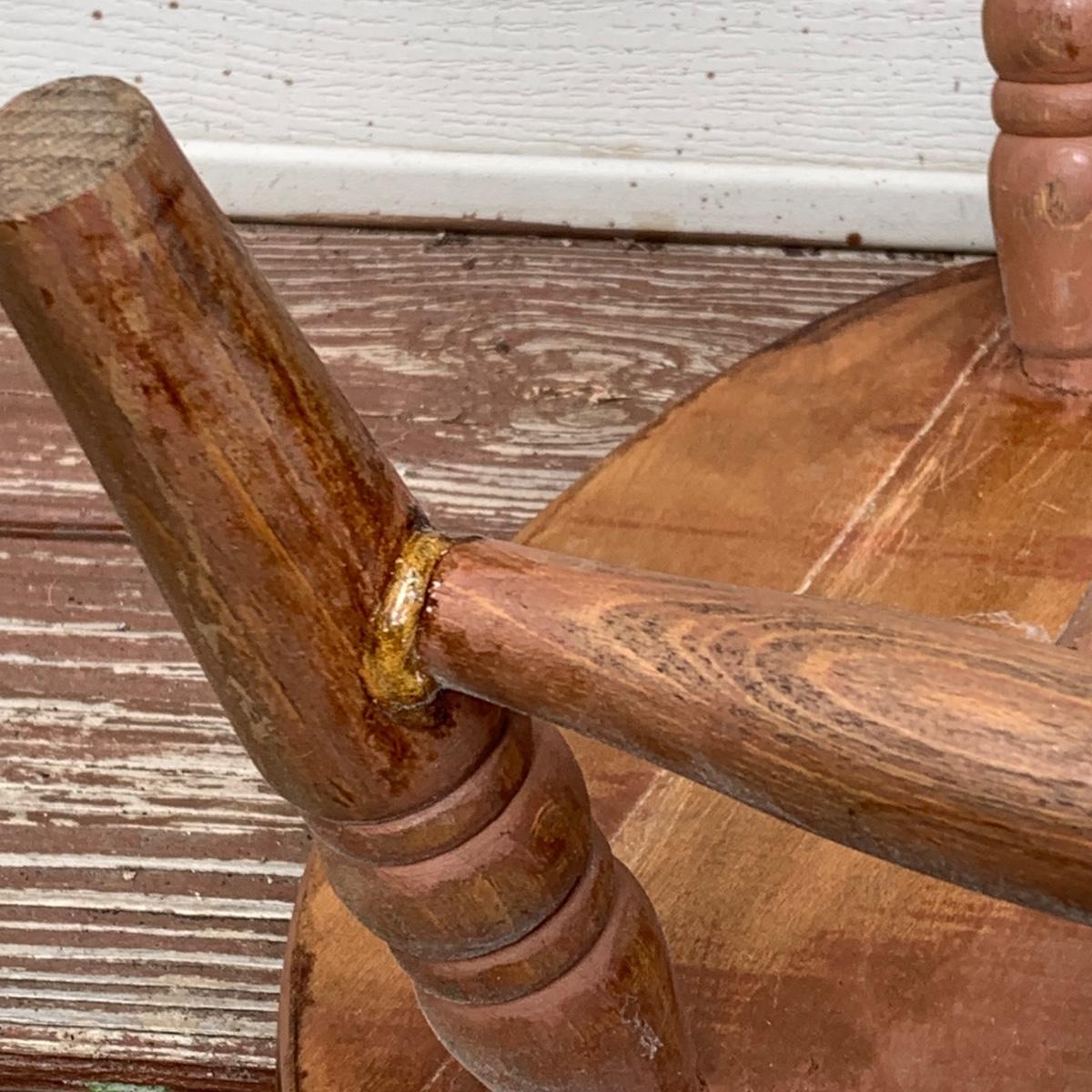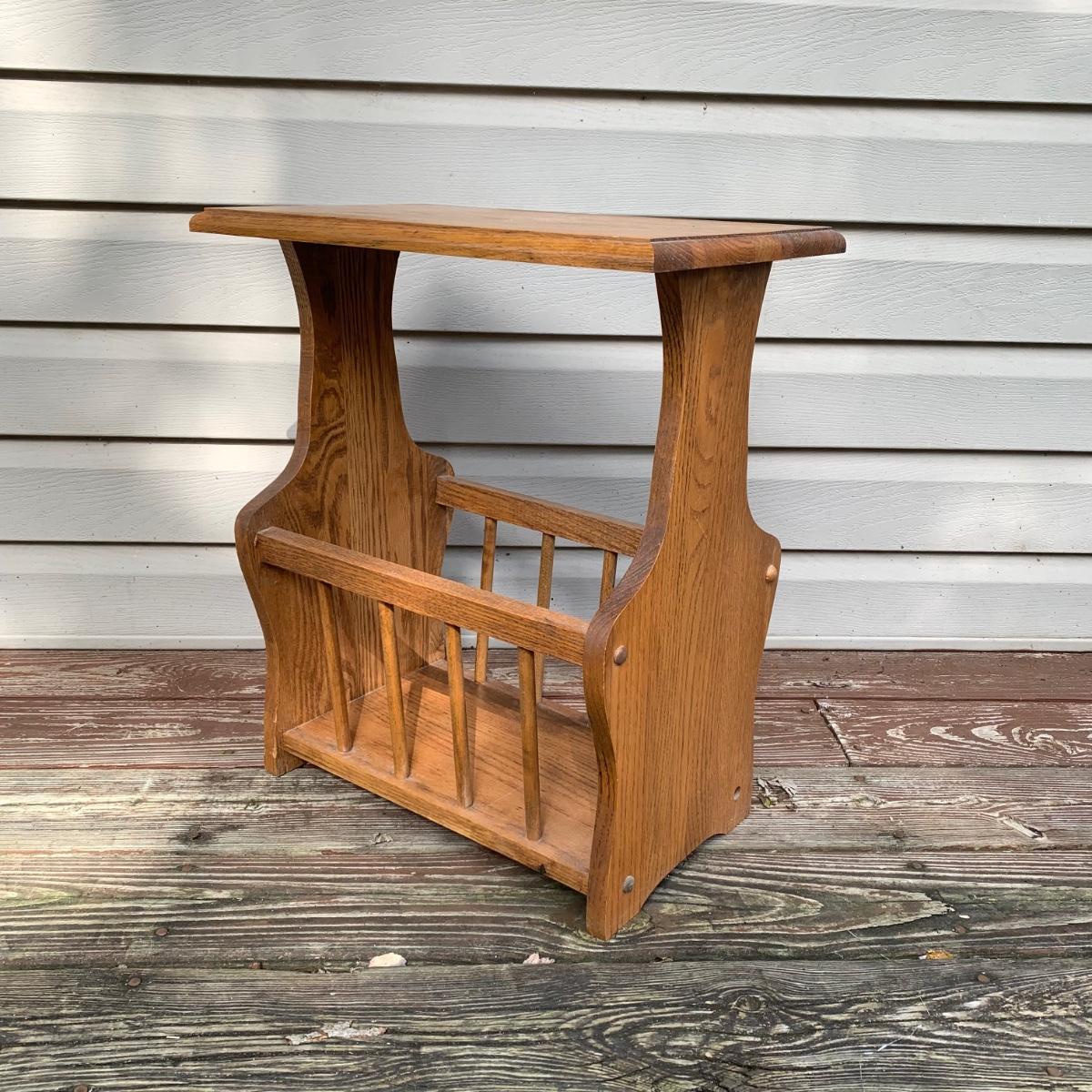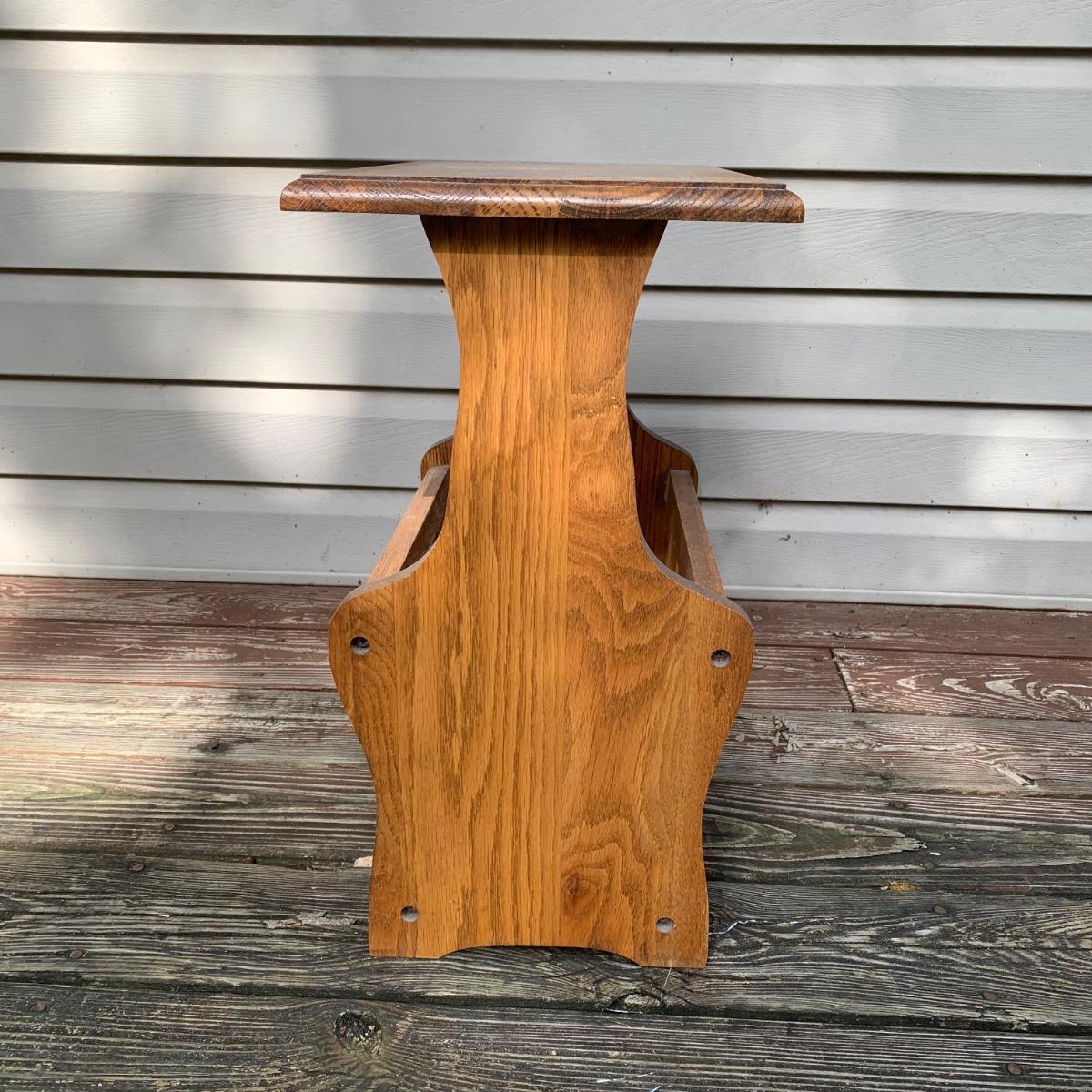 LOT 83R: Vermont Shaker Stool w/Apple Cutout, Primitive Wooden Oval Stool & Wooden Accent Table/Magazine Holder