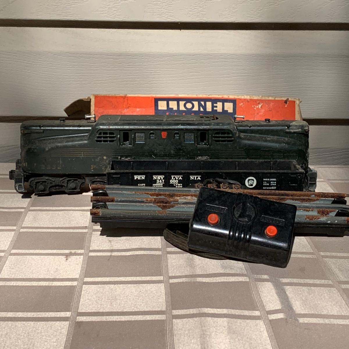 LOT 85R: Lionel 2332 Vintage O Pennsylvania Locomotive, Lionel RCS Remote Control Track Set (O-Gauge), Lionel PRR 347000 Gondola Car O 2452