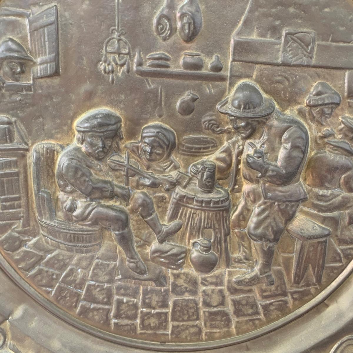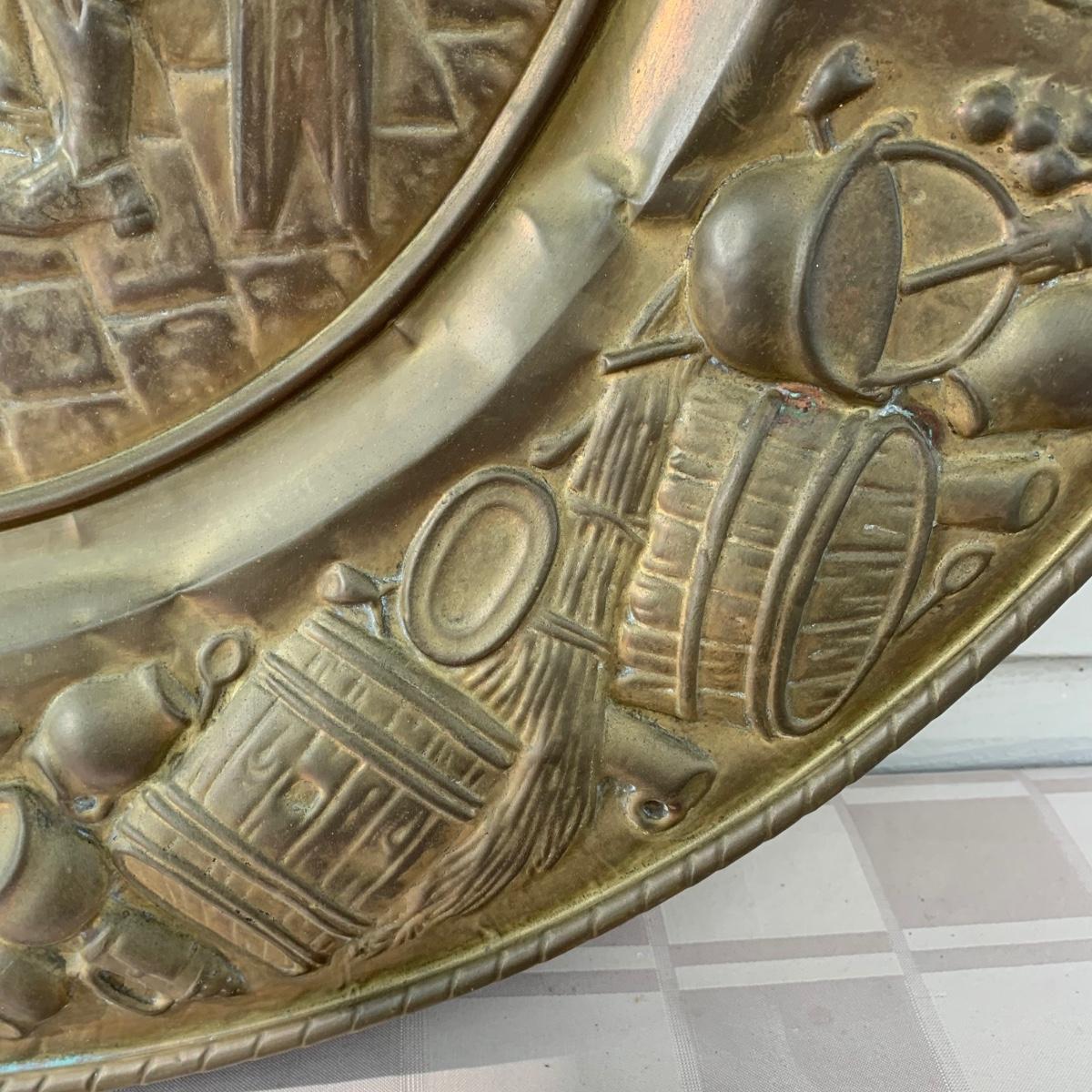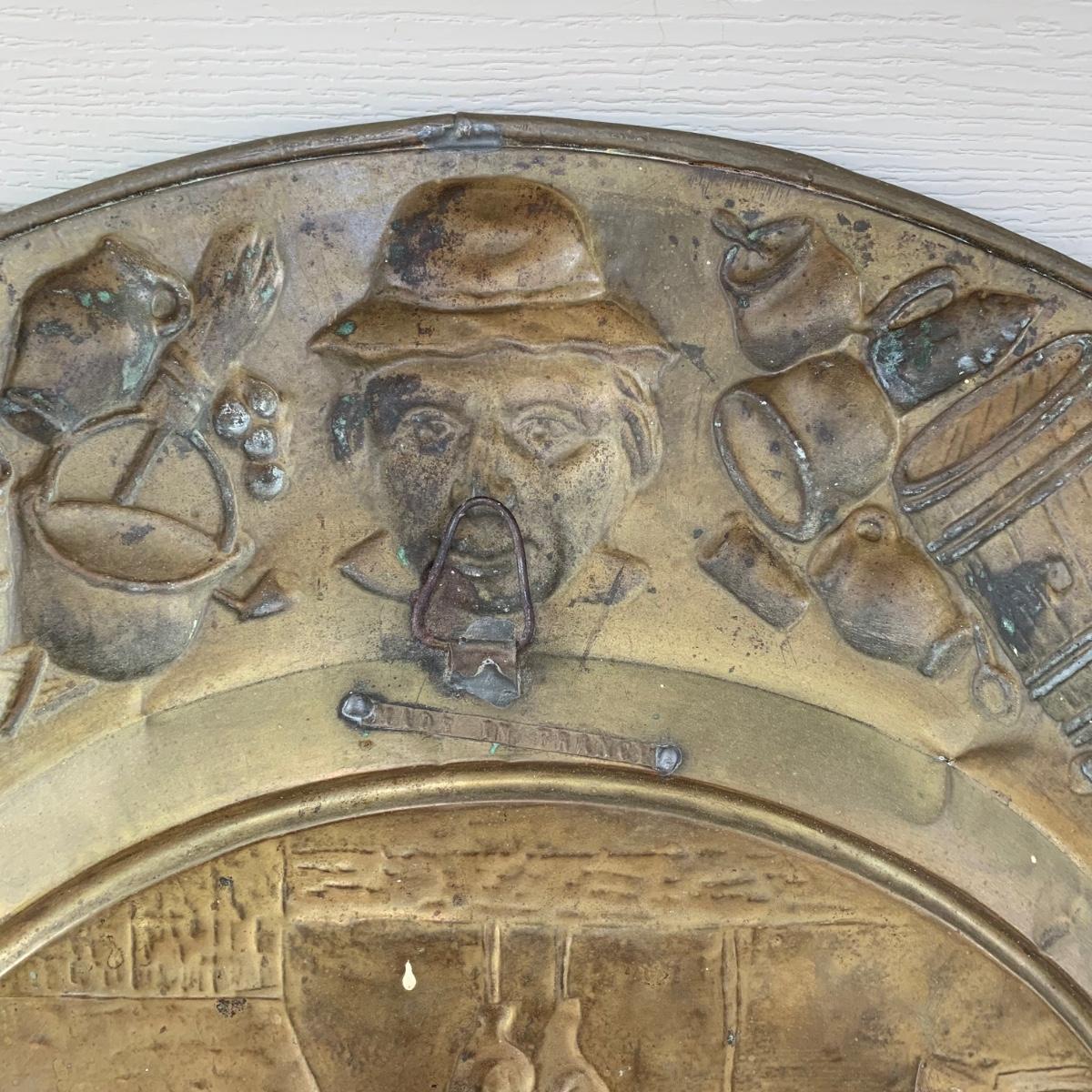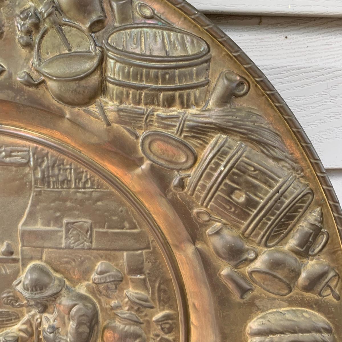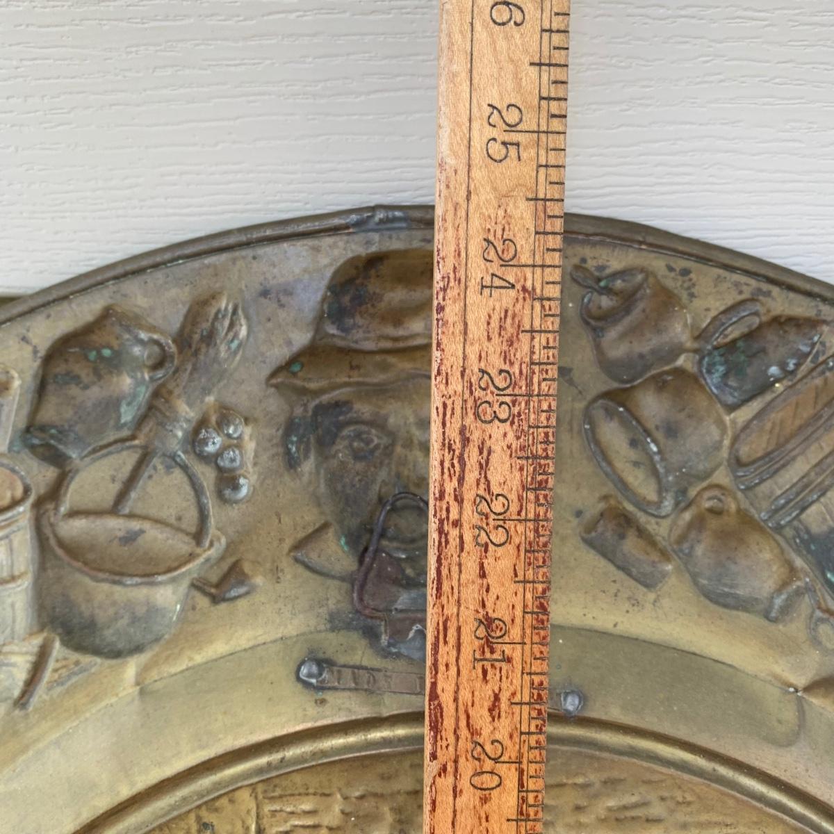LOT 97R: Vintage Tavern Scene Brass Embossed Wall Plate Hanging 24.5” Diameter Made in France