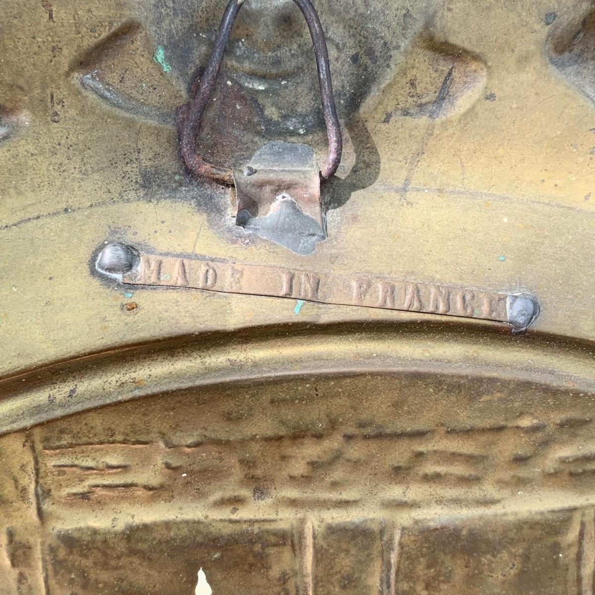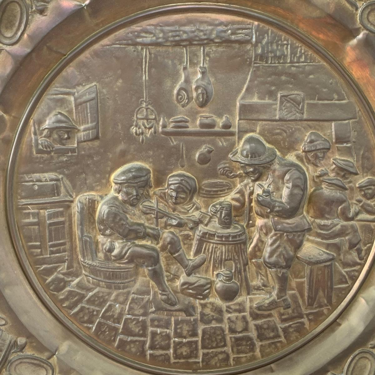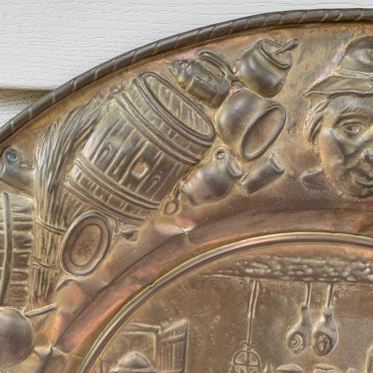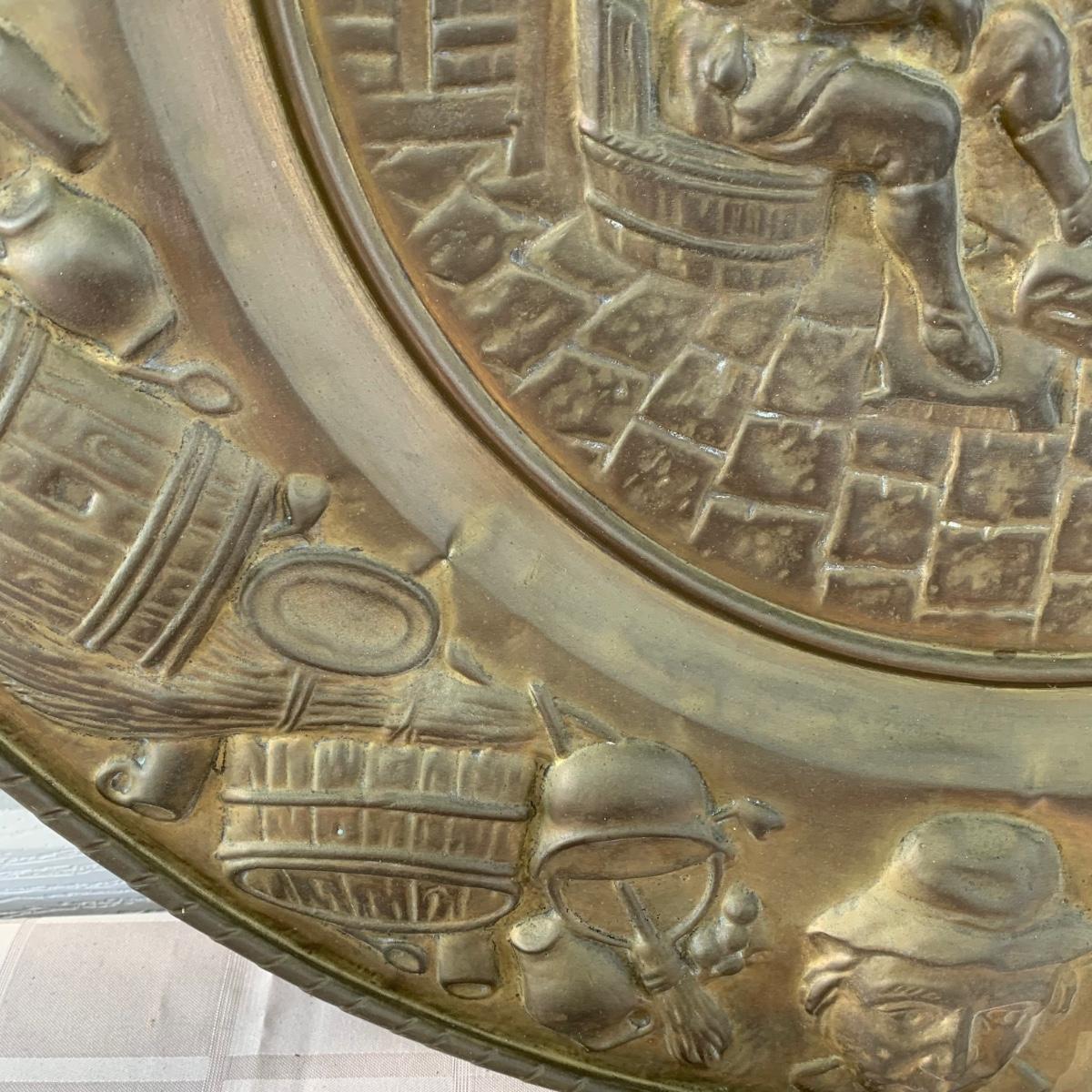 LOT 97R: Vintage Tavern Scene Brass Embossed Wall Plate Hanging 24.5” Diameter Made in France