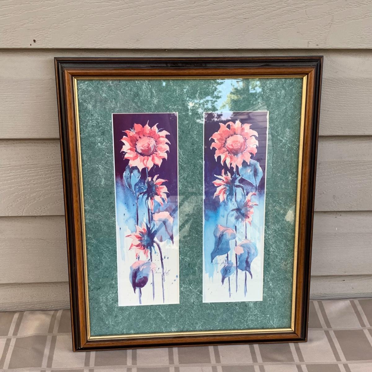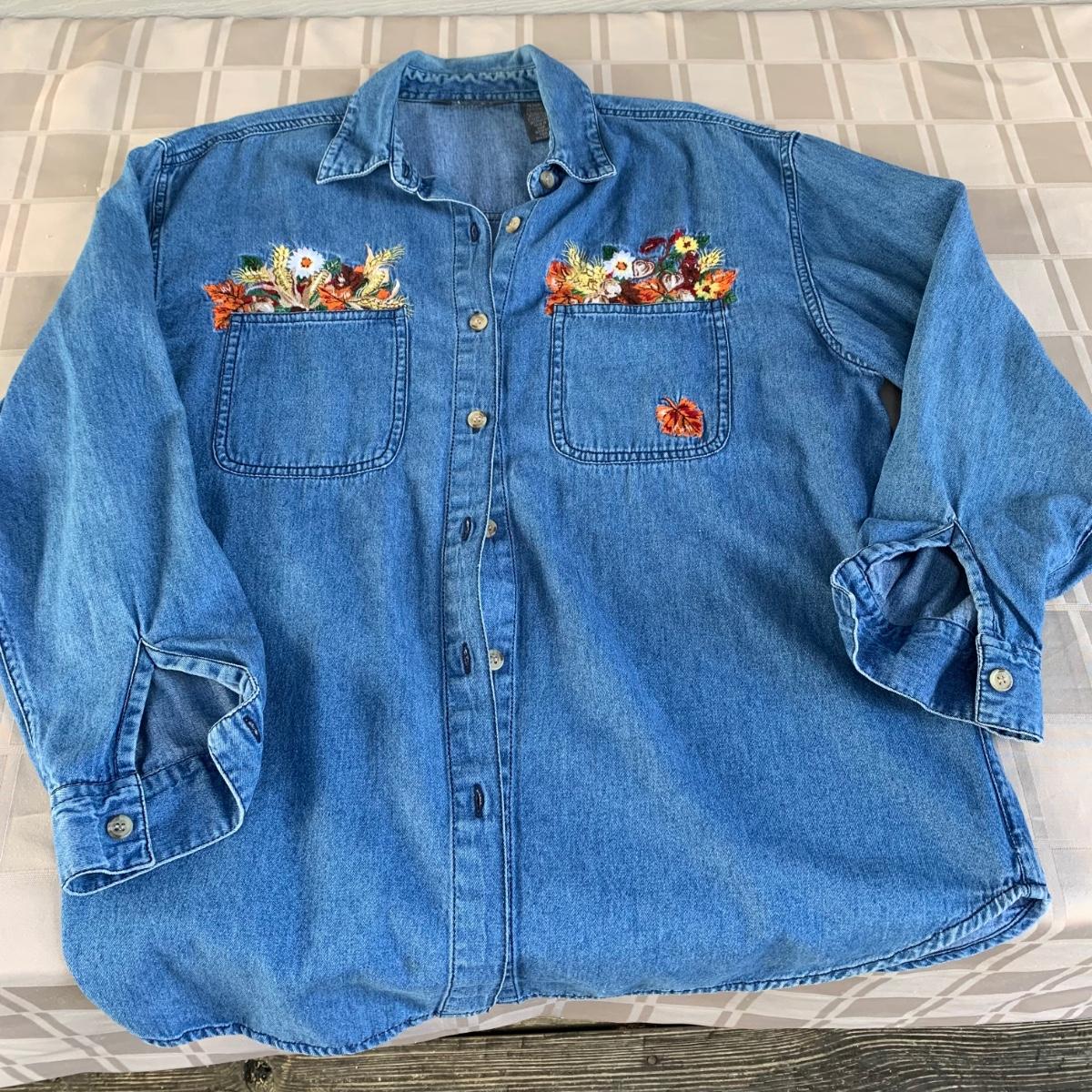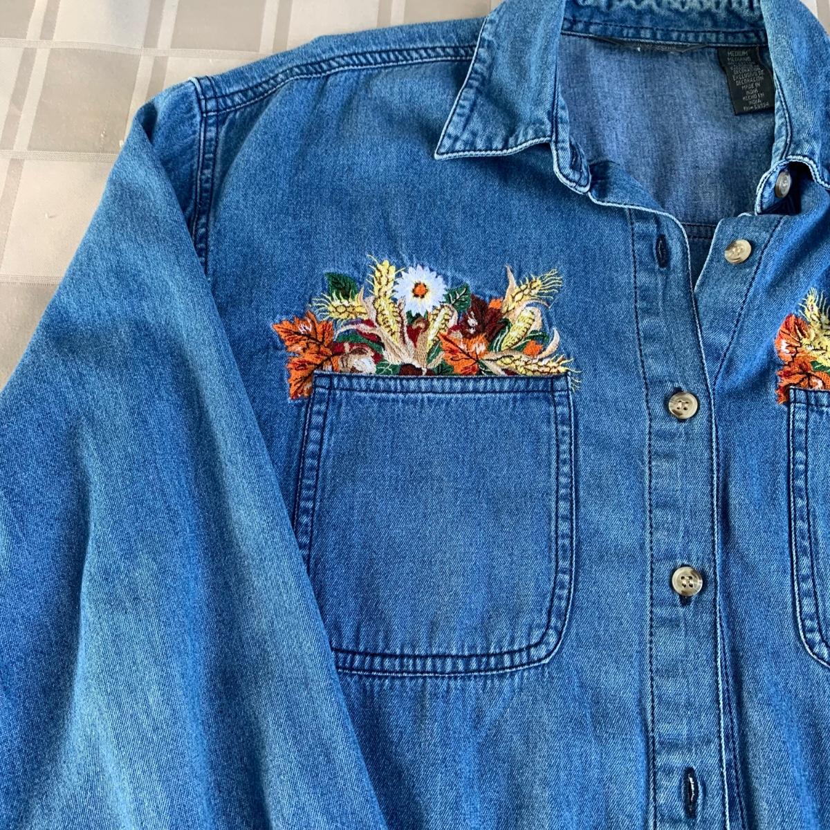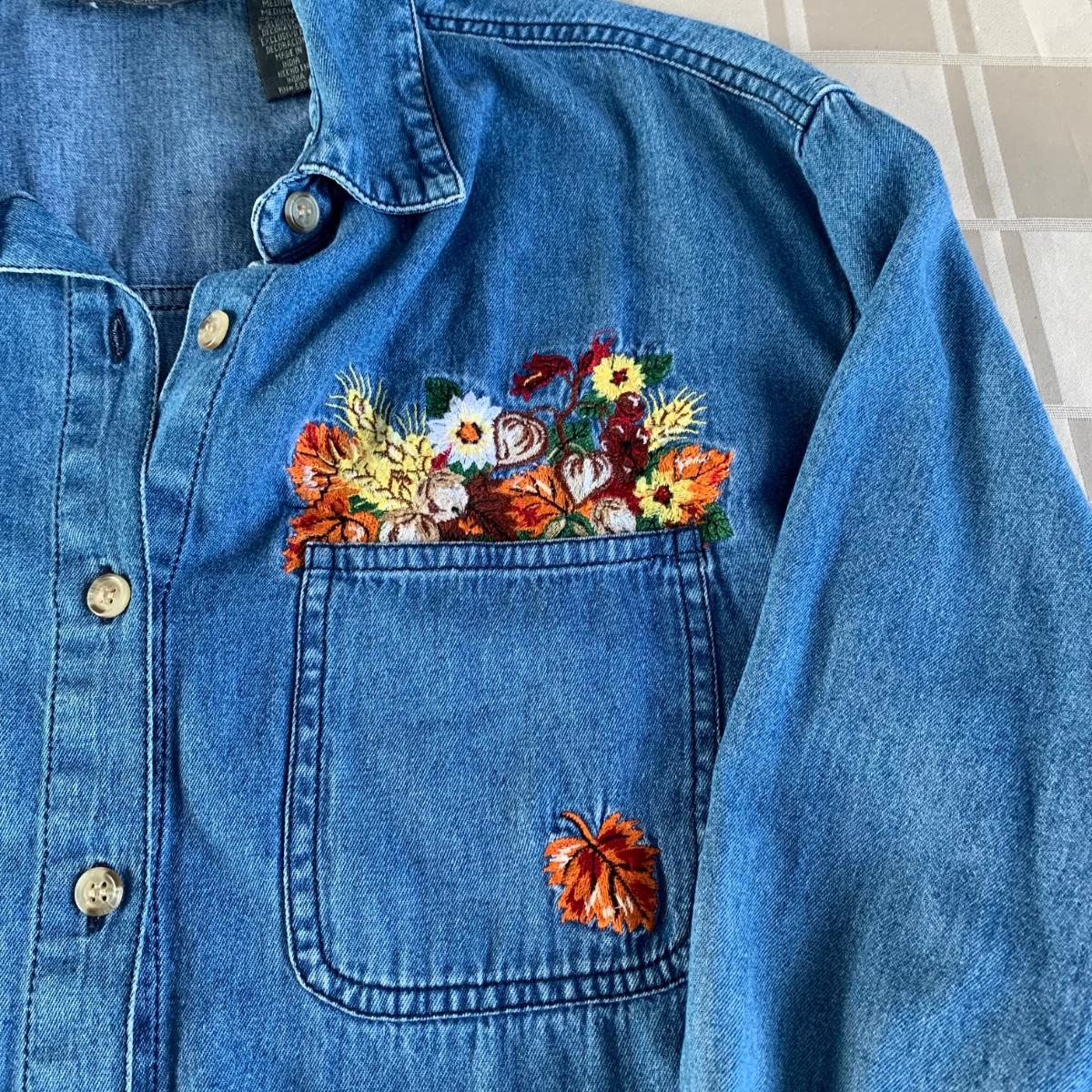 LOT 105R: Fall Collection: Heirloom Collectible Fall Sweater, Embroider Denim Shirt, Handbag, Signed Sunflower Print and a GIANT Faux Sunflower