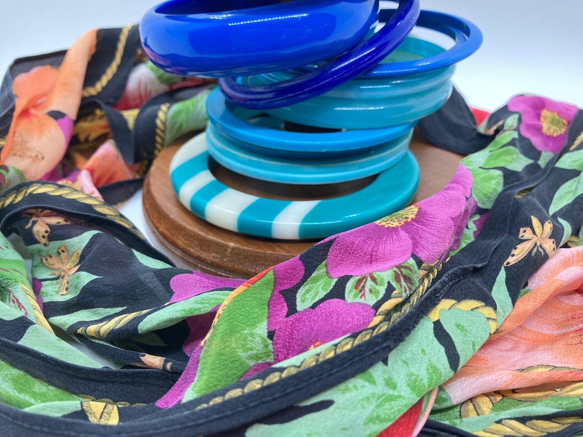 LOT 111J: Colorful Bracelet Collection and Oscar De La Renta Scarf