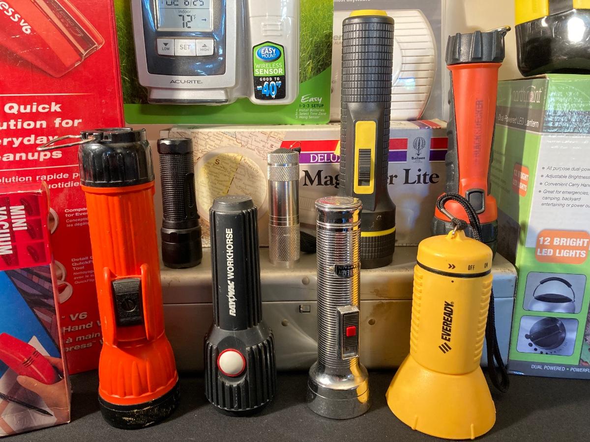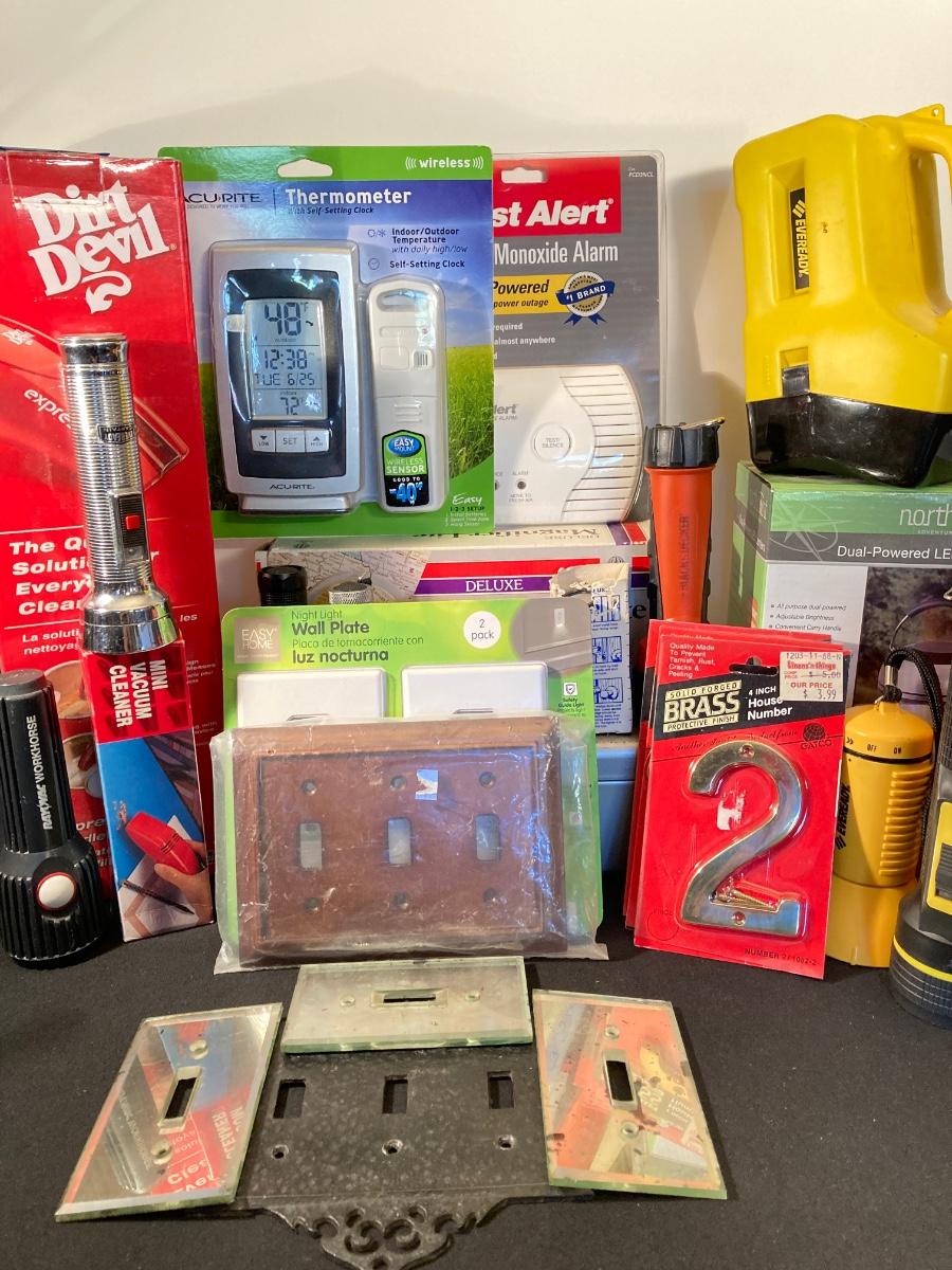 LOT 113J: Large Housewares Lot - Flashlights, Carbon Monoxide Alarm and Much More