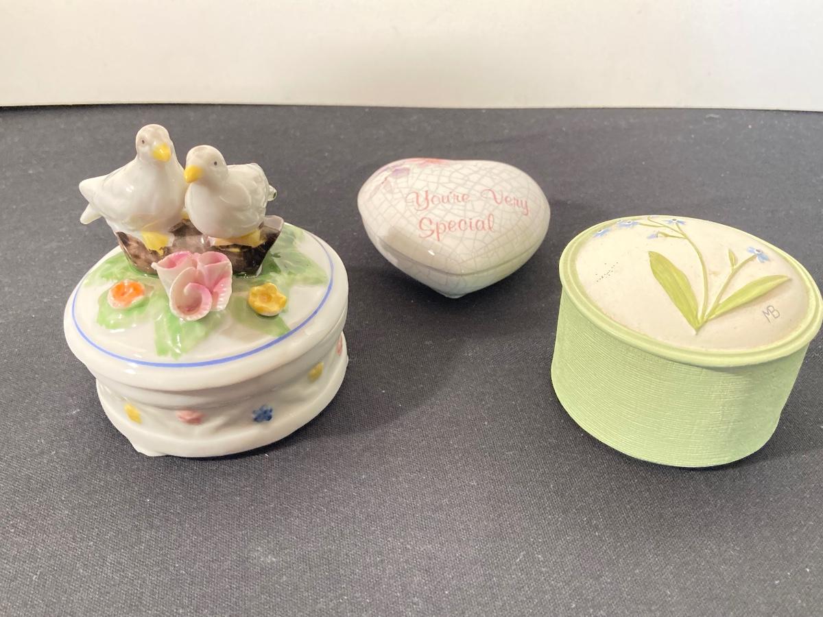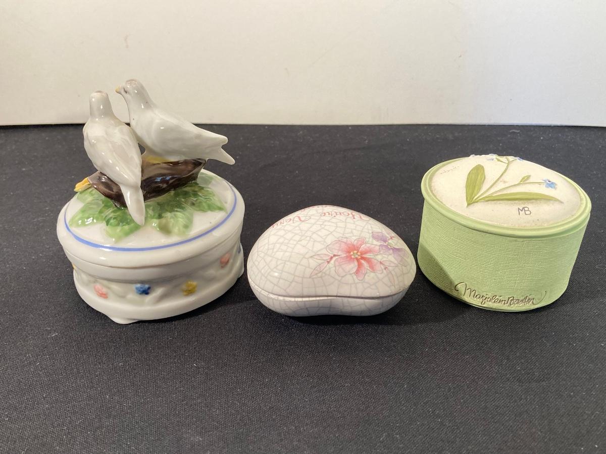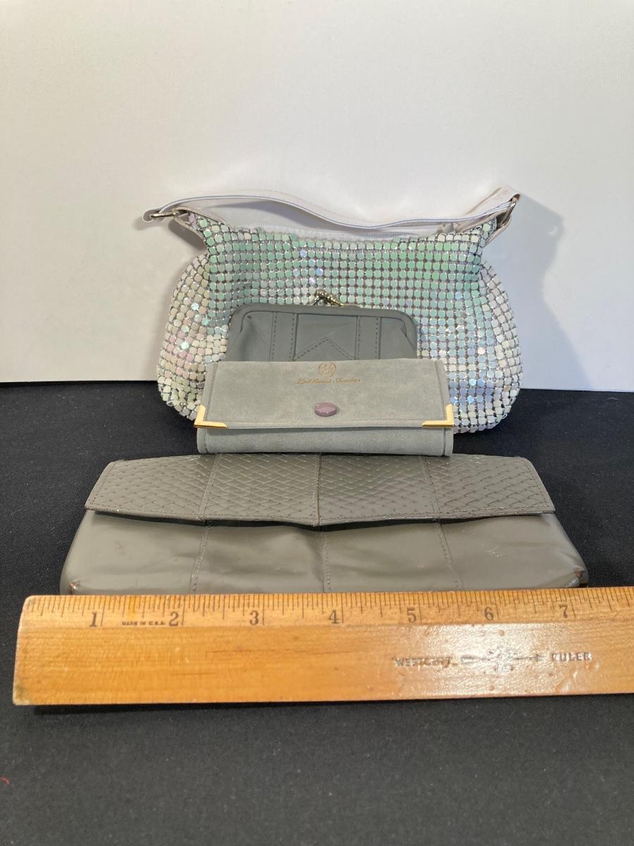 LOT 117J Hat Box, Purses, Victoria Secret Perfume, Grey Leather Wallet, Trinket Boxes and More