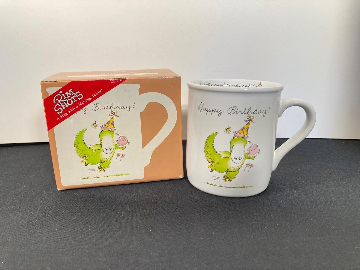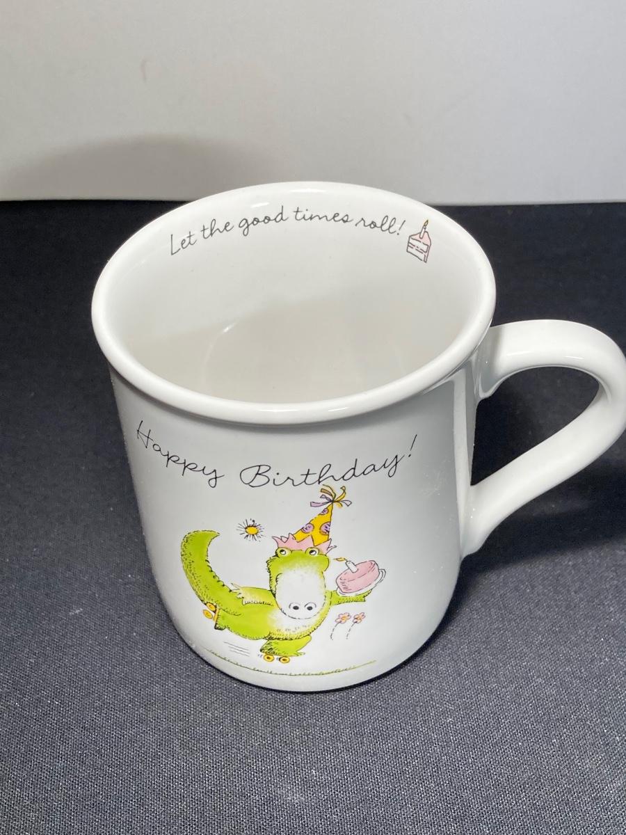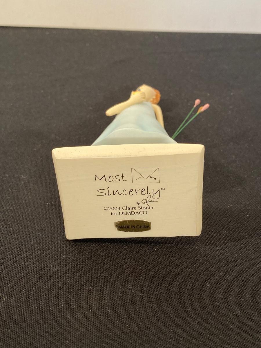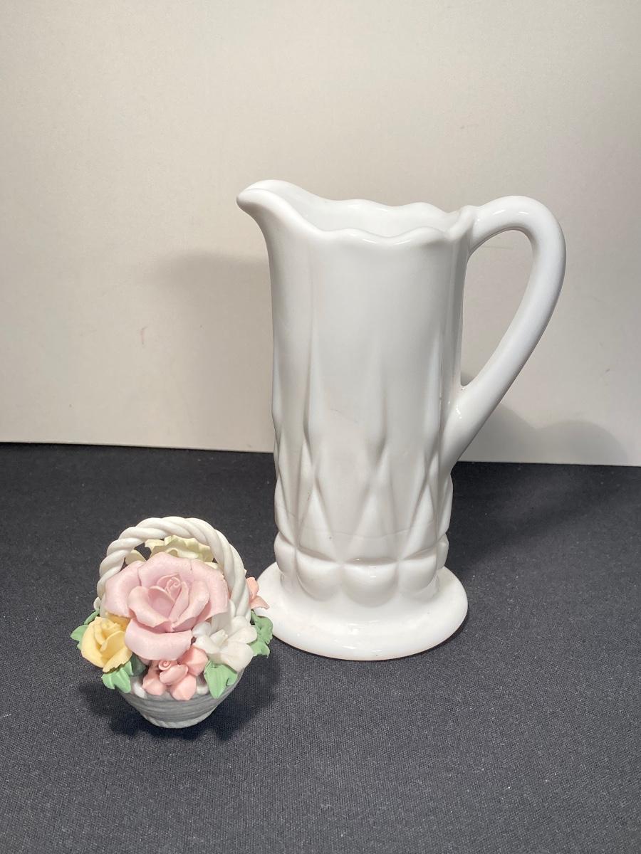 LOT 124J: Happy Birthday Collection - Lenox Clown Candle, Claire Stoner "Most Sincerely" Figure for Demdaco, Vintage Glass Clown Bank, Milk Glass Pitcher & More