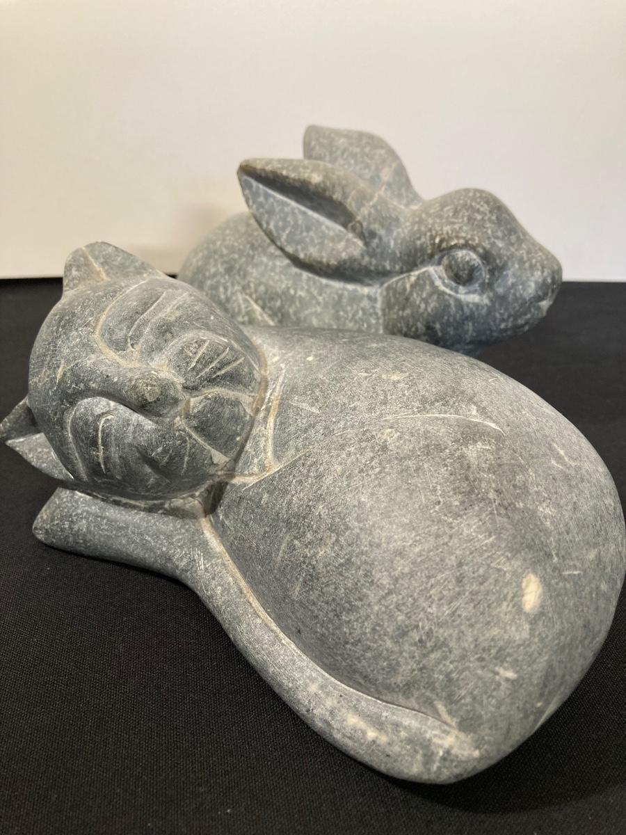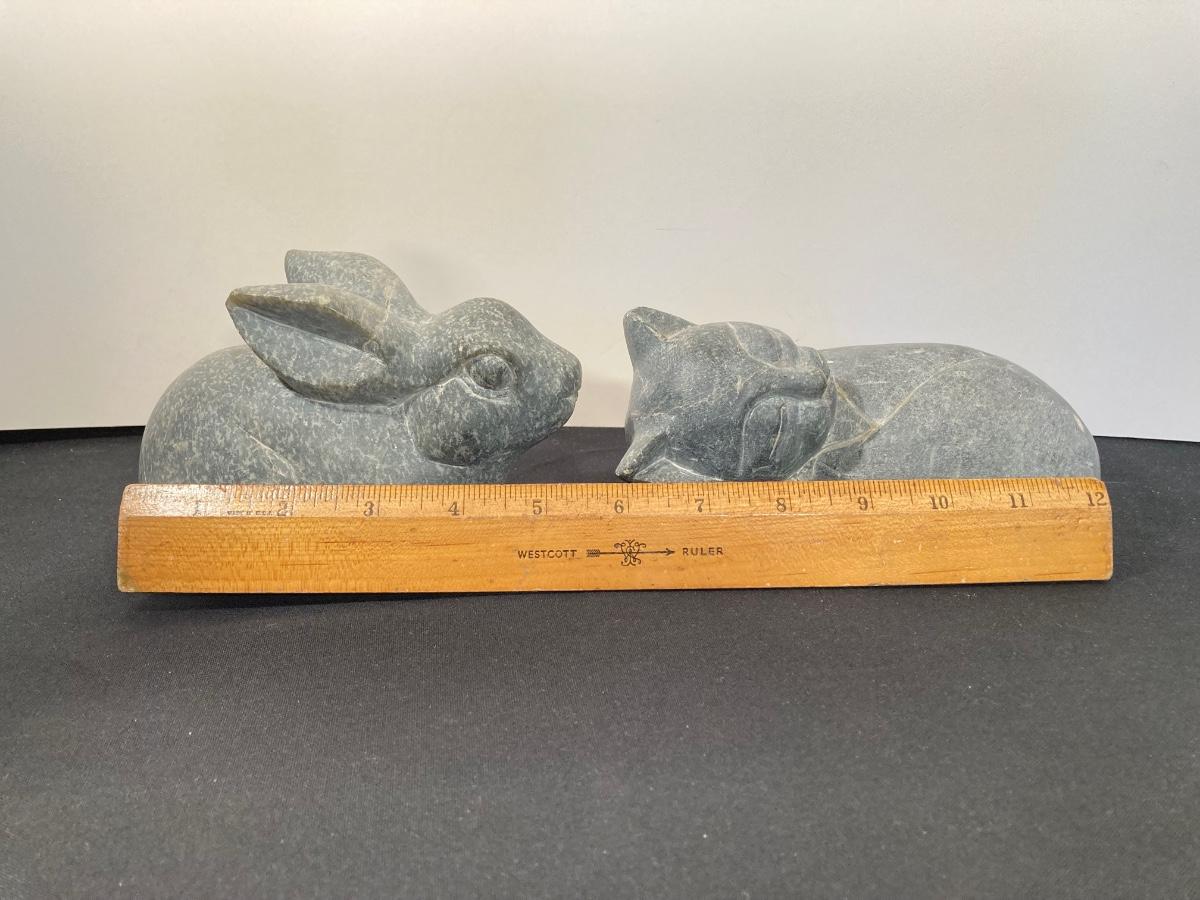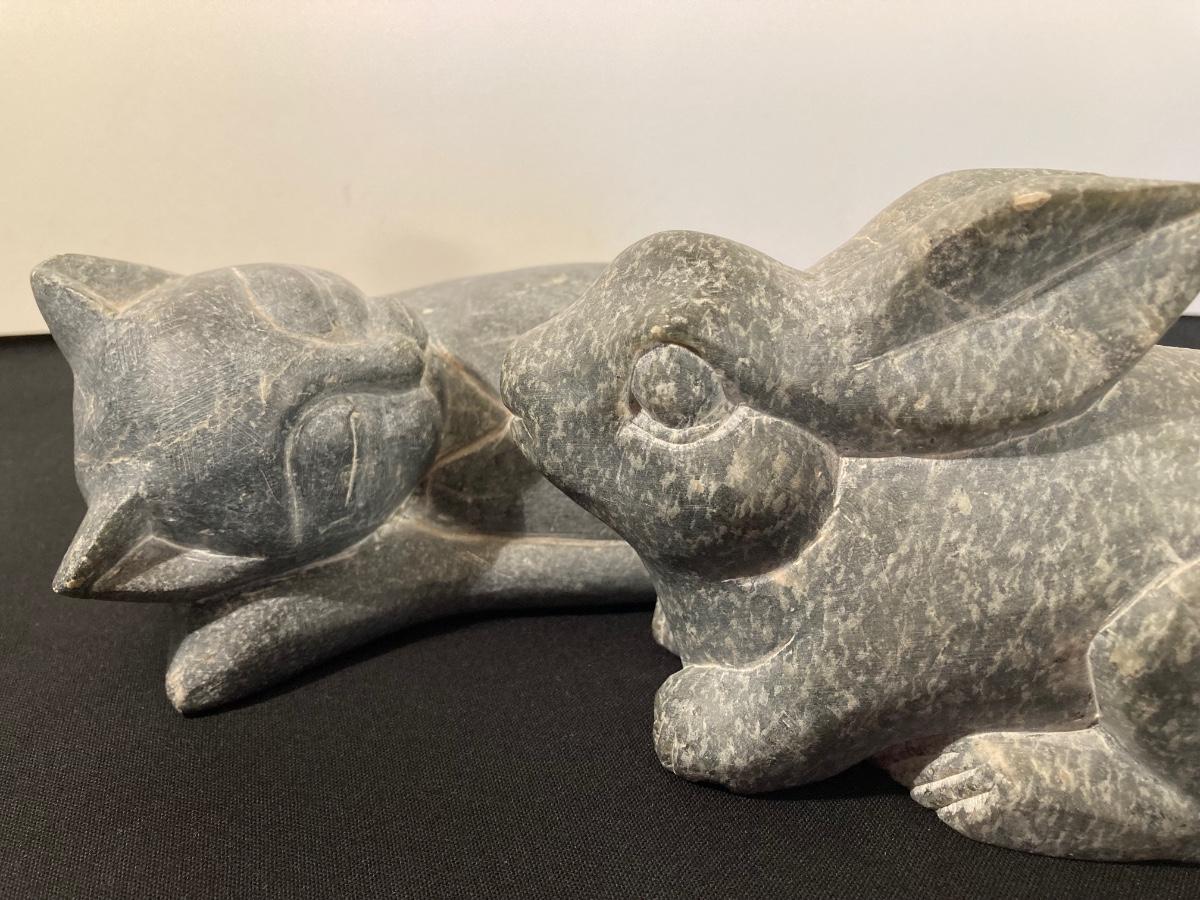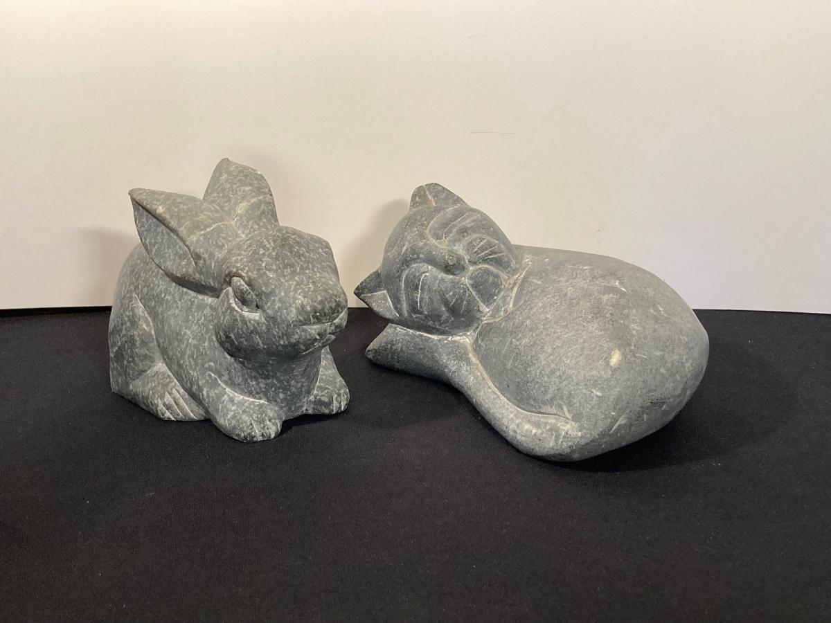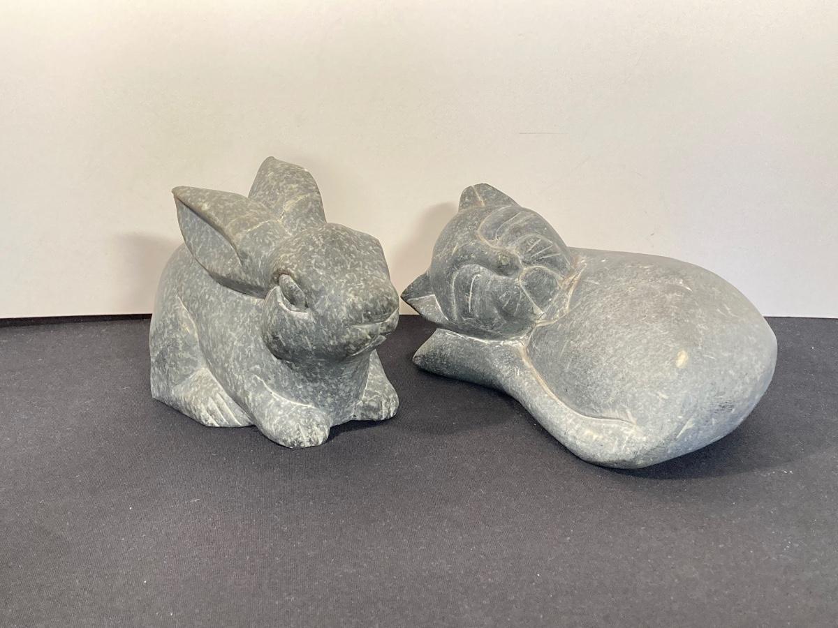 LOT 126J: Carved Stone Rabbit and Cat Figurines