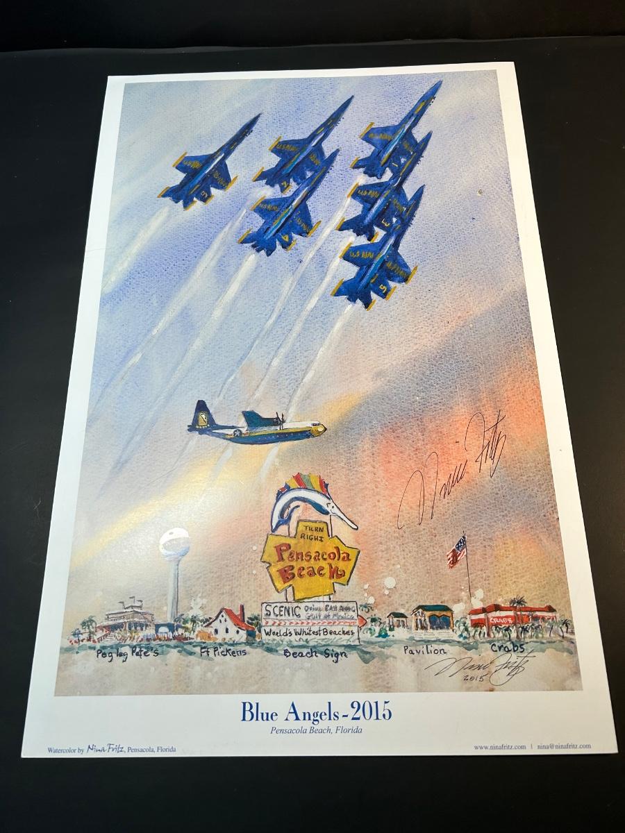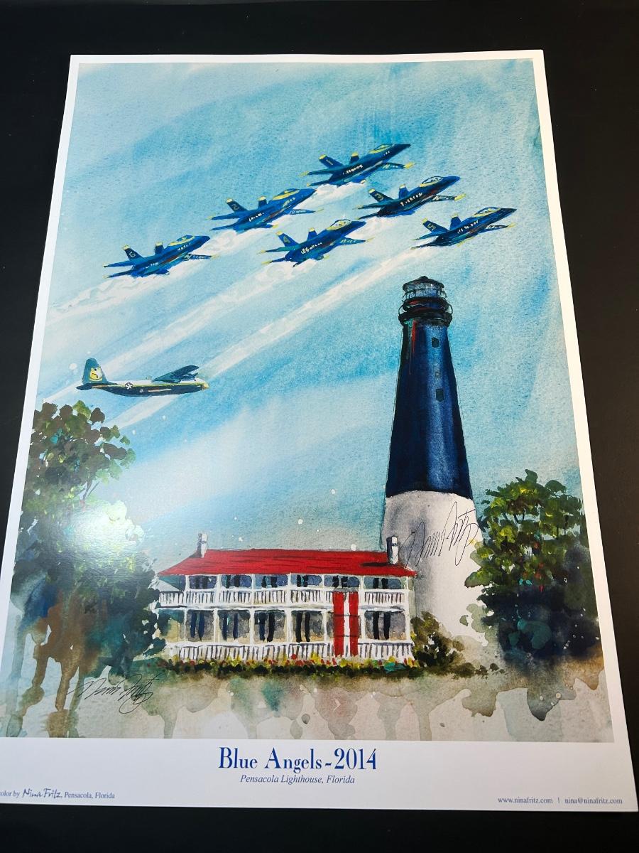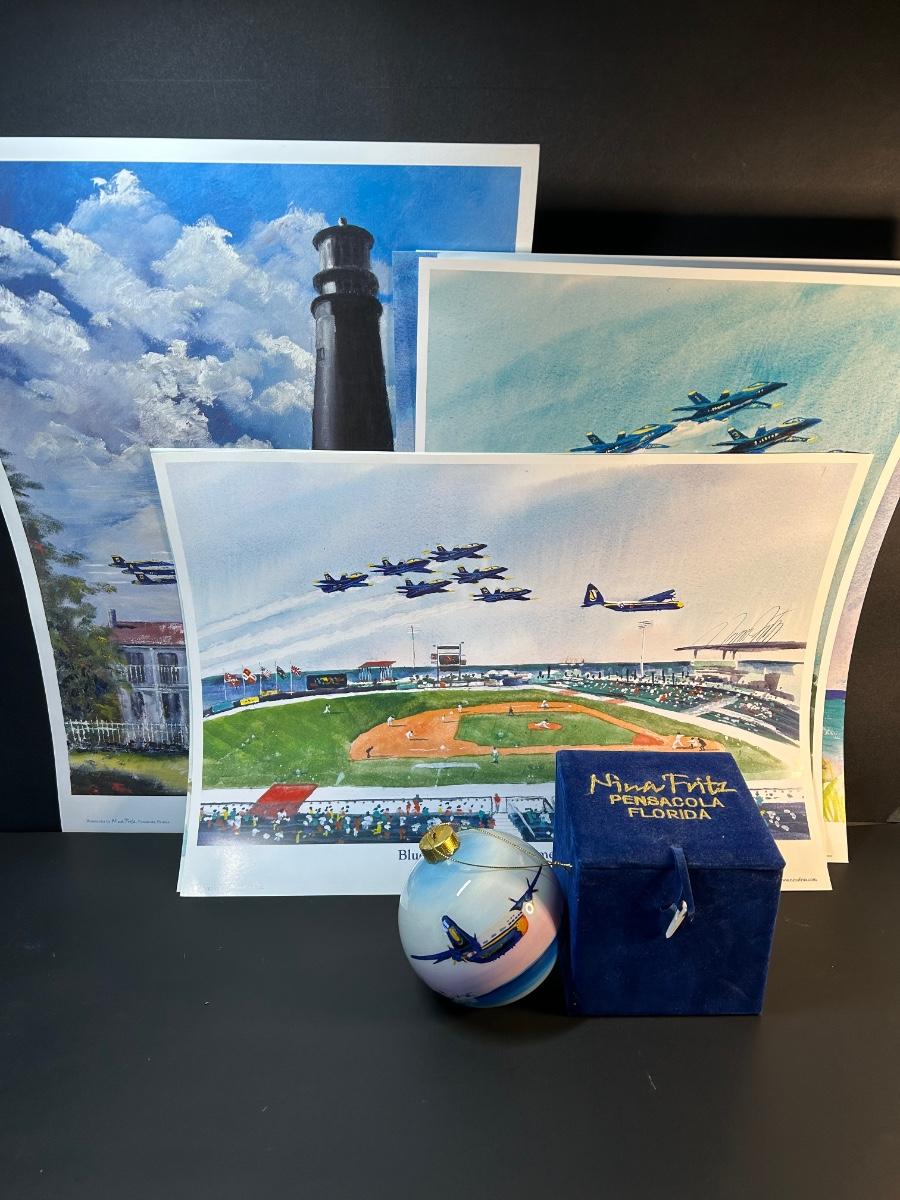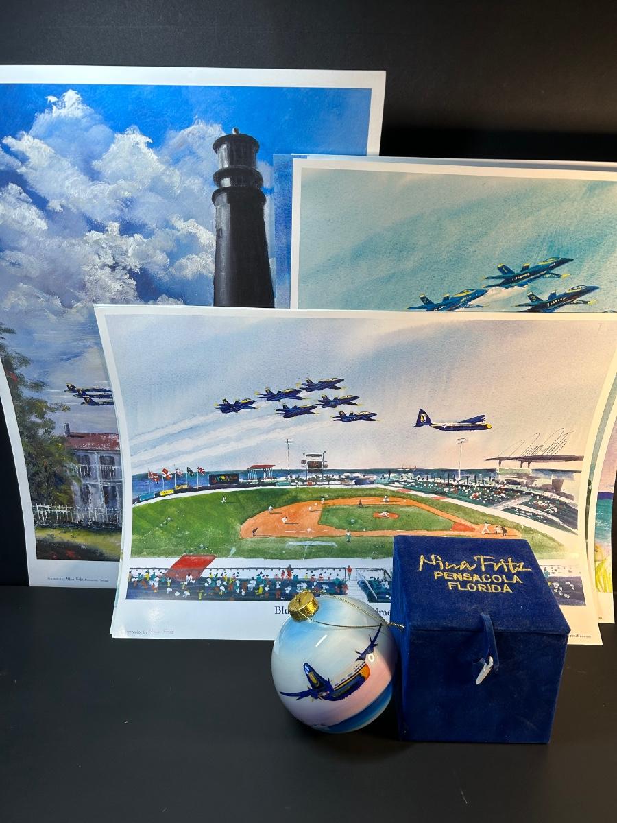 LOT 148C: Nina Fritz Blue Angel/ Pensacola Watercolors and Christmas Ornament