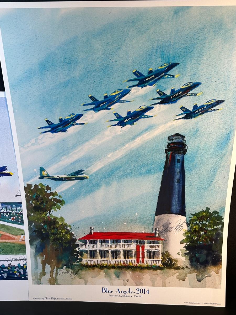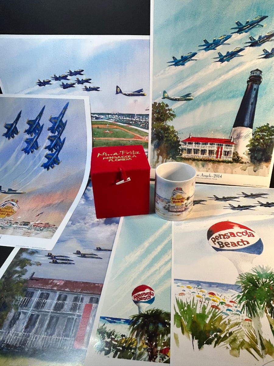 LOT 150C: Nina Fritz Blue Angel/Pensacola Watercolors and a Mug