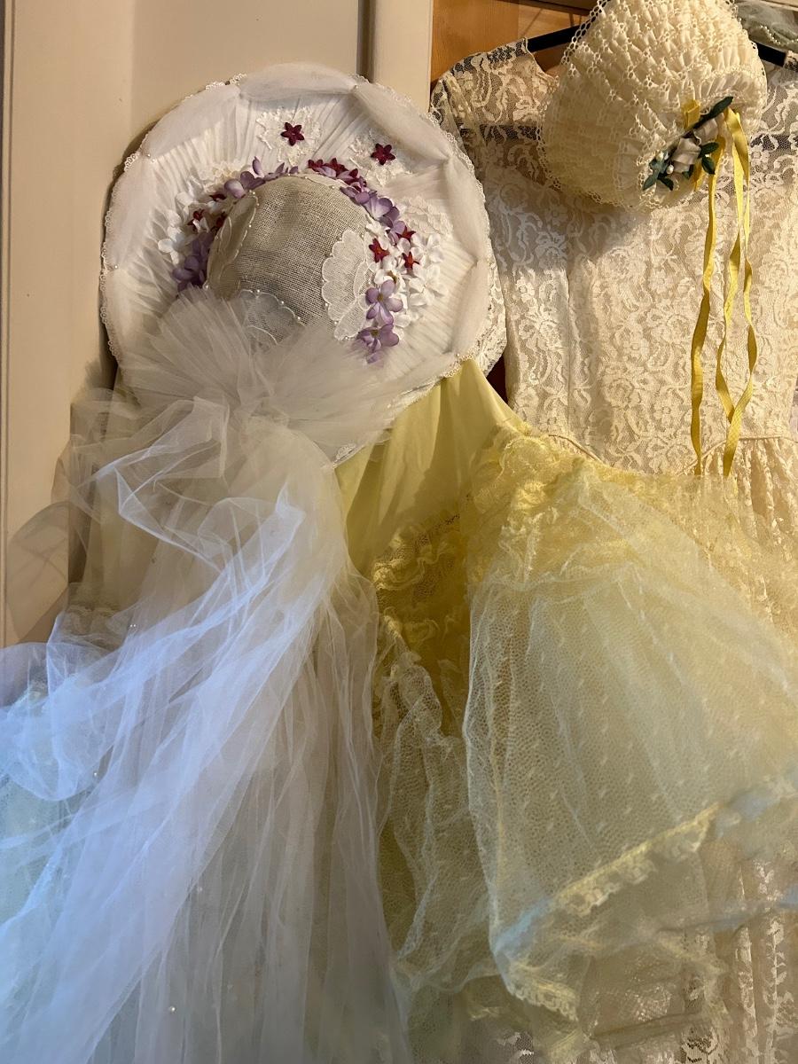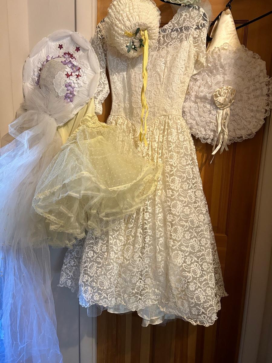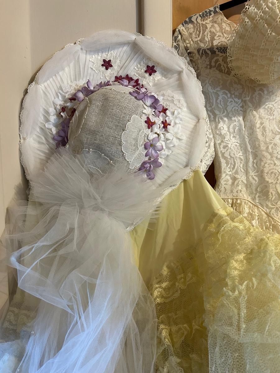 LOT 152C: Vintage Lace and Tull Collection with a Hats, Petticoat, Dress and Wigs