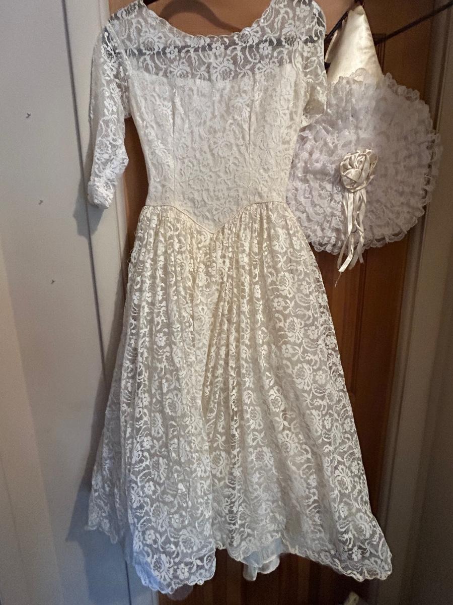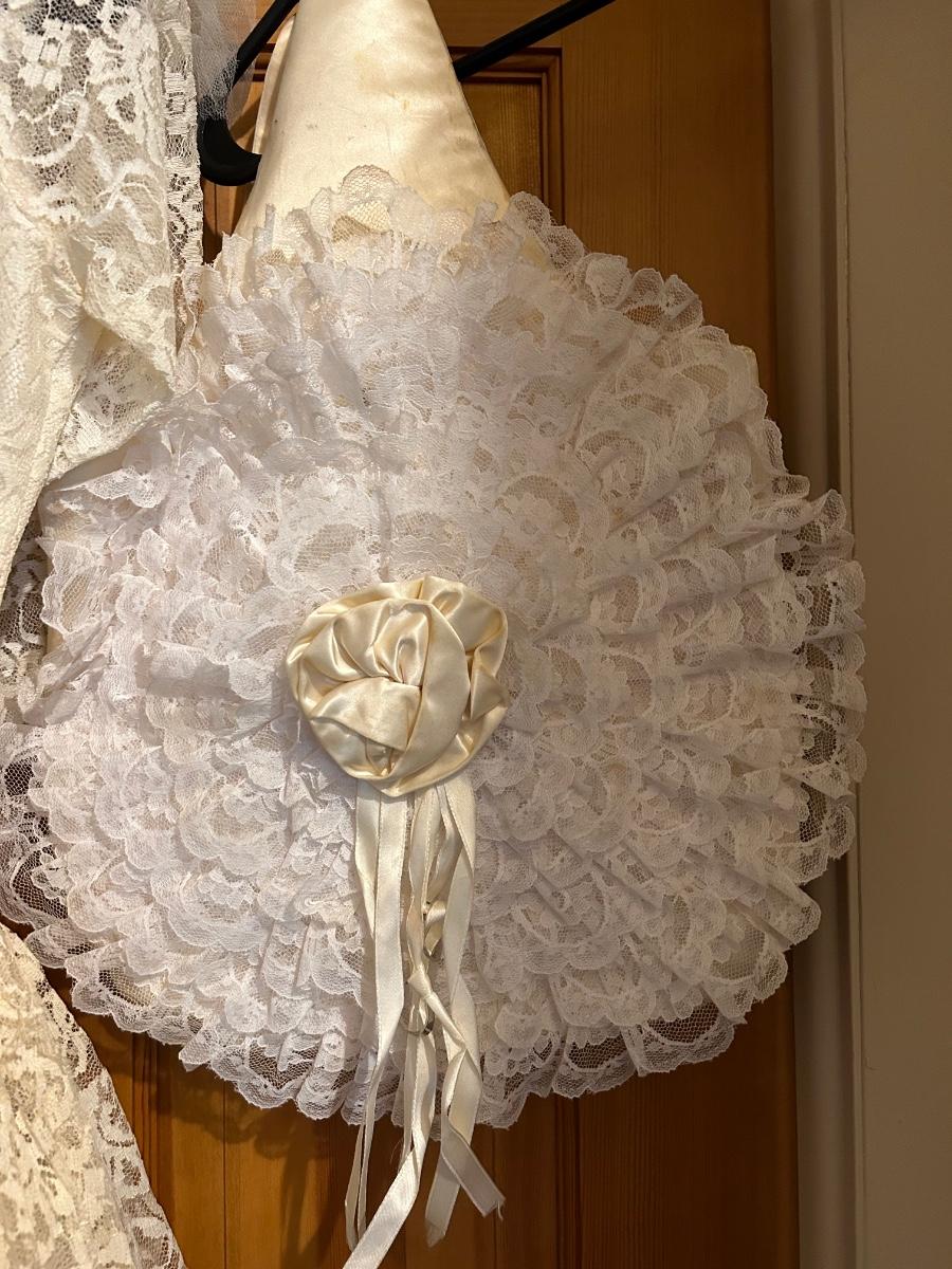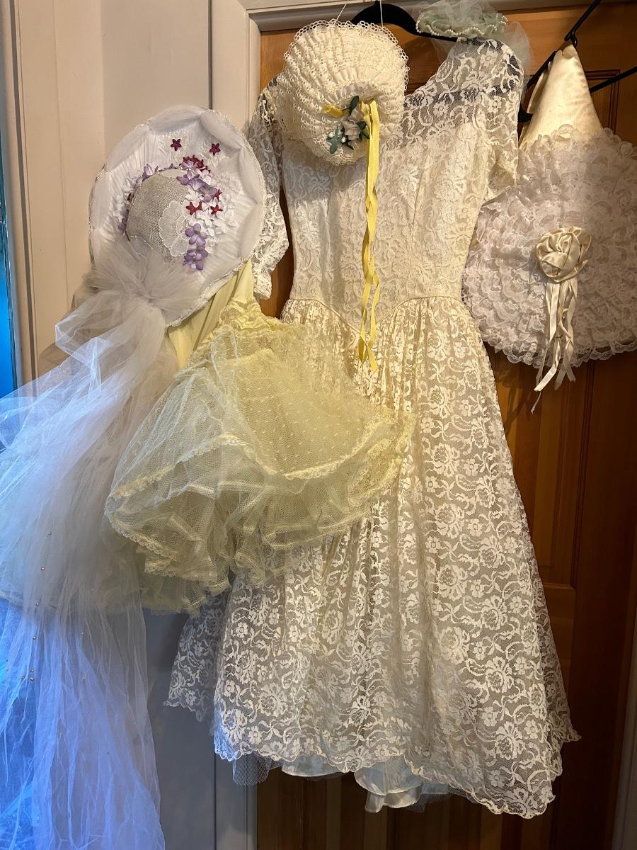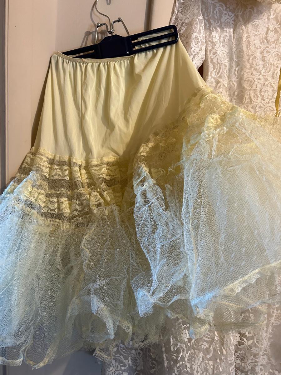 LOT 152C: Vintage Lace and Tull Collection with a Hats, Petticoat, Dress and Wigs