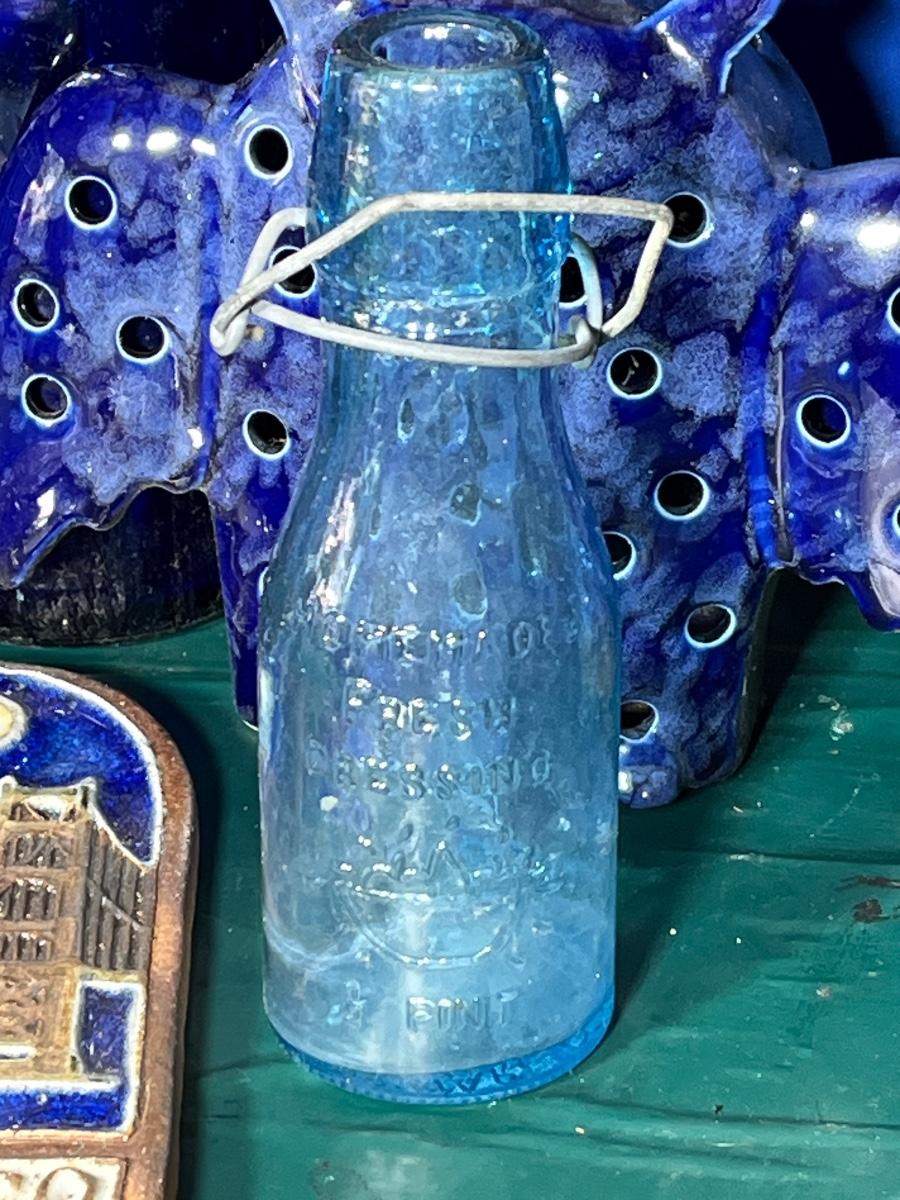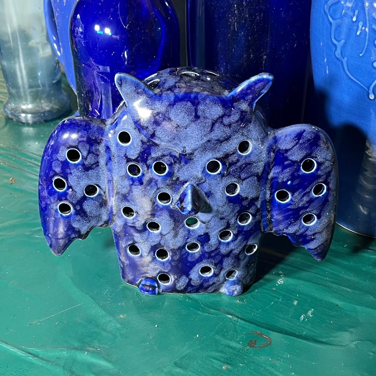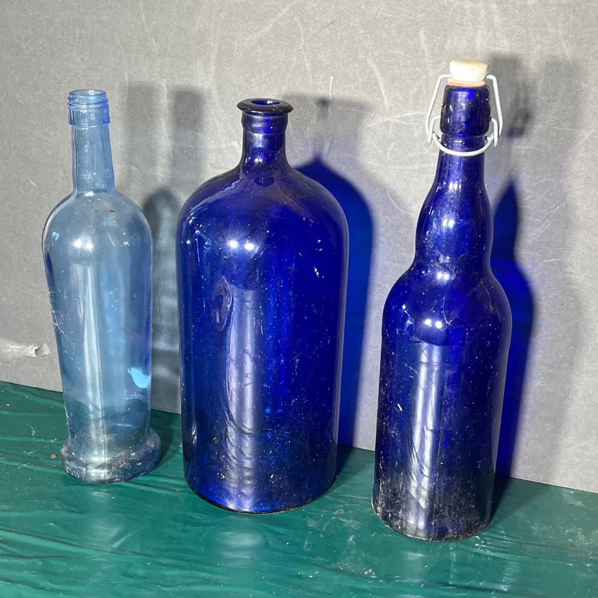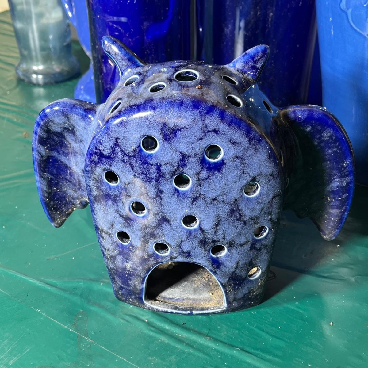LOT 1G: Blue Glass and Ceramic Home & Garden Decor - Vases, Bottles, Lanterns