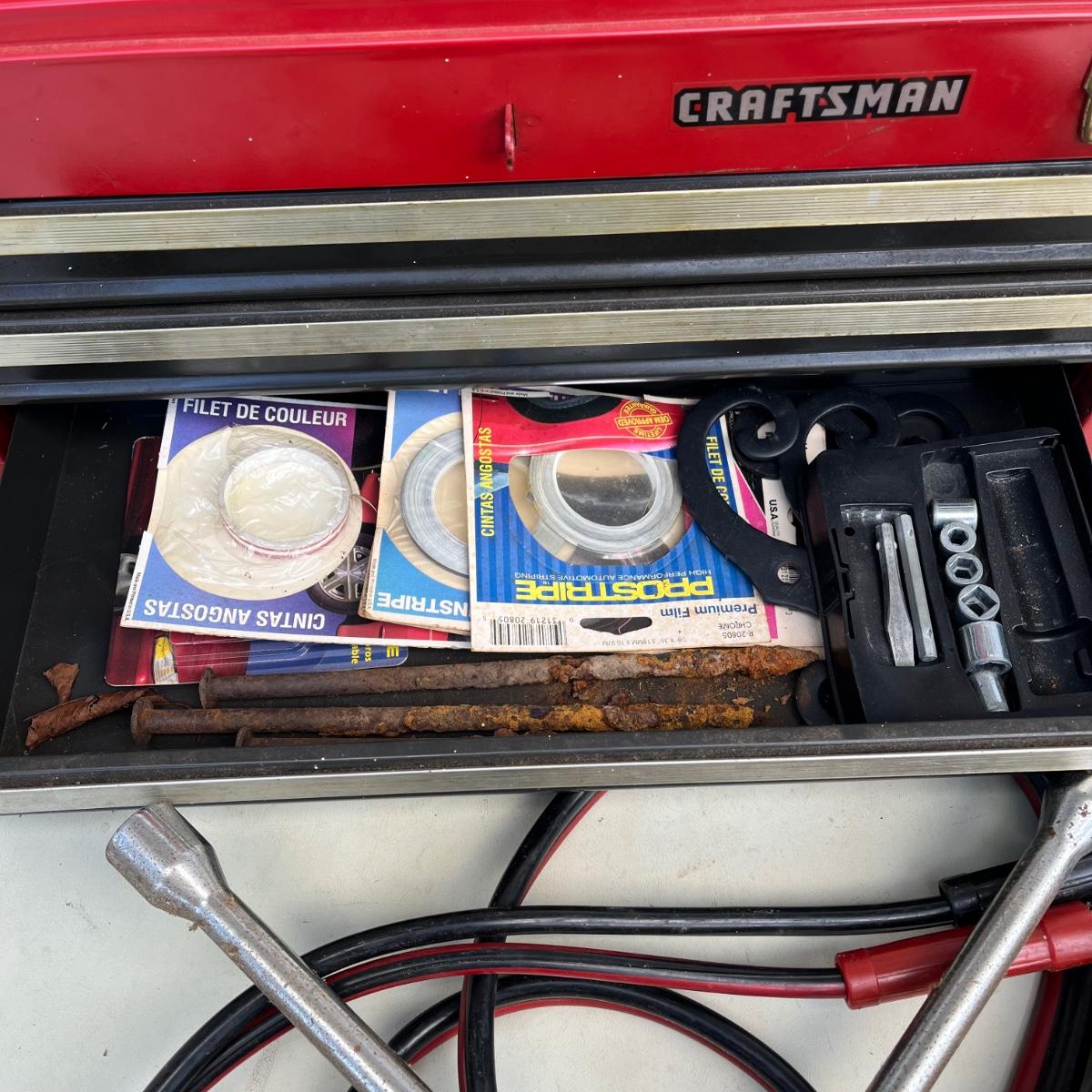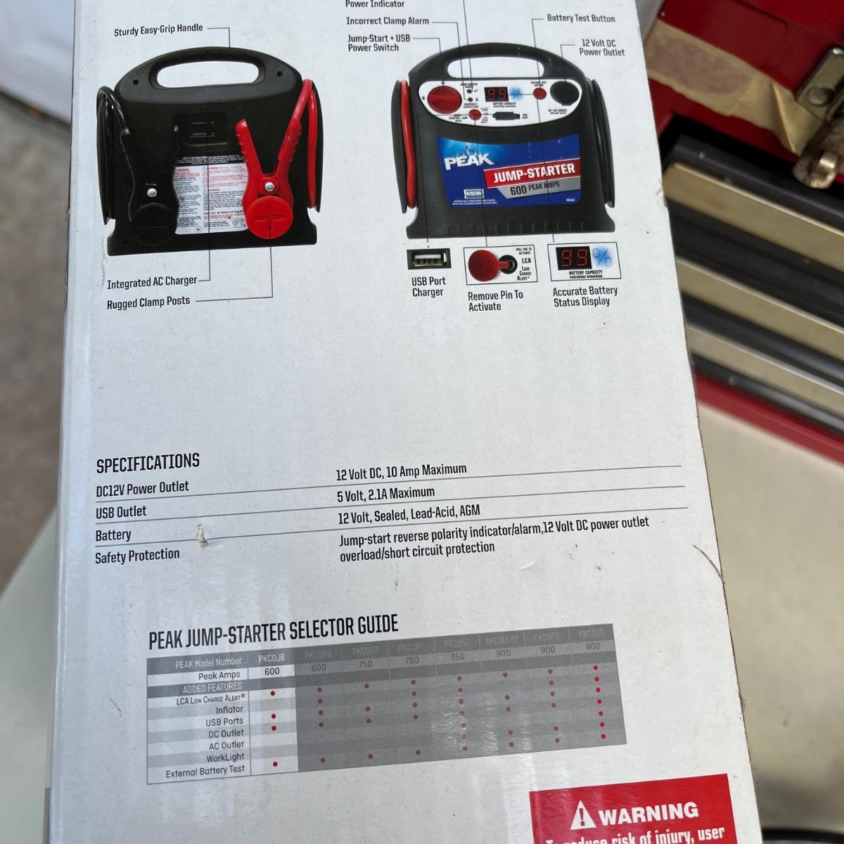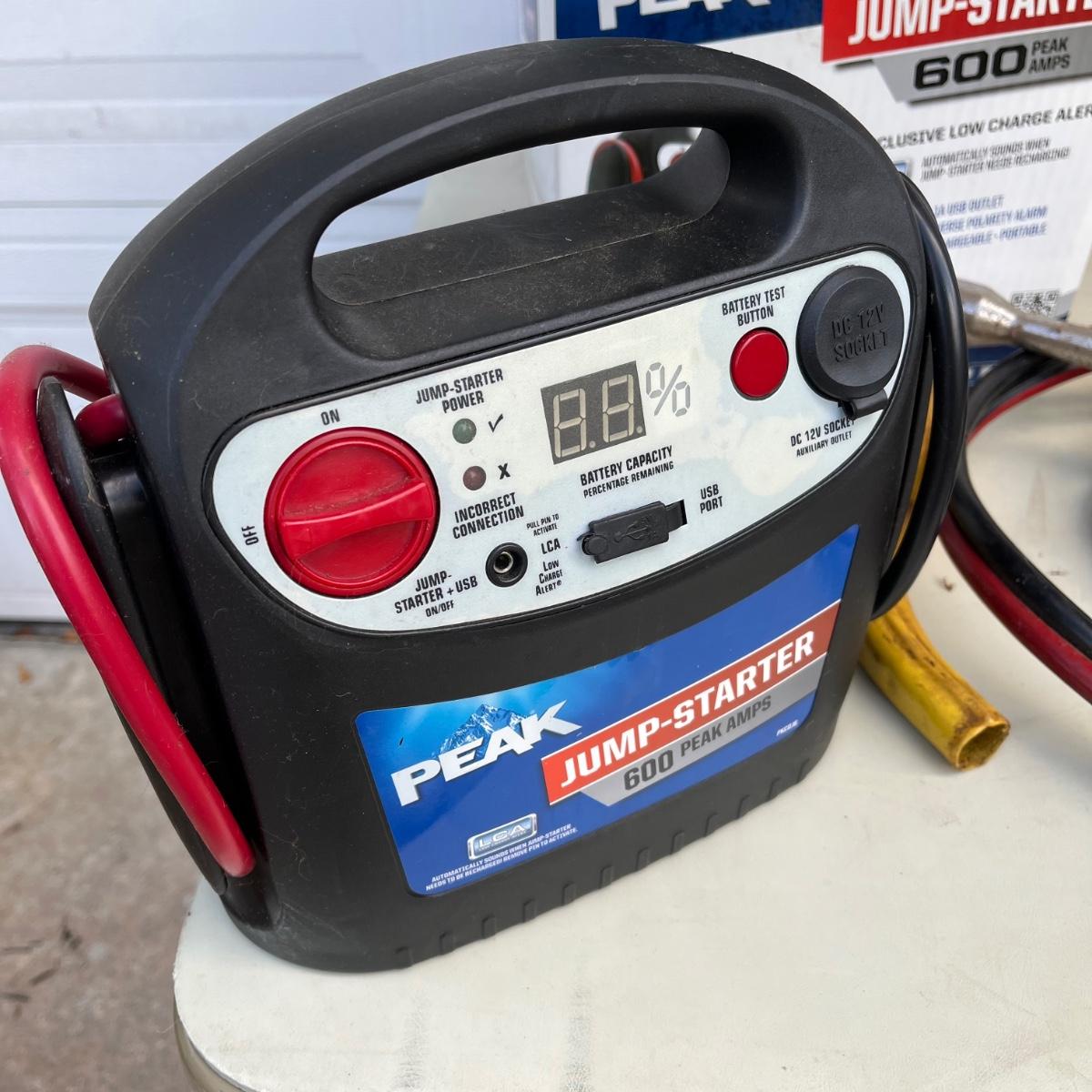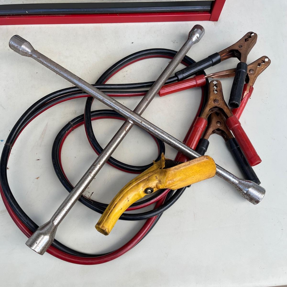 LOT 8G: Automotive Tools - Jumpstarter, Jumper Cables 4-Way Lug Wrench + Full Toolbox