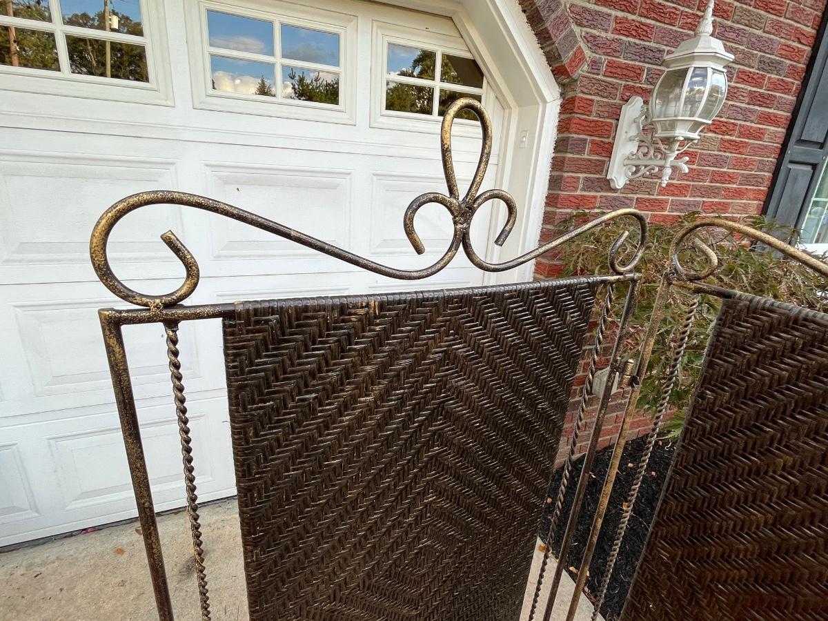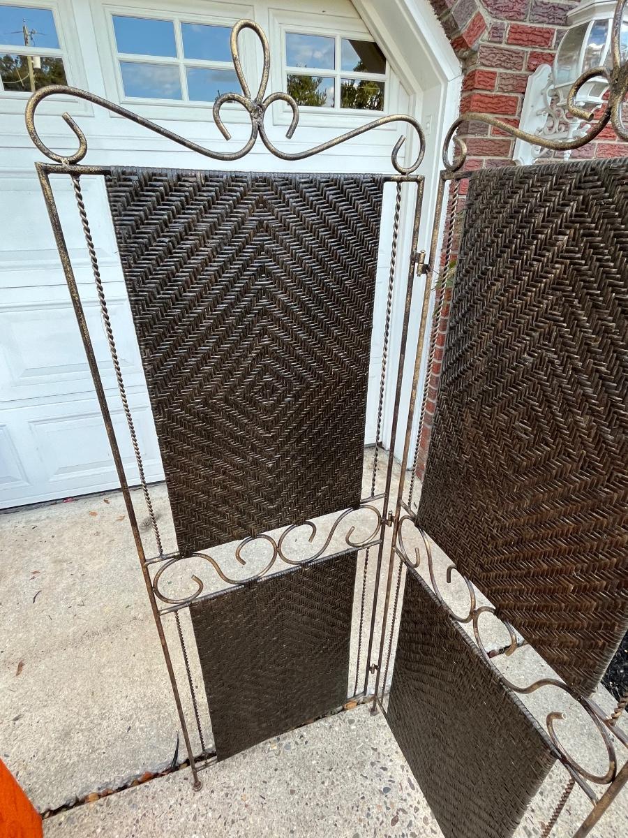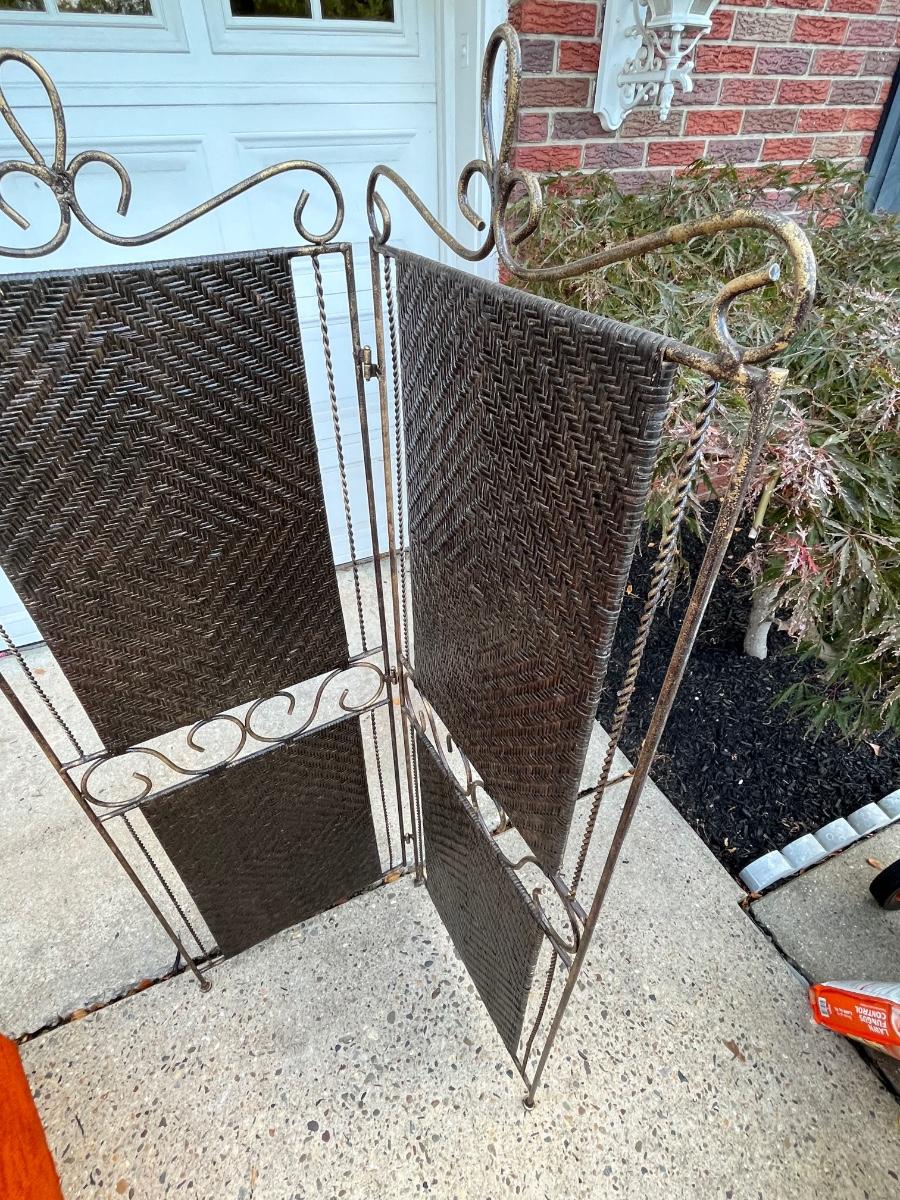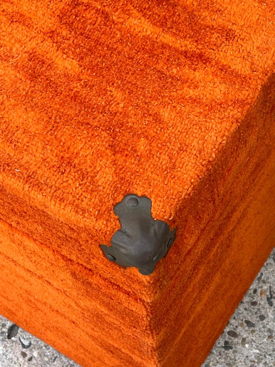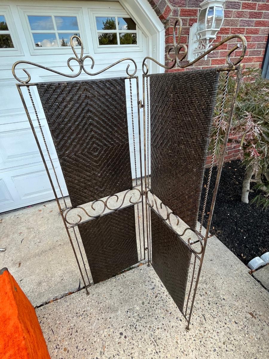 LOT 11G: Vintage Orange Upholstered Trunk + Two-Panel Decorative Metal Screen