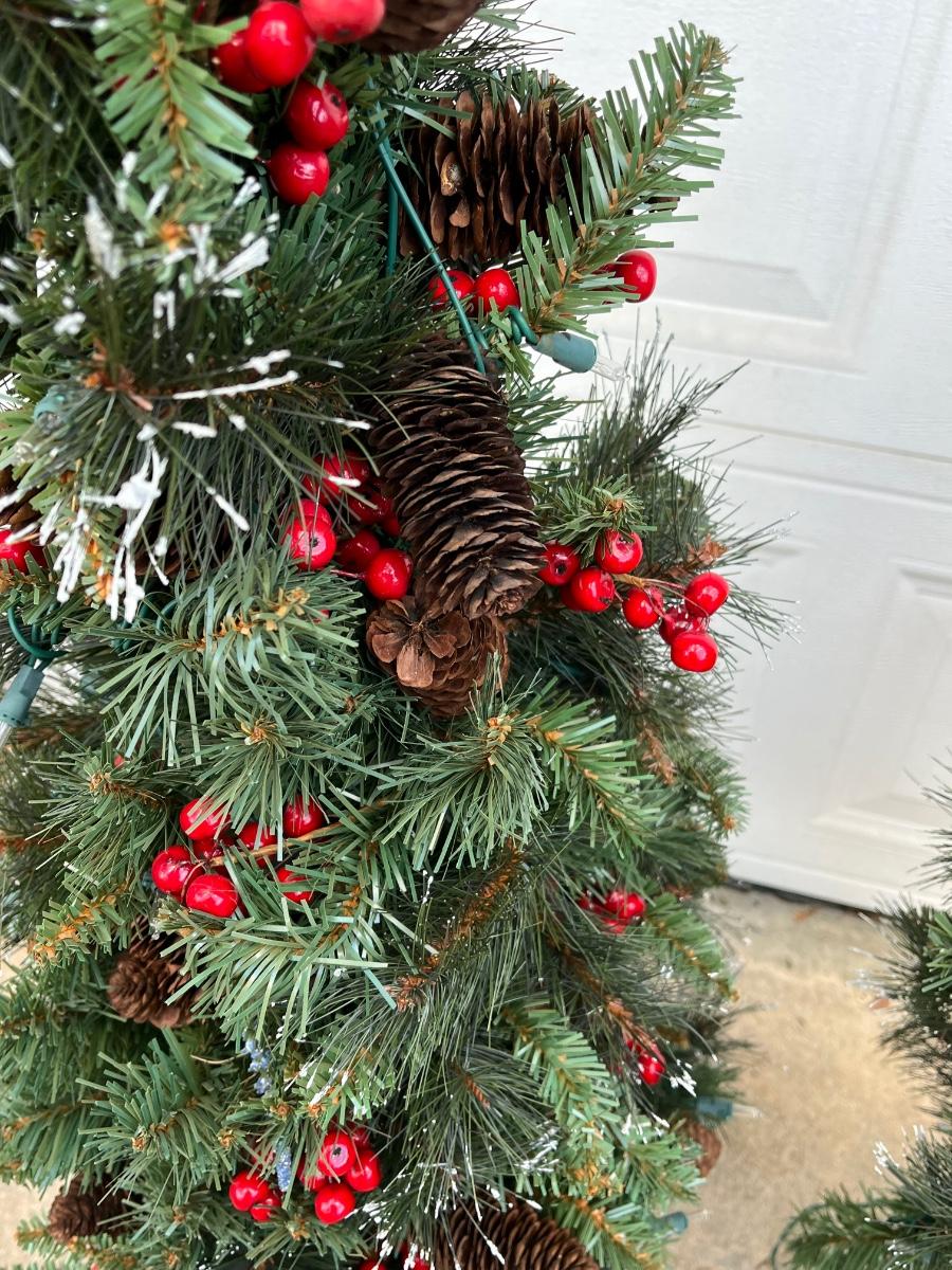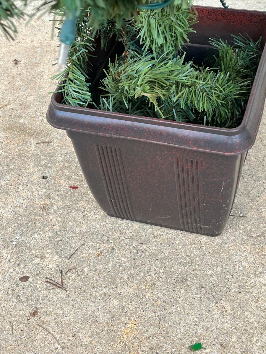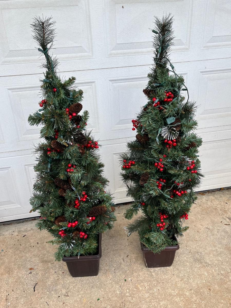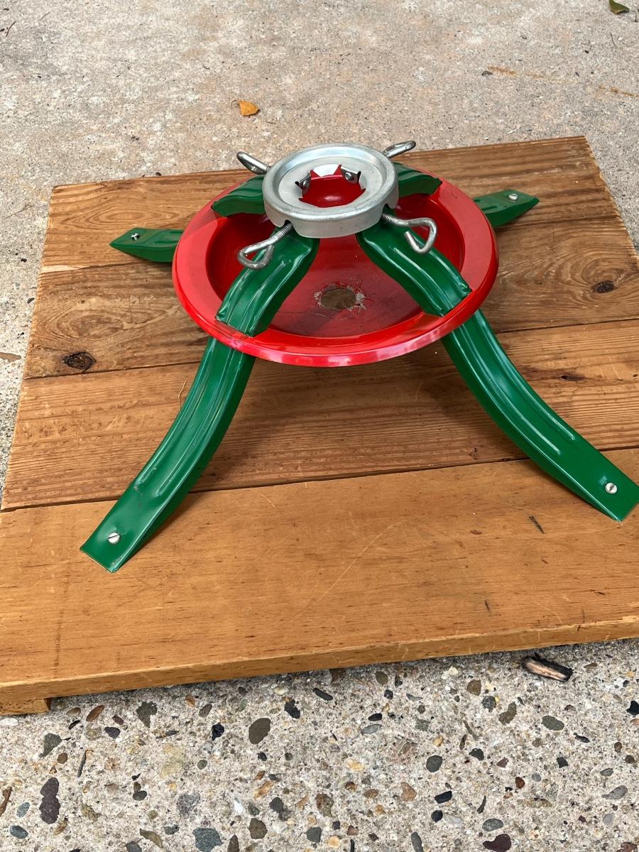 LOT 12G: Christmas Decorations - Lighted Artificial Xmas Trees + Tree Stand Mounted on Wood
