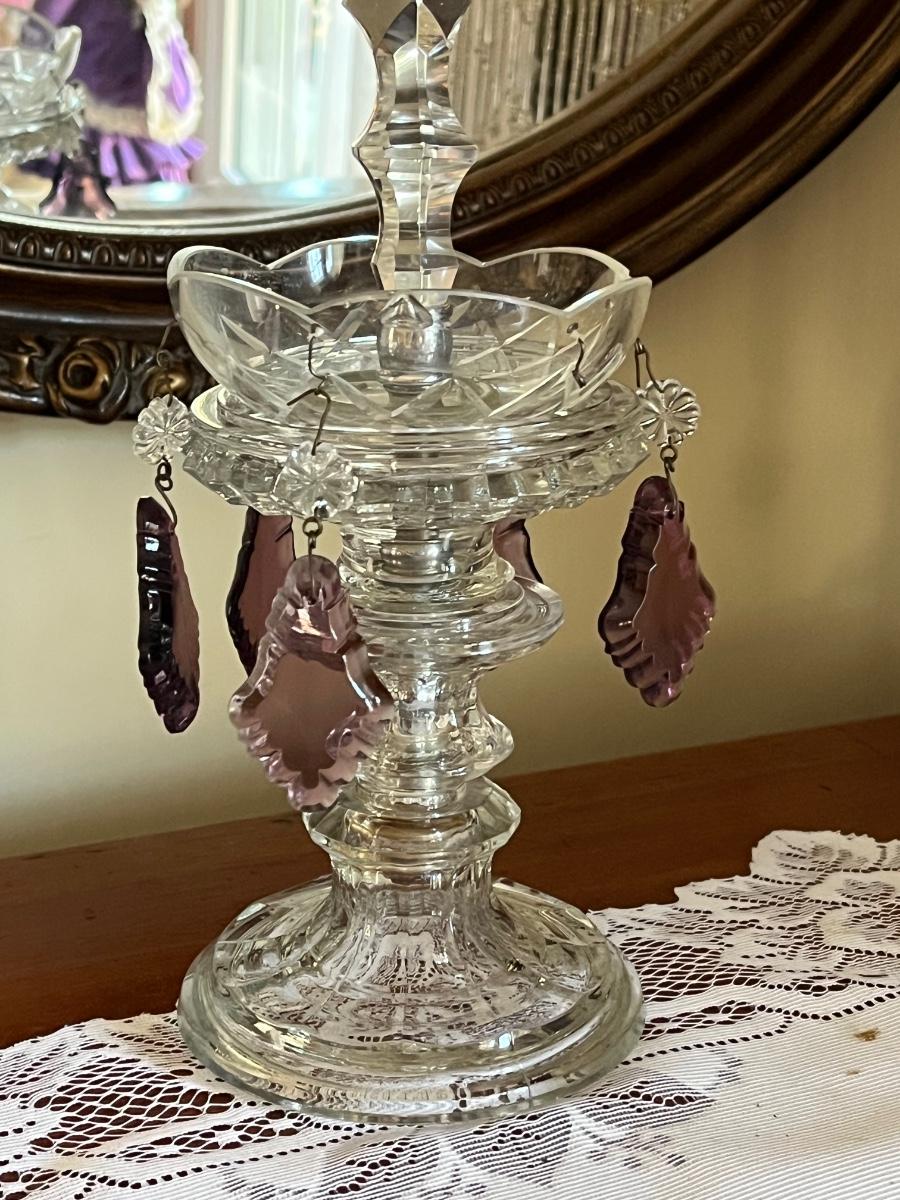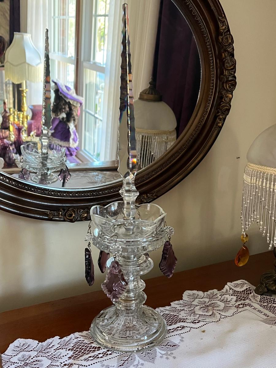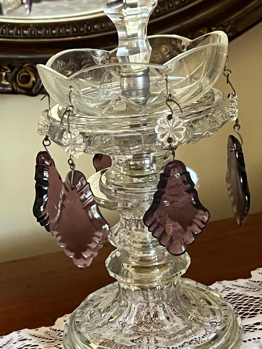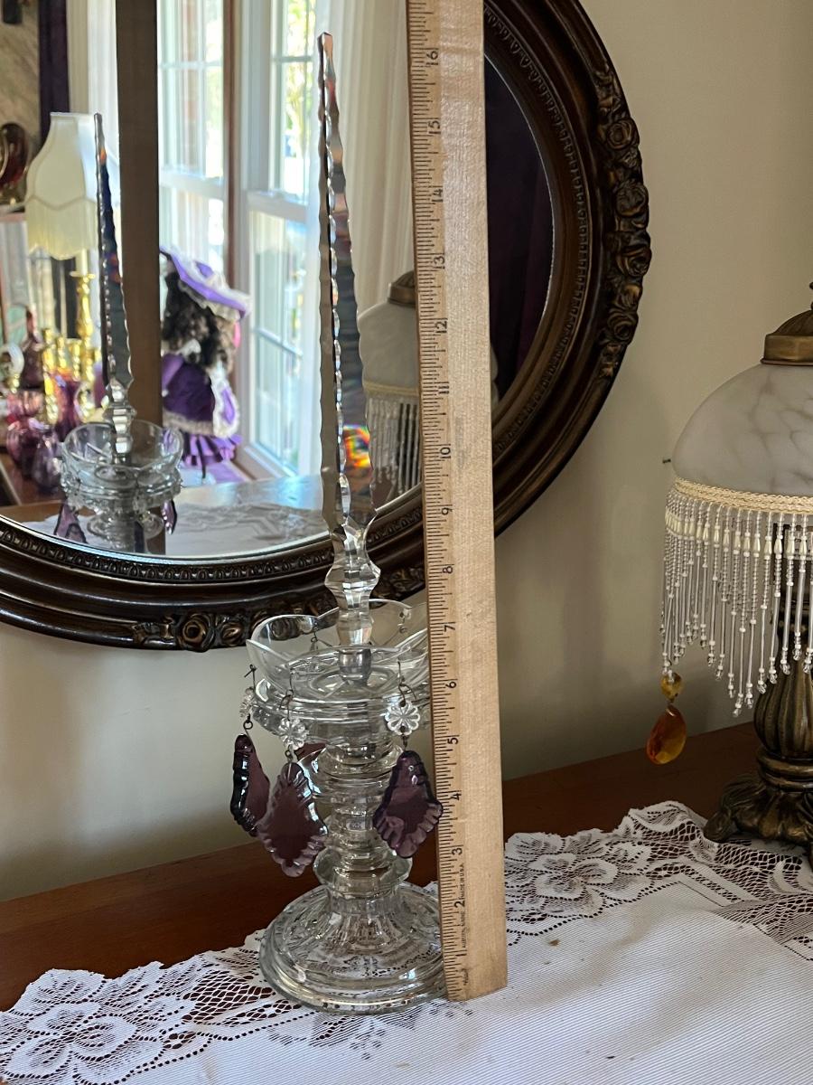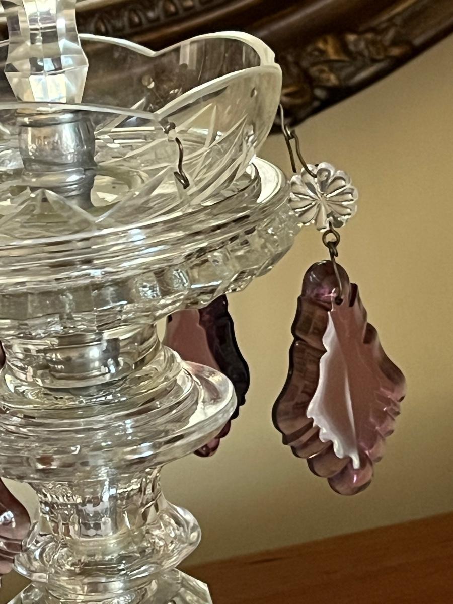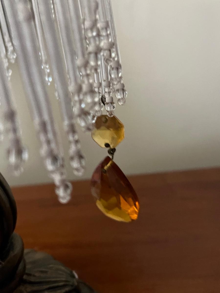 One lamp missing top finial, one has trim coming loose on shade