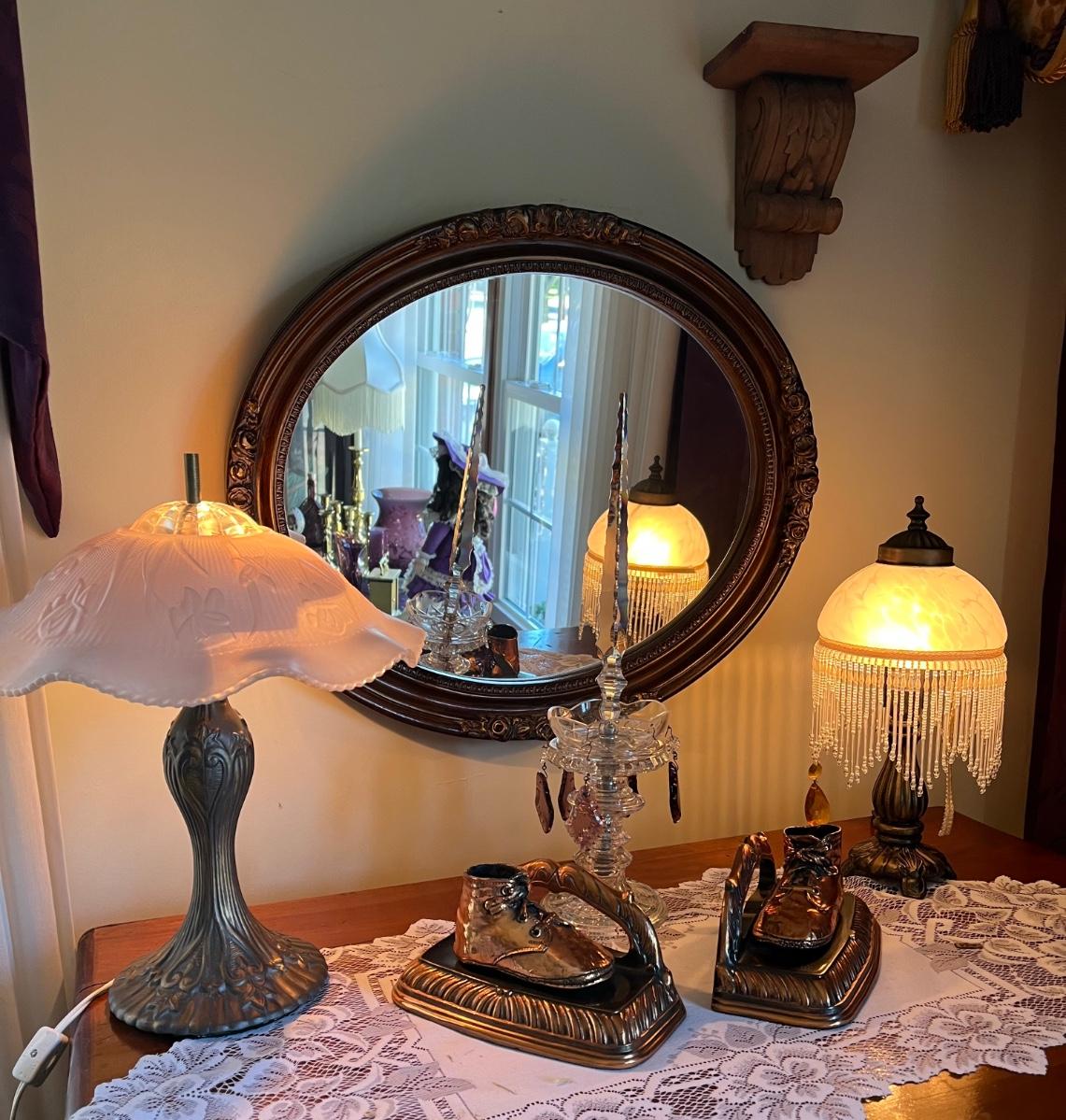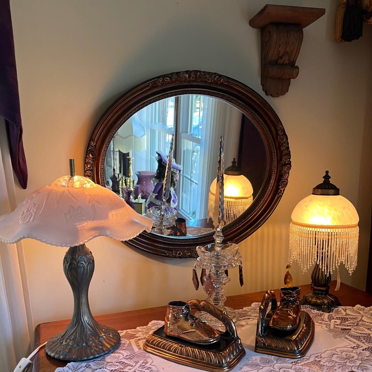 LOT 19L: Vintage Home Decor Items - Lamps, Mirror, Bookends