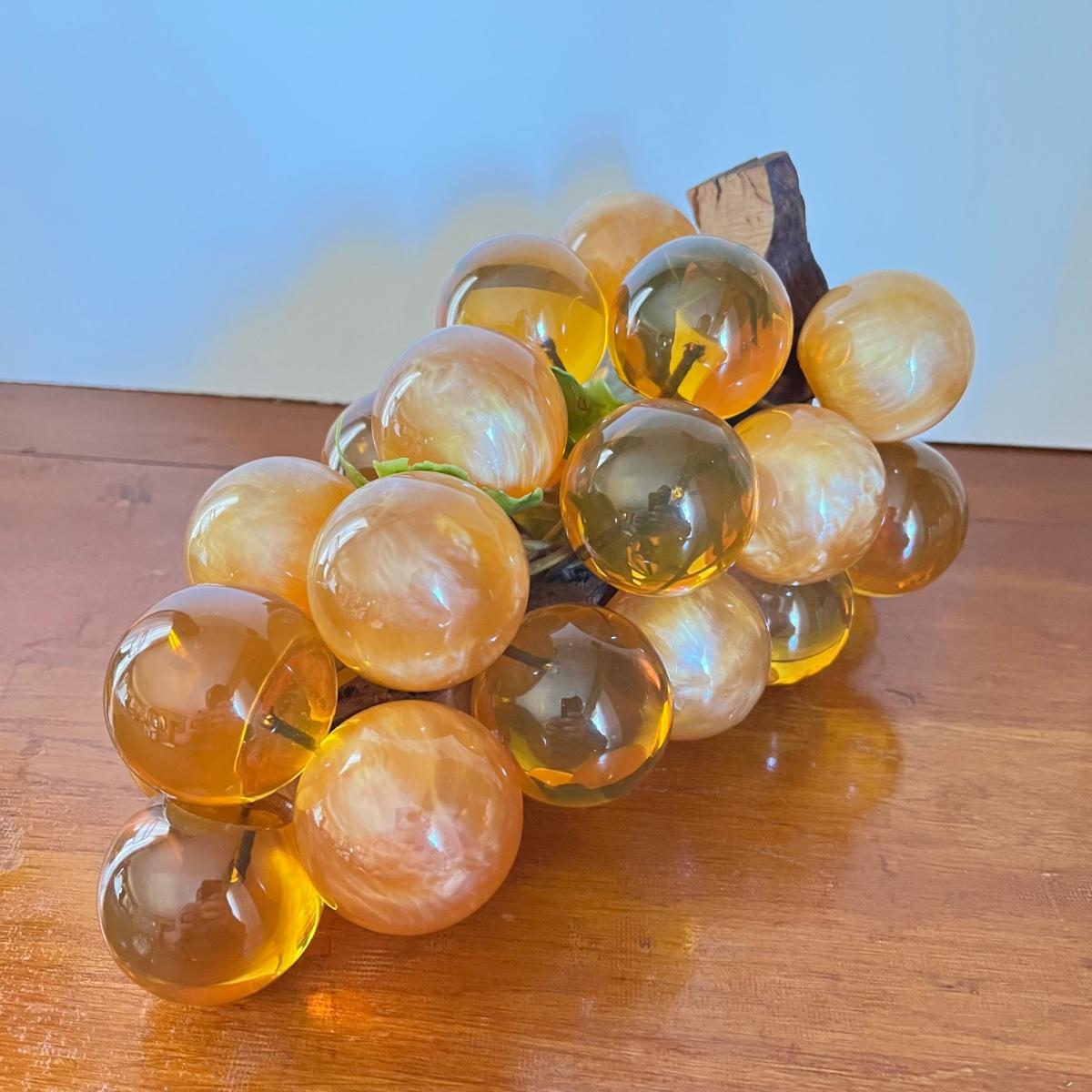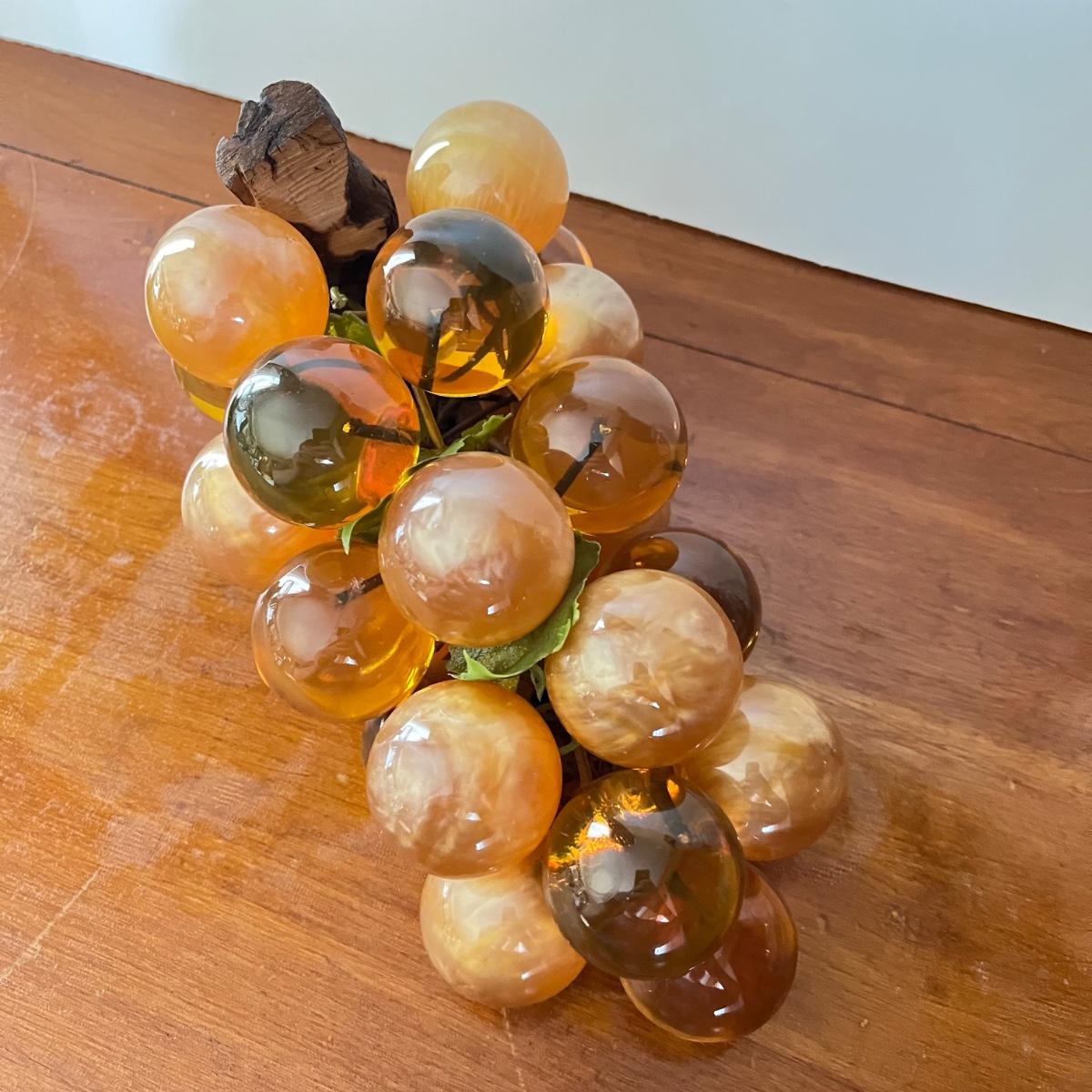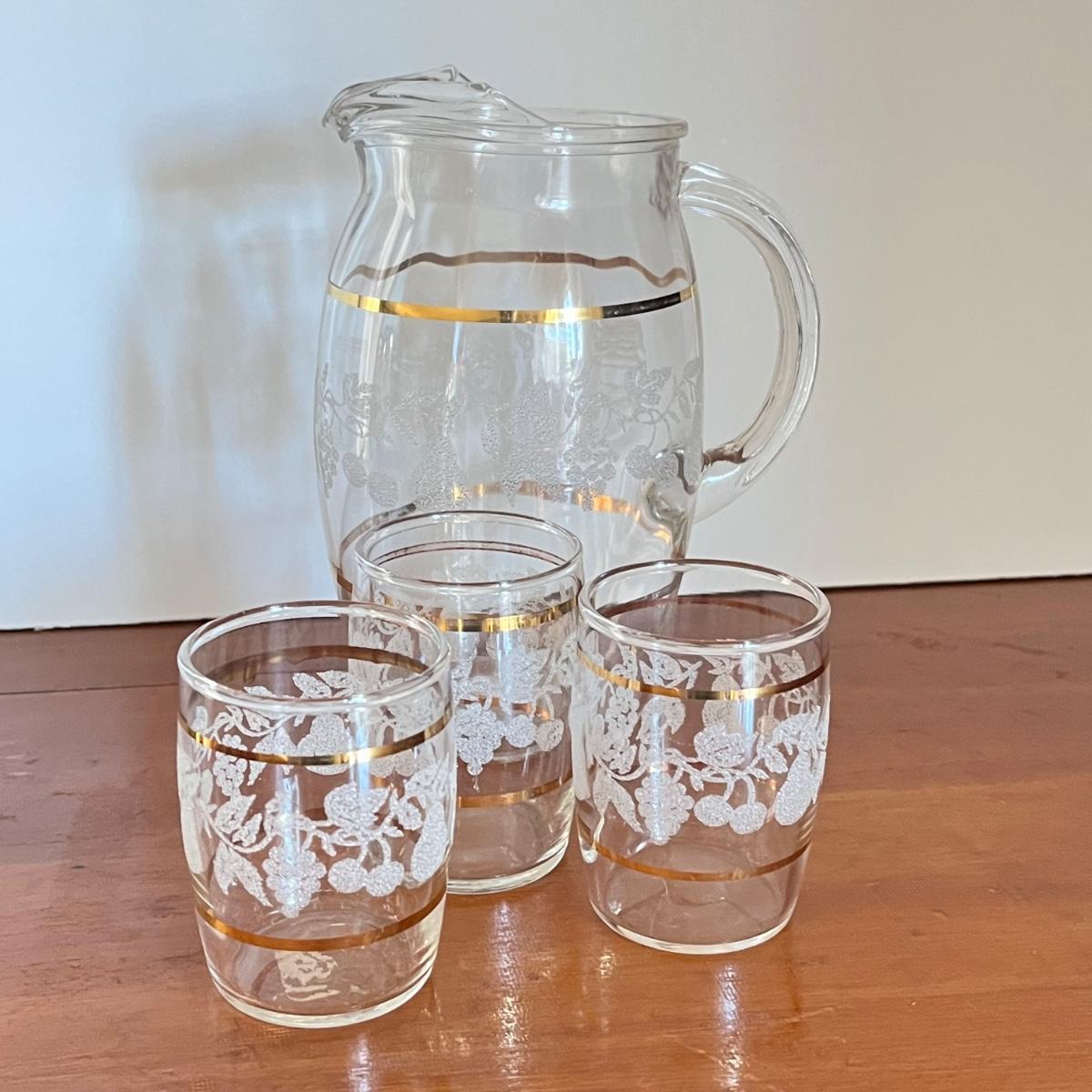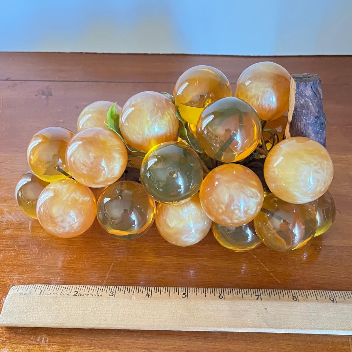 LOT 20L: Mid-Century Modern Home Decor - Acrylic Grape Cluster on Driftwood, Music Box Wine Glass, Pitcher & Glass Set MCM