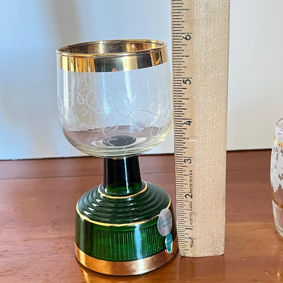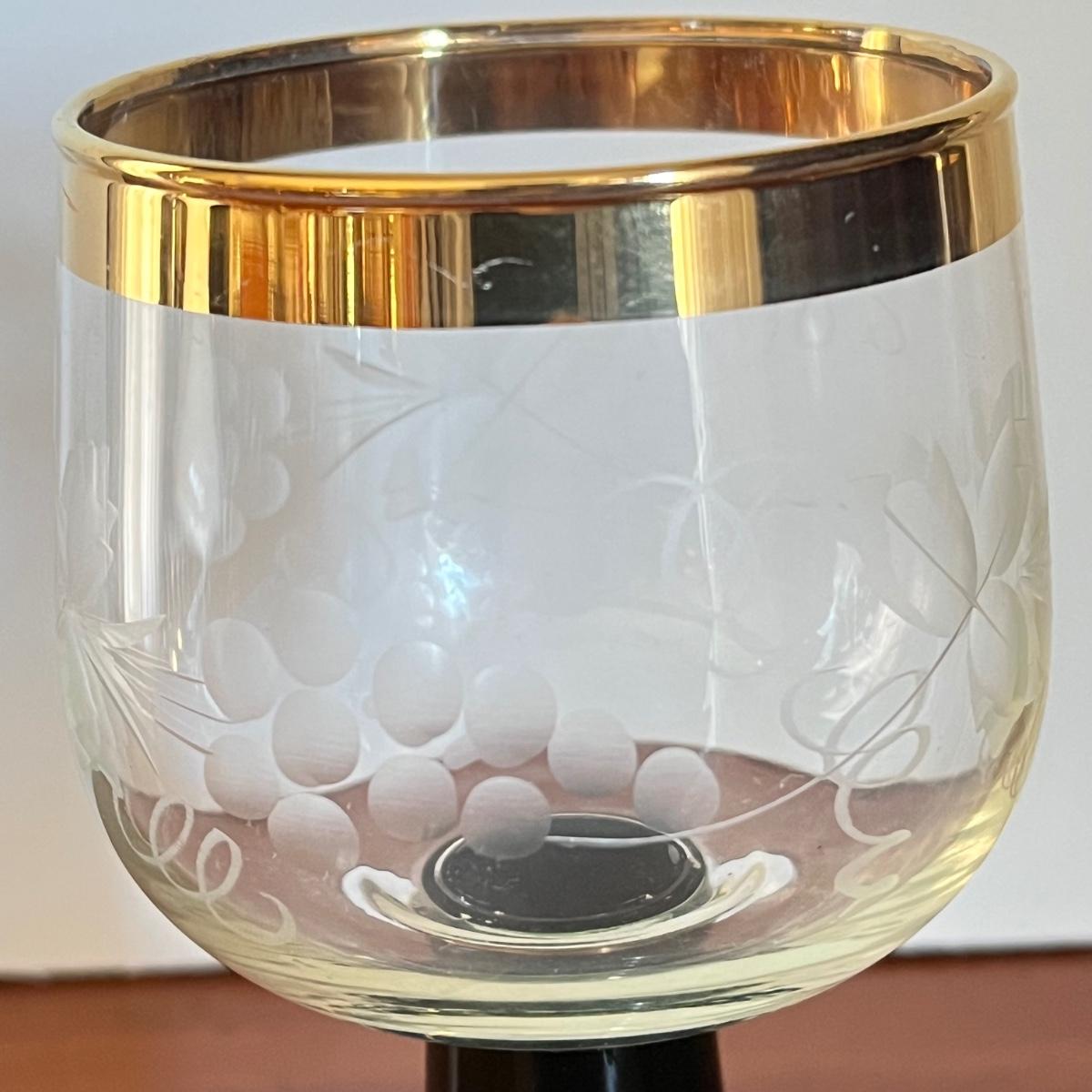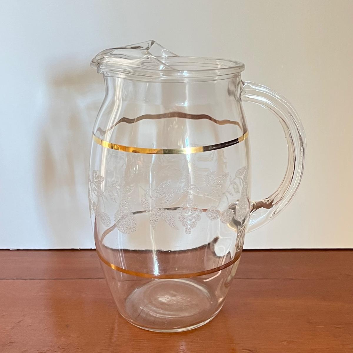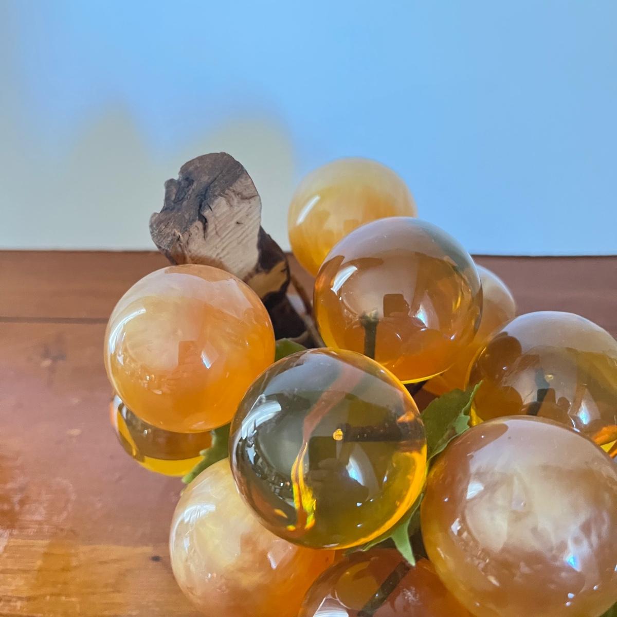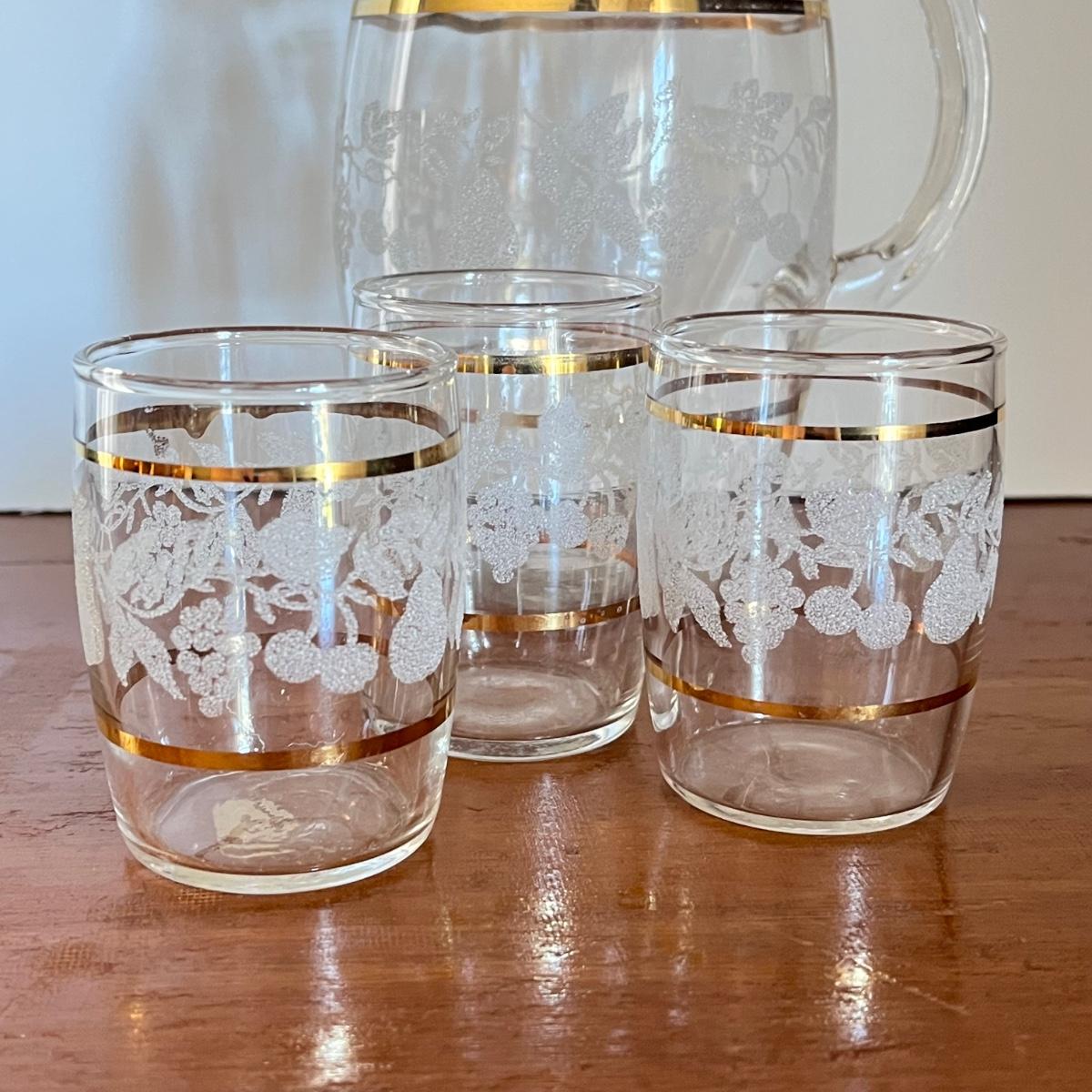 LOT 20L: Mid-Century Modern Home Decor - Acrylic Grape Cluster on Driftwood, Music Box Wine Glass, Pitcher & Glass Set MCM