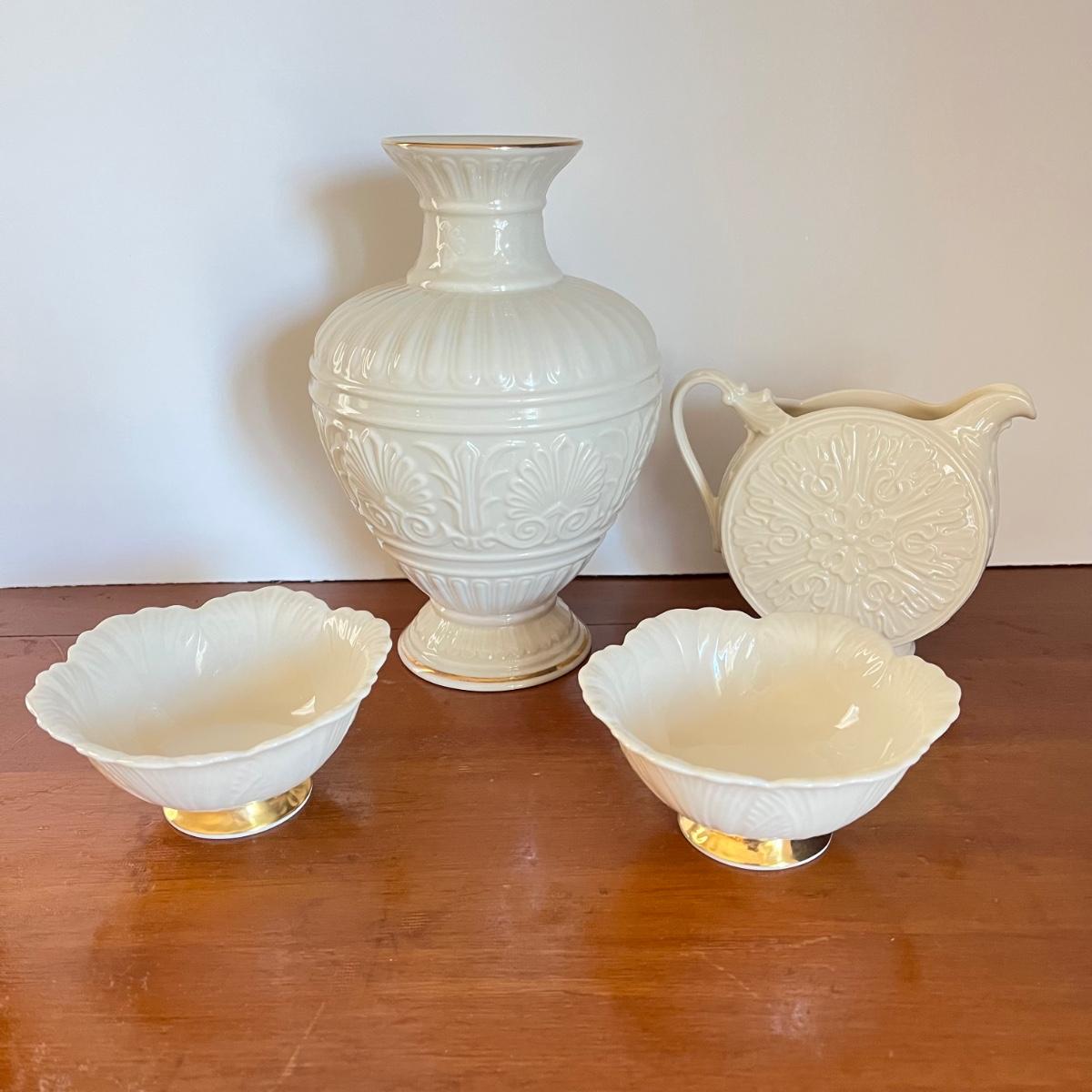 LOT 21L: Vintage Lenox Home Decor Pieces - Nut Bowls, Vase, Pitcher